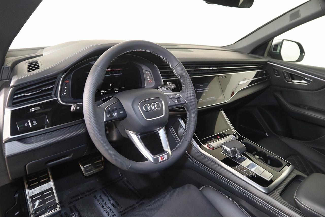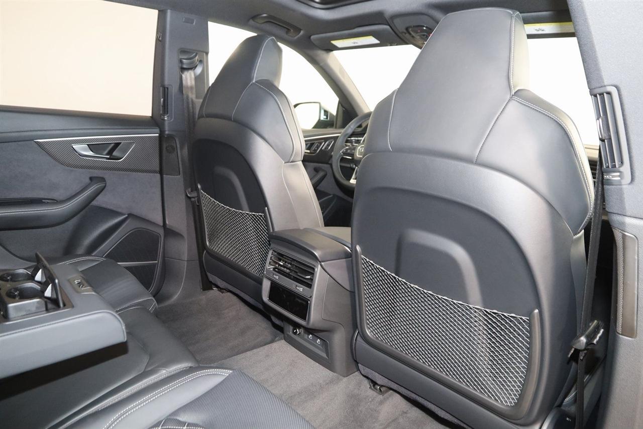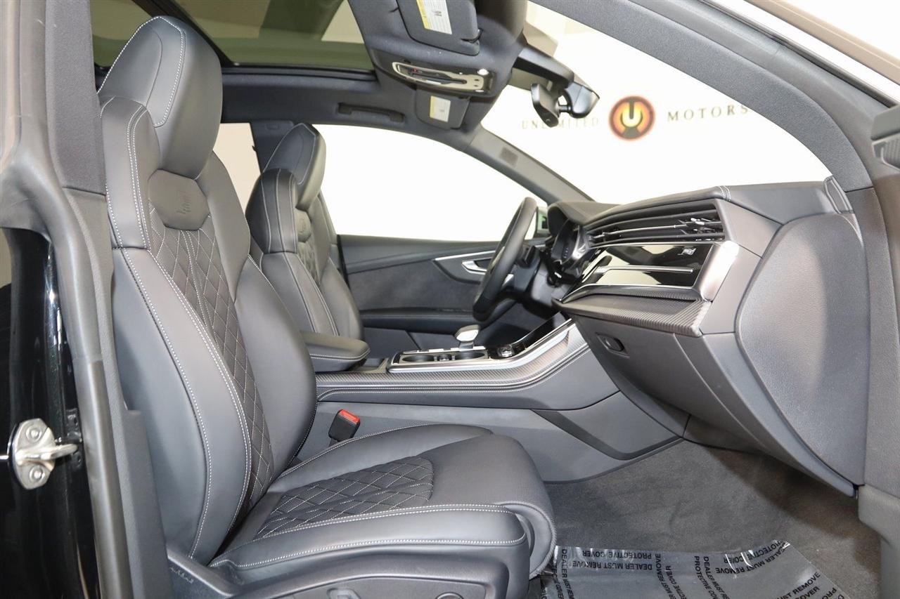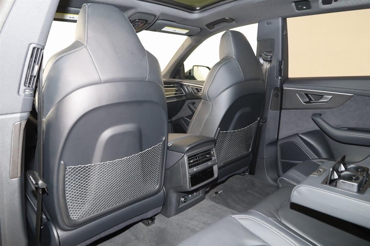 Navigation, Back Up Camera, Bluetooth, Panoramic Roof, Heated Seats, Winch, Touch Screen, Heated Steering Wheel, Blind Spot, Cooled Heats, Apple Play, Massage Seats, SQ8 4.0T Premium Plus quattro, 4D Sport Utility, 4.0L V8 Turbocharged DOHC 32V LEV3-ULEV125 500hp, 8-Speed Automatic, quattro, Mythos Black Metallic, Black Leather, Navigation System, Navigation system: Audi MMI Navigation plus with Touch Response.
