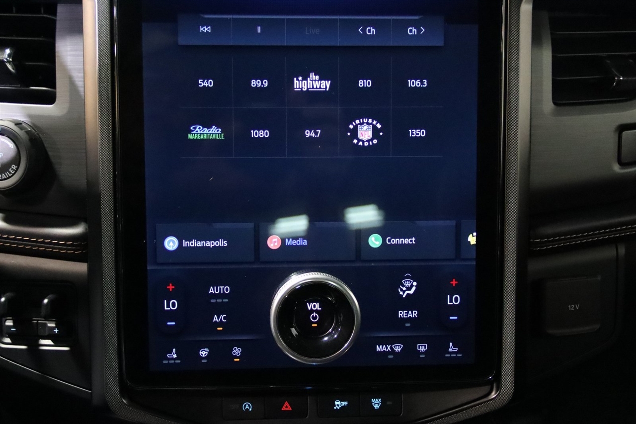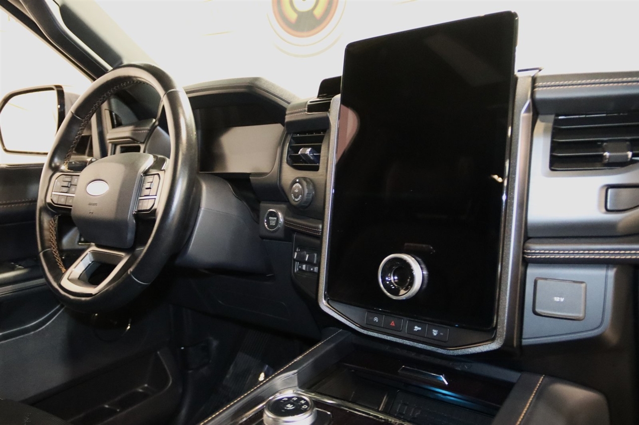 Navigation, Bluetooth, Back Up Camera, Panoramic Roof, 3rd Row, Heated Seats, Touch Screen, 22 Speakers, 26mm Engine Radiator, 3.73 Axle Ratio, 360-Degree Camera w/Trailer Reverse Guidance, 3rd row seats: split-bench, 4-Wheel Disc Brakes, ABS brakes, Active Park Assist 2.0 Removal, Adaptive suspension, Adjustable pedals, Air Conditioning, Alloy wheels, AM/FM radio: SiriusXM with 360L, Auto High-beam Headlights, Auto-dimming door mirrors, Auto-dimming Rear-View mirror, Automatic temperature control, Black Roof-Rail Crossbars, Brake assist, Bumpers: body-color, Compass, Continuous Controlled Damping (CCD), ControlTrac w/3.73 Axle Ratio, Delay-off headlights, Driver door bin, Driver vanity mirror, Dual front impact airbags, Dual front side impact airbags, Electronic Stability Control, Emergency communication system: SYNC 4 911 Assist, Equipment Group 600A Standard Package, Exterior Parking Camera Rear, Four wheel independent suspension, Front anti-roll bar, Front Bucket Seats, Front Center Armrest, Front dual zone A/C, Front fog lights, Front reading lights, Fully automatic headlights, Garage door transmitter, Genuine wood console insert, Genuine wood dashboard insert, Genuine wood door panel insert, Hands-Free Foot-Activated Liftgate Removal (DISC), Heated door mirrors, Heated front seats, Heated rear seats, Heated steering wheel, Heavy-Duty Trailer Tow Package, Htd/Ventilated Prem Lthr Front Captain's Chairs (DISC), Illuminated entry, Integrated Trailer Brake Controller, Leather steering wheel, Low tire pressure warning, Memory seat, Navigation System, Navigation system: Connected Navigation, Occupant sensing airbag, Outside temperature display, Overhead airbag, Overhead console, Panic alarm, Passenger door bin, Passenger vanity mirror, Pedal memory, Power door mirrors, Power driver seat, Power Liftgate, Power moonroof, Power passenger seat, Power steering, Power windows, Pro Trailer Backup Assist, Radio data system, Radio: B&O Unleashed Sound System by Bang & Olufsen, Rain sensing wipers, Rear air conditioning, Rear anti-roll bar, Rear audio controls, Rear reading lights, Rear window defroster, Rear window wiper, Reclining 3rd row seat, Remote keyless entry, Second Row Power Windows Removal, Security system, SiriusXM w/360L, Speed control, Speed-sensing steering, Speed-Sensitive Wipers, Split folding rear seat, Spoiler, Steering wheel memory, Steering wheel mounted audio controls, SYNC 4 w/Enhanced Voice Recognition, Tachometer, Telescoping steering wheel, Tilt steering wheel, Traction control, Trip computer, Turn signal indicator mirrors, Variably intermittent wipers, Ventilated front seats, Voltmeter, Wheels: 22" 6-Spoke Polished Aluminum. CARFAX One-Owner. Clean CARFAX.