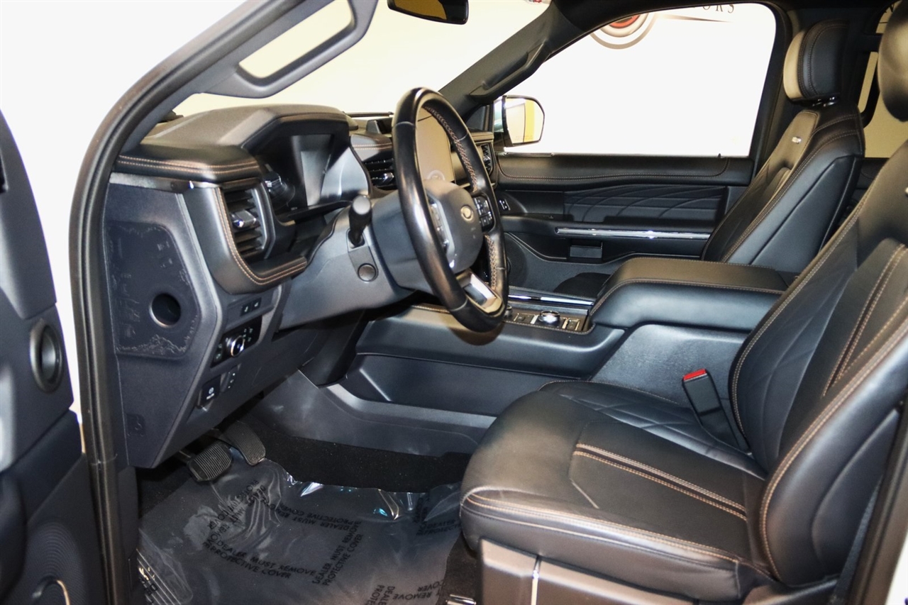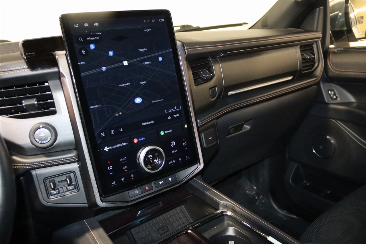 Navigation, Bluetooth, Back Up Camera, Panoramic Roof, 3rd Row, Heated Seats, Touch Screen, 22 Speakers, 26mm Engine Radiator, 3.73 Axle Ratio, 360-Degree Camera w/Trailer Reverse Guidance, 3rd row seats: split-bench, 4-Wheel Disc Brakes, ABS brakes, Active Park Assist 2.0 Removal, Adaptive suspension, Adjustable pedals, Air Conditioning, Alloy wheels, AM/FM radio: SiriusXM with 360L, Auto High-beam Headlights, Auto-dimming door mirrors, Auto-dimming Rear-View mirror, Automatic temperature control, Black Roof-Rail Crossbars, Brake assist, Bumpers: body-color, Compass, Continuous Controlled Damping (CCD), ControlTrac w/3.73 Axle Ratio, Delay-off headlights, Driver door bin, Driver vanity mirror, Dual front impact airbags, Dual front side impact airbags, Electronic Stability Control, Emergency communication system: SYNC 4 911 Assist, Equipment Group 600A Standard Package, Exterior Parking Camera Rear, Four wheel independent suspension, Front anti-roll bar, Front Bucket Seats, Front Center Armrest, Front dual zone A/C, Front fog lights, Front reading lights, Fully automatic headlights, Garage door transmitter, Genuine wood console insert, Genuine wood dashboard insert, Genuine wood door panel insert, Hands-Free Foot-Activated Liftgate Removal (DISC), Heated door mirrors, Heated front seats, Heated rear seats, Heated steering wheel, Heavy-Duty Trailer Tow Package, Htd/Ventilated Prem Lthr Front Captain's Chairs (DISC), Illuminated entry, Integrated Trailer Brake Controller, Leather steering wheel, Low tire pressure warning, Memory seat, Navigation System, Navigation system: Connected Navigation, Occupant sensing airbag, Outside temperature display, Overhead airbag, Overhead console, Panic alarm, Passenger door bin, Passenger vanity mirror, Pedal memory, Power door mirrors, Power driver seat, Power Liftgate, Power moonroof, Power passenger seat, Power steering, Power windows, Pro Trailer Backup Assist, Radio data system, Radio: B&O Unleashed Sound System by Bang & Olufsen, Rain sensing wipers, Rear air conditioning, Rear anti-roll bar, Rear audio controls, Rear reading lights, Rear window defroster, Rear window wiper, Reclining 3rd row seat, Remote keyless entry, Second Row Power Windows Removal, Security system, SiriusXM w/360L, Speed control, Speed-sensing steering, Speed-Sensitive Wipers, Split folding rear seat, Spoiler, Steering wheel memory, Steering wheel mounted audio controls, SYNC 4 w/Enhanced Voice Recognition, Tachometer, Telescoping steering wheel, Tilt steering wheel, Traction control, Trip computer, Turn signal indicator mirrors, Variably intermittent wipers, Ventilated front seats, Voltmeter, Wheels: 22" 6-Spoke Polished Aluminum. CARFAX One-Owner. Clean CARFAX.