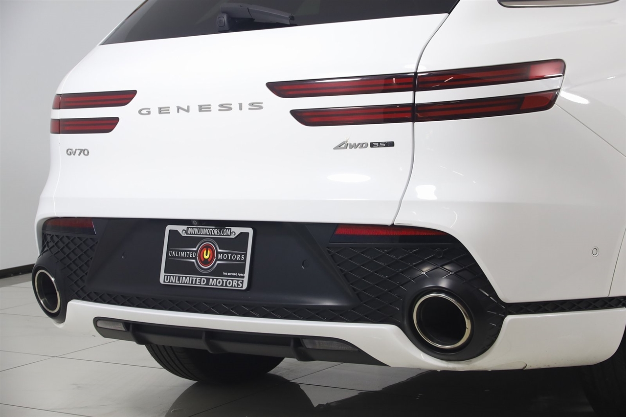 Navigation, Back Up Camera, Bluetooth, Panoramic Roof, Heated Seats, Touch Screen, Heated Steering Wheel, Rear Heated Seats, Blind Spot, Apple CarPlay/Android Auto, Massage Front Seats, GV70 3.5T Sport, 4D Sport Utility, 3.5L DOHC, 8-Speed Automatic, AWD, Alta White, Red Leather, Navigation System, Option Group 05, Sport Advanced Package.