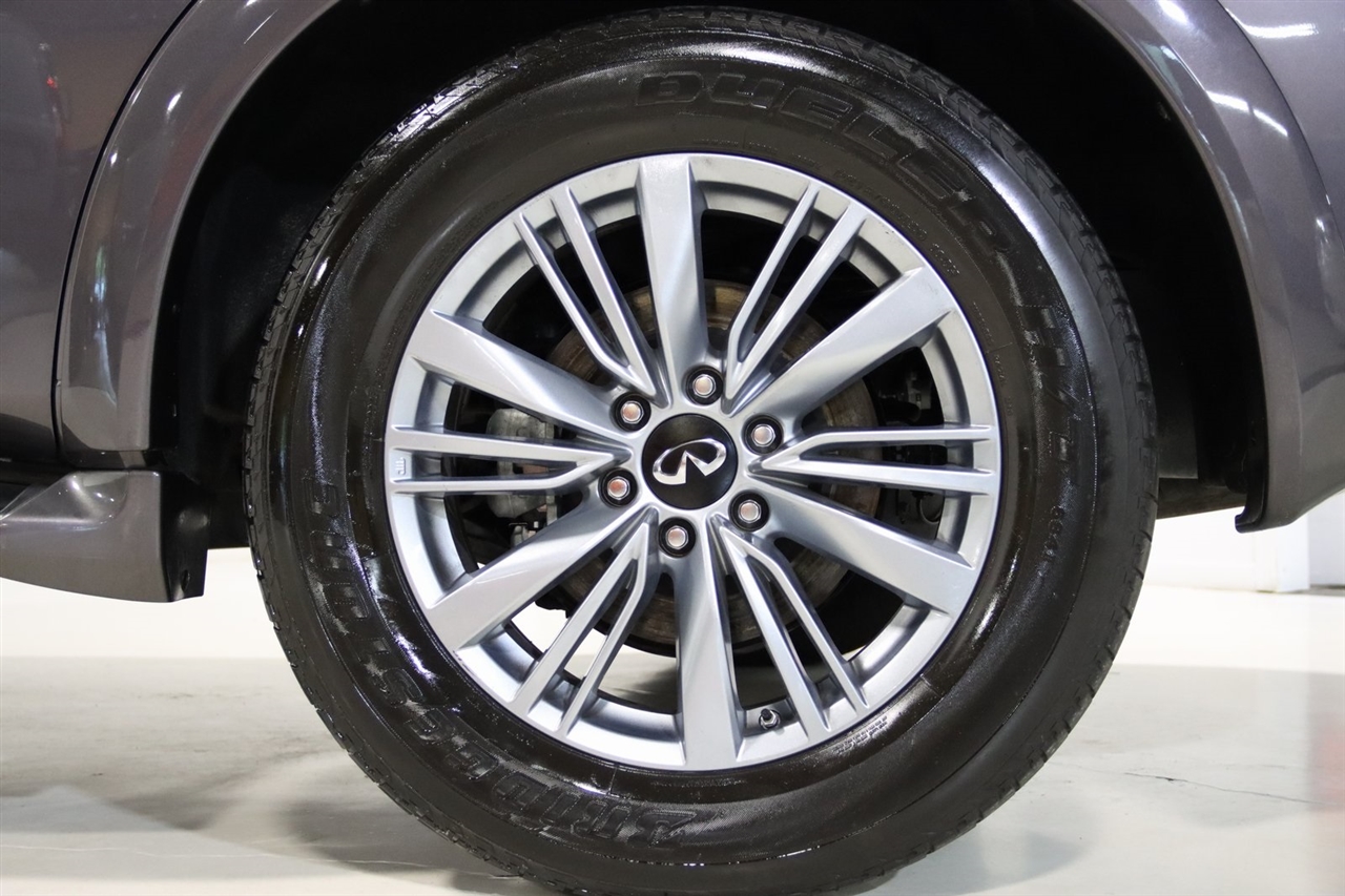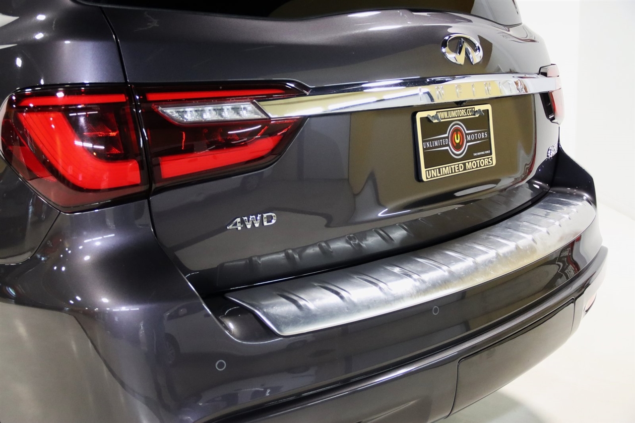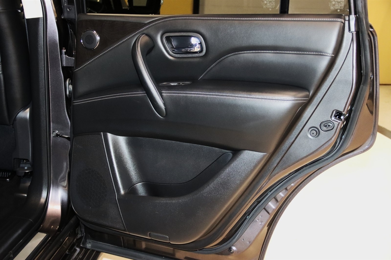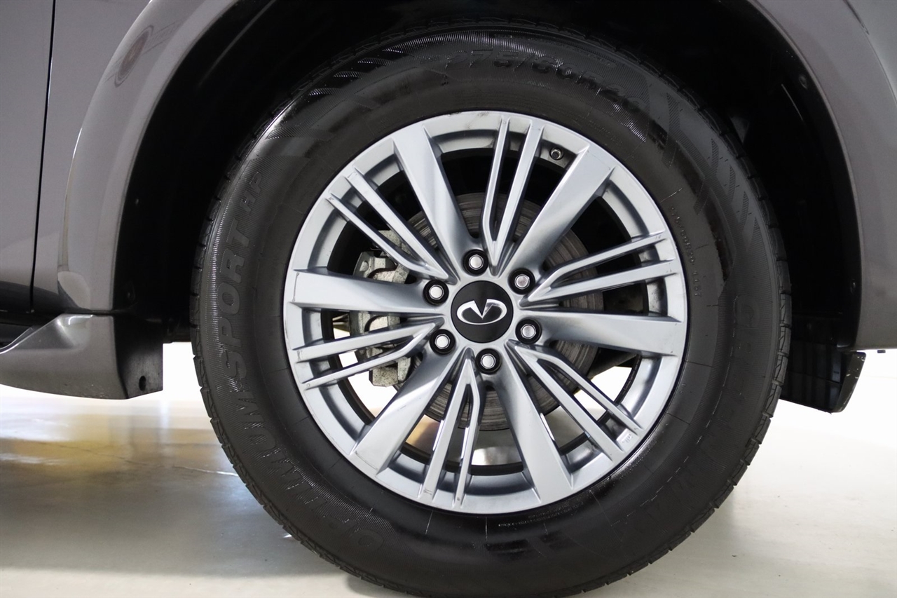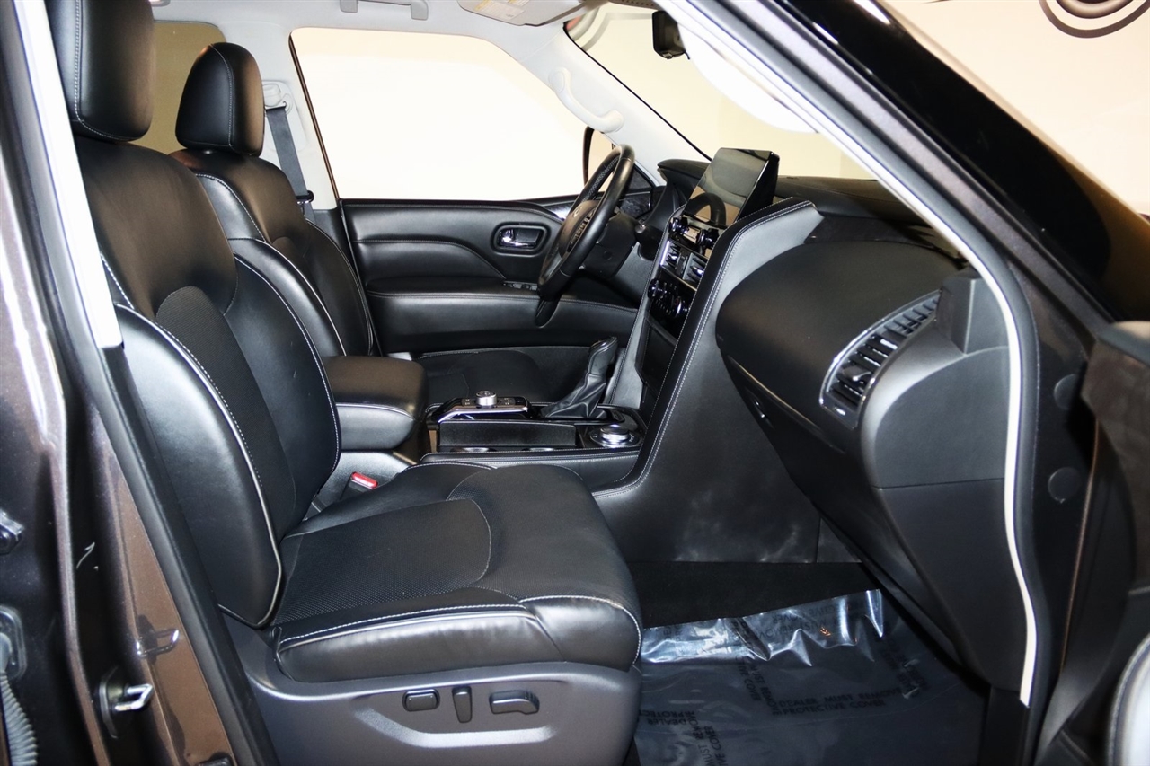 Navigation, Bluetooth, Back Up Camera, Sun/Moon Roof, 3rd Row, Heated Seats, Touch Screen, 13 Speakers, 2.937 Axle Ratio, 20" Aluminum Alloy Wheels, 3rd row seats: bench, 4-Wheel Disc Brakes, ABS brakes, Air Conditioning, Alloy wheels, AM/FM radio: SiriusXM, Anti-whiplash front head restraints, Apple CarPlay/Android Auto, Auto High-beam Headlights, Auto tilt-away steering wheel, Auto-dimming door mirrors, Auto-dimming Rear-View mirror, Auto-leveling suspension, Automatic temperature control, Brake assist, Bumpers: body-color, Compass, Delay-off headlights, Driver door bin, Driver vanity mirror, Dual front impact airbags, Dual front side impact airbags, Electronic Stability Control, Emergency communication system: INFINITI InTouch, Four wheel independent suspension, Front anti-roll bar, Front Bucket Seats, Front Center Armrest, Front dual zone A/C, Front fog lights, Front reading lights, Fully automatic headlights, Garage door transmitter: HomeLink, Heated door mirrors, Heated Front Bucket Seats, Heated front seats, Heated steering wheel, Illuminated entry, Leather Shift Knob, Leather steering wheel, Leather-Appointed Seats, Low tire pressure warning, Memory seat, Navigation System, Navigation system: INFINITI InTouch Navigation, Occupant sensing airbag, Outside temperature display, Overhead airbag, Overhead console, Panic alarm, Passenger door bin, Passenger vanity mirror, Power door mirrors, Power driver seat, Power Liftgate, Power moonroof, Power passenger seat, Power steering, Power windows, Radio data system, Radio: Bose Premium Audio System w/13 Speakers, Rain sensing wipers, Rear air conditioning, Rear anti-roll bar, Rear reading lights, Rear seat center armrest, Rear window defroster, Rear window wiper, Reclining 3rd row seat, Remote keyless entry, Security system, Speed control, Speed-sensing steering, Split folding rear seat, Spoiler, Steering wheel memory, Steering wheel mounted audio controls, Tachometer, Telescoping steering wheel, Tilt steering wheel, Traction control, Trip computer, Turn signal indicator mirrors, Variably intermittent wipers, Voltmeter. CARFAX One-Owner. Odometer is 9338 miles below market average! Priced below KBB Fair Purchase Price!