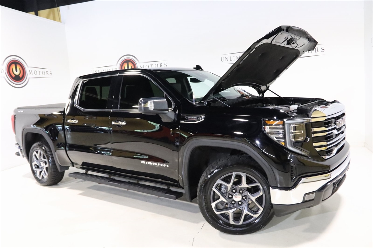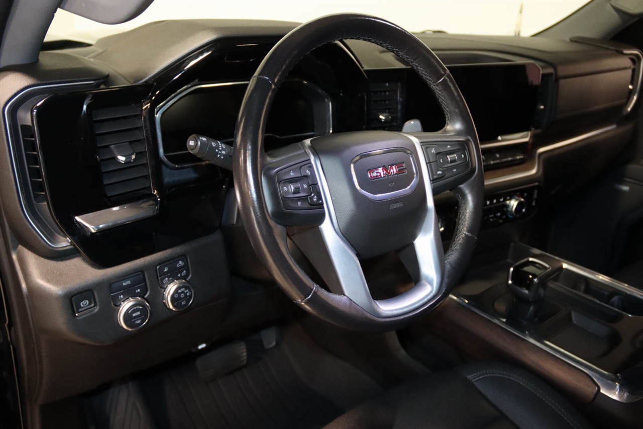 Navigation, Bluetooth, Back Up Camera, Sun/Moon Roof, Towing, Heated Seats, Touch Screen, 10-Way Power Driver Seat Adjuster w/Lumbar, 10-Way Power Passenger Seat Adjuster w/Lumbar, 120-Volt Bed Mounted Power Outlet, 120-Volt Instrument Panel Power Outlet, 170 Amp Alternator, 2 Charge/Data USB Ports, 2 Charge/Data USB Ports Inside Center Console, 2 Type-C Charge-Only Rear USB Ports, 220 Amp Alternator, 3.23 Rear Axle Ratio, 4-Wheel Disc Brakes, 6 Speakers, 6-Speaker Audio System Feature, ABS brakes, Adaptive Cruise Control, Air Conditioning, AM/FM radio, Apple CarPlay/Android Auto, Auto High-beam Headlights, Auto-dimming door mirrors, Auto-dimming Rear-View mirror, Auto-Locking Rear Differential, Automatic Emergency Braking, Automatic temperature control, Auxiliary External Transmission Oil Cooler, Brake assist, Buckle to Drive, Bumpers: chrome, Chrome Header & Chrome Grille Insert Bars, Chrome Wheel To Wheel Assist Steps, Color-Keyed Carpeting Floor Covering, Compass, Deep-Tinted Glass, Delay-off headlights, Driver door bin, Driver Memory, Driver vanity mirror, Dual front impact airbags, Dual front side impact airbags, Electric Rear-Window Defogger, Electrical Steering Column Lock, Electronic Precision Shift, Electronic Stability Control, Emergency communication system: OnStar and GMC connected services capable, Engine Block Heater, Floor-Mounted Center Console, Following Distance Indicator, Forward Collision Alert, Front 40/20/40 Split-Bench Seat, Front anti-roll bar, Front Bucket Seats, Front Center Armrest w/Storage, Front dual zone A/C, Front fog lights, Front Frame-Mounted Black Recovery Hooks, Front Pedestrian Braking, Front Rainsensing Wipers, Front reading lights, Front wheel independent suspension, Fully automatic headlights, GMC Connected Access Capable, HD Rear Vision Camera, Heated 2nd Row Outboard Seats, Heated door mirrors, Heated Driver & Front Outboard Passenger Seating, Heated front seats, Heated steering wheel, High Capacity Suspension Package, Hitch Guidance, Illuminated entry, IntelliBeam Automatic High Beam On/Off, Keyless Open & Start, Lane Keep Assist w/Lane Departure Warning, LED Cargo Area Lighting, Low tire pressure warning, Manual Tilt-Wheel & Telescoping Steering Column, Memory seat, Navigation System, Not Equipped w/Steering Column Lock, Occupant sensing airbag, OnStar & GMC Connected Services Capable, Outside temperature display, Overhead airbag, Overhead console, Panic alarm, Passenger door bin, Passenger vanity mirror, Perf Leather-Appointed Front Outboard Seat Trim, Perimeter Lighting, Power Door Locks, Power door mirrors, Power driver seat, Power Front Passenger Windows w/Express Up/Down, Power Front Windows w/Driver Express Up/Down, Power passenger seat, Power Rake & Telescoping Steering Column, Power Rear Windows w/Express Down, Power Sliding Rear Window w/Rear Defogger, Power steering, Power Sunroof, Power windows, Preferred Equipment Group 4SA, Premium audio system: GMC Infotainment System, Premium Bose 7-Speaker Sound System, Push Button Start, Radio data system, Radio: Premium GMC Infotainment Audio System, Rain sensing wipers, Rear reading lights, Rear seat center armrest, Rear step bumper, Rear Wheelhouse Liners, Rear window defroster, Remote keyless entry, Remote Vehicle Starter System, Security system, SiriusXM w/360L, SLT Convenience Package, SLT Preferred Package, Speed control, Speed-sensing steering, Split folding rear seat, Spray-On Pickup Bed Liner w/GMC Logo, Standard Suspension Package, Steering Wheel Audio Controls, Steering wheel mounted audio controls, Tachometer, Telescoping steering wheel, Theft Deterrent System (Unauthorized Entry), Tilt steering wheel, Traction control, Trailering Package, Trip computer, Universal Home Remote, Variably intermittent wipers, Ventilated Driver & Front Passenger Seats, Voltmeter, Wi-Fi Hotspot Capable, Wireless Charging, Wireless Phone Projection. Clean CARFAX. 22/27 City/Highway MPG Odometer is 7449 miles below market average!