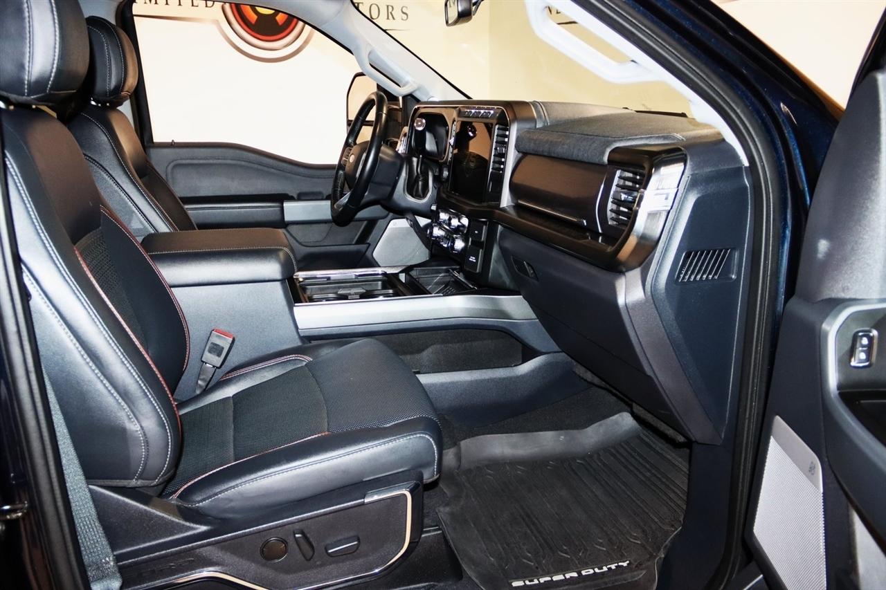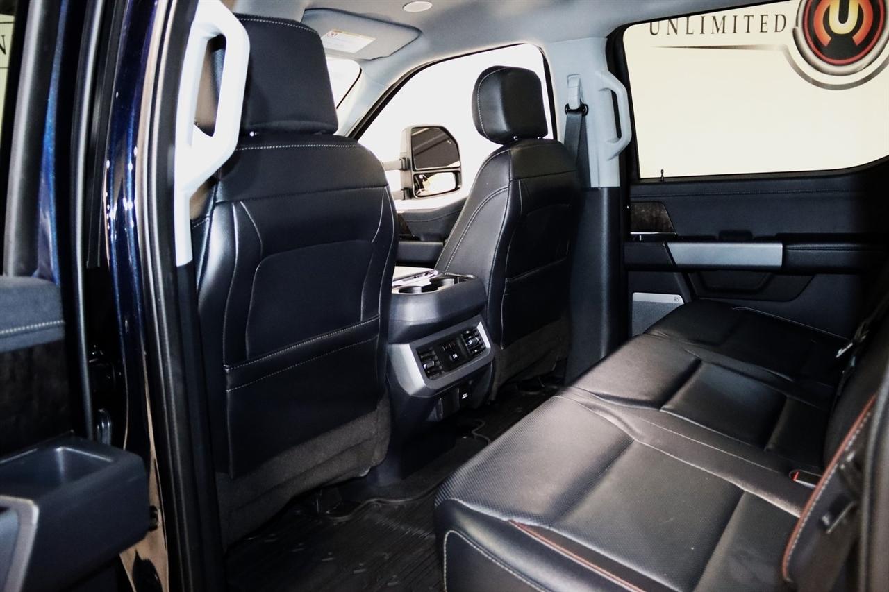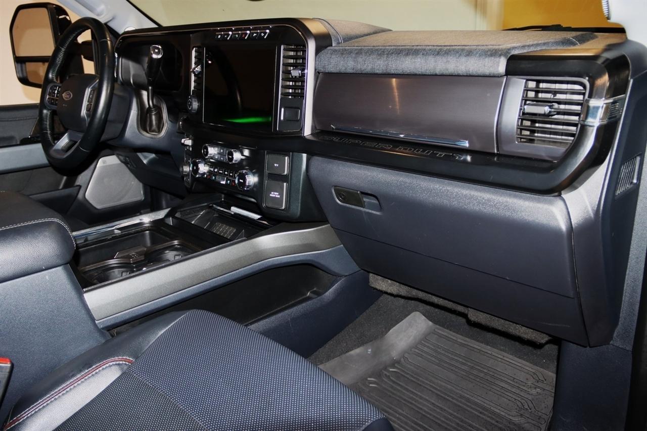 Navigation, Bluetooth, Back Up Camera, Heated Seats, 4-Way Adjustable Headrests, 4-Wheel Disc Brakes, 8 Speakers, ABS brakes, Adjustable pedals, Air Conditioning, Alloy wheels, AM/FM radio: SiriusXM with 360L, Auto High-beam Headlights, Auto tilt-away steering wheel, Auto-dimming Rear-View mirror, Automatic temperature control, Brake assist, Bumpers: chrome, Compass, Delay-off headlights, Driver door bin, Driver vanity mirror, Dual front impact airbags, Dual front side impact airbags, Electronic Stability Control, Electronic-Locking w/3.31 Axle Ratio, Emergency communication system: SYNC 4 911 Assist, Exterior Parking Camera Rear, F-250 >10K GVWR Package, Flow-Through Console, Front anti-roll bar, Front Bucket Seats, Front Center Armrest, Front dual zone A/C, Front fog lights, Front Leather-Trimmed 40/Console/40 Seats, Front reading lights, Front Sensing System, Fully automatic headlights, FX4 Off-Road Package, Garage door transmitter, Head-Up Display, Heated door mirrors, Heated front seats, Heated rear seats, Heated steering wheel, Hill Descent Control, Illuminated entry, Intelligent Adaptive Cruise Control w/Stop-and-Go, Lane Keeping Assist, Lariat Ultimate Package, Leather steering wheel, Low tire pressure warning, Memory seat, Navigation System, Navigation system: Connected Navigation, Off-Road Specifically Tuned Shock Absorbers, Order Code 608A, Outside temperature display, Overhead airbag, Overhead console, Panic alarm, Passenger door bin, Passenger vanity mirror, Pedal memory, Power door mirrors, Power driver seat, Power passenger seat, Power steering, Power windows, Power-Deployable Running Boards, Pro Trailer Backup Assist, Pro Trailer Hitch Assist, Radio: B&O Sound System by Bang & Olufsen, Radio: B&O Unleashed Sound System by Bang & Olufsen, Rain sensing wipers, Rear reading lights, Rear seat center armrest, Rear step bumper, Rear window defroster, Remote keyless entry, Security system, SiriusXM Radio w/360L, Speed control, Split folding rear seat, Steering wheel memory, Steering wheel mounted audio controls, SYNC 4 w/Enhanced Voice Recognition, Tachometer, Tailgate Step & Handle, Telescoping steering wheel, Tilt steering wheel, Tow Technology Package, Traction control, Trip computer, Turn signal indicator mirrors, Unique FX4 Off-Road Box Decal, Upfitter Switches (6), Variably intermittent wipers, Ventilated front seats, Wheels: 18" Bright Machined & Carbonized Gray Alum, Wireless Charging Pad. CARFAX One-Owner. Clean CARFAX. Odometer is 14893 miles below market average! Priced below KBB Fair Purchase Price!