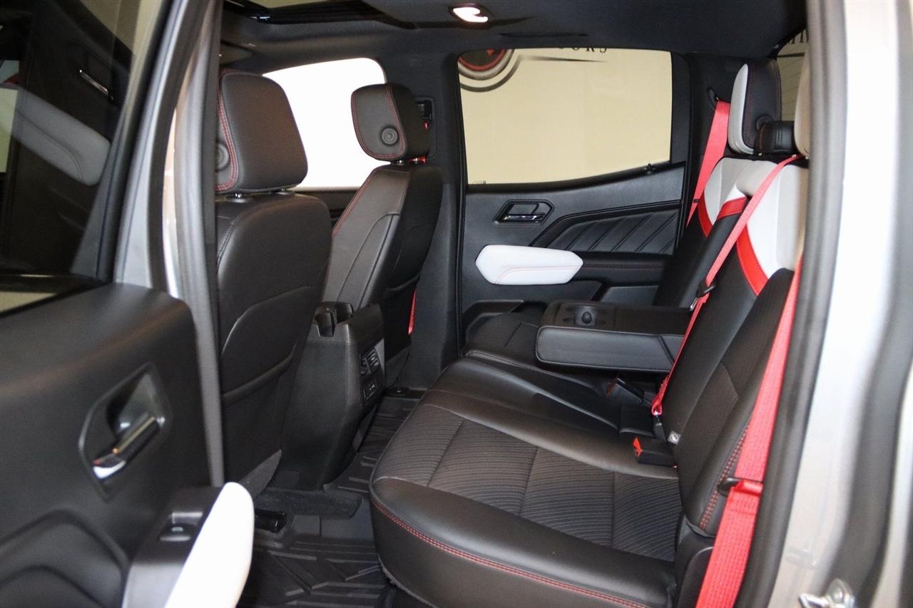 Navigation, Bluetooth, Back Up Camera, Sun/Moon Roof, Heated Seats, Touch Screen, 120-Volt Bed Mounted Power Outlet, 2 1st Row USB Charge/Data Ports, 2 Rear USB Ports in Center Console (Charge-Only), 220 Amps Alternator, 3.42 Rear Axle Ratio, 4-Wheel Disc Brakes, 6-Way Power Passenger Seat Adjuster, 7 Speakers, 8-Way Power Driver Seat Adjuster, ABS brakes, Adaptive Cruise Control, Air Conditioning, Alloy wheels, AM/FM radio: SiriusXM, Apple CarPlay/Android Auto, Auto High-beam Headlights, Auto-dimming Rear-View mirror, Automatic Emergency Braking, Automatic Stop/Start, Automatic temperature control, Blind Zone Steering Assist, Brake assist, Bumpers: body-color, Canyon Pro Safety, Compass, Delay-off headlights, Driver & Front Passenger Illuminated Visors, Driver & Front Passenger Ventilated Seats, Driver door bin, Driver Memory, Driver Mode Selector, Driver Seatback Map Pocket, Driver vanity mirror, Driver-Selectable Full-Locking Front Differential, Driver-Selectable Full-Locking Rear Differential, Dual front impact airbags, Dual front side impact airbags, Dual-Zone Automatic Air Conditioning, Electronic Stability Control, Engine Block Heater, EZ-Lift & Lower Tailgate, Following Distance Indicator, Forward Collision Alert, Front anti-roll bar, Front Bucket Seats, Front Center Armrest, Front dual zone A/C, Front fog lights, Front LED Fog Lamps, Front License Plate Kit, Front Passenger Seatback Map Pocket, Front Pedestrian & Bicyclist Braking, Front reading lights, Front wheel independent suspension, HD Surround Vision, Heads-Up Display, Heated door mirrors, Heated Driver & Front Passenger Seats, Heated front seats, Heated Power-Adjustable Outside Mirrors, Heated Steering Wheel, Heated steering wheel, Illuminated entry, Inside Rear-View Auto-Dimming Mirror, Integrated Trailer Brake Controller, IntelliBeam Automatic High Beam On/Off, Interior Overhead Courtesy Light w/Dual Reading Lamp, Lane Keep Assist w/Lane Departure Warning, Low tire pressure warning, Manual Rear-Sliding Window, Memory seat, Multicolor 6.3" Diagonal Head-Up Display, MultiStow Tailgate, Navigation System, Occupant sensing airbag, Outside temperature display, Overhead airbag, Overhead console, Panic alarm, Passenger door bin, Passenger vanity mirror, Perforated Leather-Appointed Seat Trim, Power door mirrors, Power Driver Lumbar Control Seat Adjuster, Power driver seat, Power Inner Sliding Glass Sunroof w/Manual Shade, Power Passenger Lumbar Control Seat Adjuster, Power passenger seat, Power steering, Power windows, Preferred Equipment Group 4TX, Premium 7-Speaker Bose Sound System, Radio data system, Radio: 11.3" Diagonal Premium GMC Infotainment Sys, Rear Center Fold-Down Armrest w/2 Cupholders, Rear Cross Traffic Braking, Rear of Console 120-Volt Power Outlet, Rear Pedestrian Alert, Rear reading lights, Rear seat center armrest, Rear step bumper, Rear window defroster, Rear-Window Electric Defogger, Red Seat Belt Color, Remote keyless entry, Remote Vehicle Starter System, Safety Alert Seat, Security system, SiriusXM w/360L, Speed control, Speed-sensing steering, Split folding rear seat, Spray-On Bedliner, Steering wheel mounted audio controls, Stop/Start System Disable Button Engine Control, Tachometer, Tailgate Keyed Cylinder Lock, Telescoping steering wheel, Tilt & Telescopic Manual Steering Column, Tilt steering wheel, Traction control, Trailering App System, Trailering Package, Trip computer, Ultrasonic Rear Park Assist, Variably intermittent wipers, Ventilated front seats, Wheels: 17" x 8" Black High Gloss Machined Finish, Wireless Apple CarPlay/Wireless Android Auto, Wireless Charging. Clean CARFAX. Priced below KBB Fair Purchase Price!