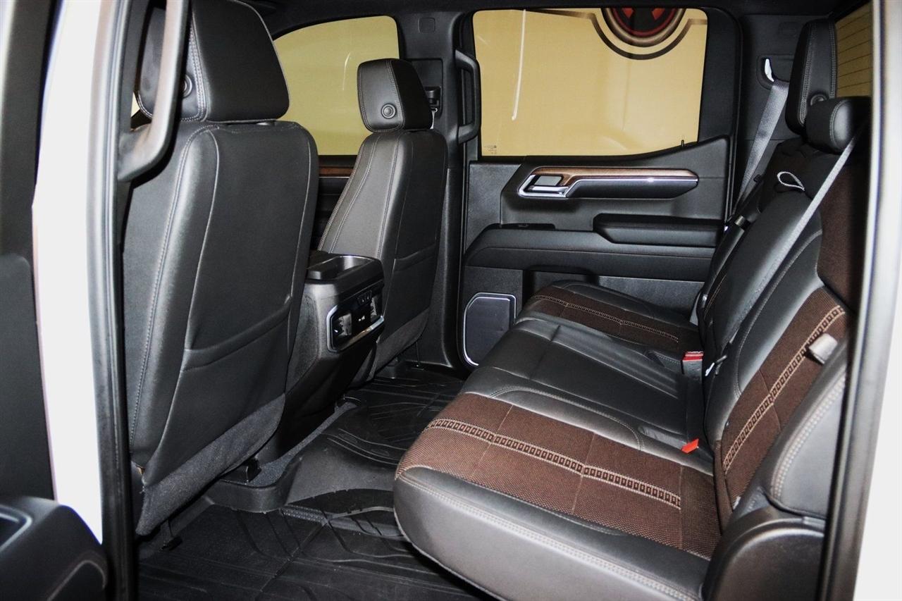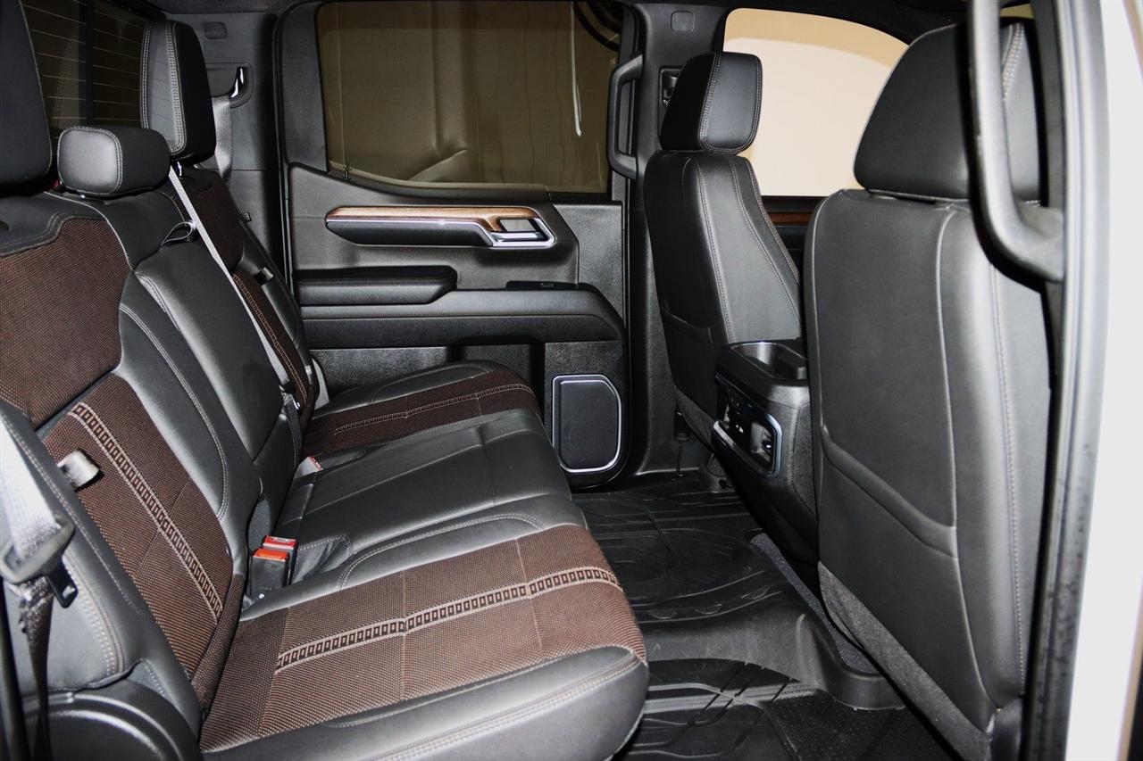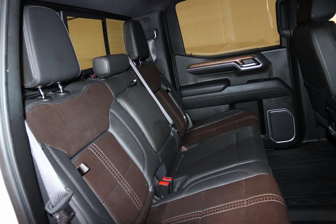 Bluetooth, Back Up Camera, Towing, Touch Screen, 10-Way Power Driver Seat w/Lumbar, 10-Way Power Passenger Seat Adjuster w/Lumbar, 12.3" Multicolor Reconfigurable Digital Display, 120-Volt Bed Mounted Power Outlet, 120-Volt Instrument Panel Power Outlet, 170 Amp Alternator, 2 USB Data Ports, 2nd Row Heated Outboard Seats, 3.23 Rear Axle Ratio, 4-Wheel Disc Brakes, 7 Speakers, ABS brakes, Air Conditioning, Alloy wheels, AM/FM radio: SiriusXM with 360L, Apple CarPlay/Android Auto, Auto High-beam Headlights, Auto-dimming door mirrors, Auto-Dimming Inside Rear-View Mirror, Auto-dimming Rear-View mirror, Auto-Locking Rear Differential, Automatic Emergency Braking, Automatic temperature control, Bed View Camera, Bluetooth® For Phone, Body-Color Painted Mirror Caps, Bodyside moldings, Brake assist, Bumpers: body-color, Chevrolet Connected Access Capable, Chevytec Spray-On Black Bedliner, Chrome Assist Steps, Chrome Recovery Hooks, Color-Keyed Carpeting Floor Covering, Compass, Deep-Tinted Glass, Delay-off headlights, Driver door bin, Driver Memory, Driver vanity mirror, Dual Exhaust w/Polished Outlets, Dual front impact airbags, Dual front side impact airbags, Dual Rear USB Ports (Charge Only), Electric Rear-Window Defogger, Electrical Steering Column Lock, Electronic Cruise Control, Electronic Stability Control, Electronic Transmission Range Selector Shifter, Floor Mounted Center Console, Following Distance Indicator, Forward Collision Alert, Front anti-roll bar, Front Bucket Seats, Front Carpeted Floor Mats, Front Center Armrest, Front dual zone A/C, Front fog lights, Front LED Fog Lamps, Front Pedestrian Braking, Front Rainsensing Wipers, Front reading lights, Front wheel independent suspension, Fully automatic headlights, Garage door transmitter, Genuine wood console insert, Genuine wood dashboard insert, Genuine wood door panel insert, HD Surround Vision, Heated door mirrors, Heated Driver & Front Outboard Passenger Seats, Heated front seats, Heated rear seats, Heated Steering Wheel, Heated steering wheel, High Capacity Suspension Package, Hitch Guidance, Hitch Guidance w/Hitch View, Illuminated entry, Integrated Trailer Brake Controller, IntelliBeam Automatic High Beam On/Off, Keyless Open & Start, Lane Keep Assist w/Lane Departure Warning, LED Cargo Area Lighting, Low tire pressure warning, Memory seat, Occupant sensing airbag, OnStar & Chevrolet Connected Services Capable, Outside Heated Power-Adjustable Mirrors, Outside temperature display, Overhead airbag, Overhead console, Panic alarm, Passenger door bin, Passenger vanity mirror, Perforated Leather Seat Trim, Perimeter Lighting, Power door mirrors, Power driver seat, Power Front Passenger Windows w/Express Up/Down, Power Front Windows w/Driver Express Up/Down, Power passenger seat, Power Rear Windows w/Express Down, Power Sliding Rear Window w/Rear Defogger, Power steering, Power Tailgate, Power Tilt & Telescoping Steering Column, Power windows, Premium audio system: Chevrolet Infotainment 3 Premium, Premium Bose 7-Speaker Sound System, Radio data system, Radio: Chevrolet Infotainment 3 Premium System, Rain sensing wipers, Rear Carpeted Floor Mats, Rear Cross Traffic Alert-Braking, Rear Pedestrian Alert, Rear reading lights, Rear seat center armrest, Rear step bumper, Rear Wheelhouse Liners, Rear window defroster, Remote keyless entry, Remote Vehicle Starter System, Safety Alert Seat, Security system, SiriusXM w/360L, Speed control, Speed-sensing steering, Split folding rear seat, Standard Tailgate, Steering Wheel Audio Controls, Steering wheel mounted audio controls, Tachometer, Telescoping steering wheel, Theft Deterrent System (Unauthorized Entry), Tilt steering wheel, Traction control, Trailer Camera Provisions, Trailer Side Blind Zone Alert, Trailering App, Trailering Package, Trip computer, Ultrasonic Front & Rear Park Assist, Universal Home Remote, Up-Level Rear Seat w/Storage Package, Variably intermittent wipers, Ventilated Driver & Front Passenger Seats, Ventila