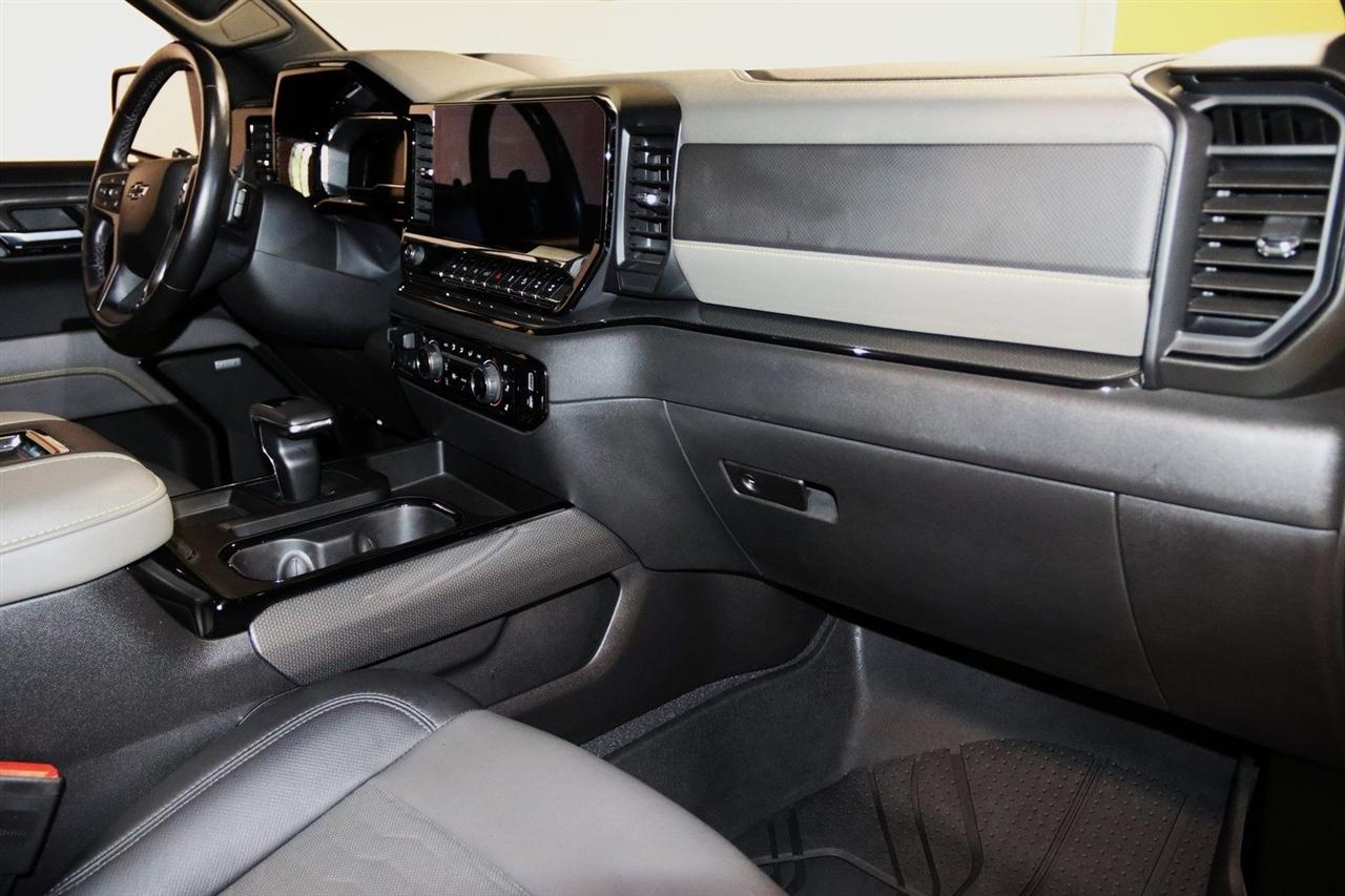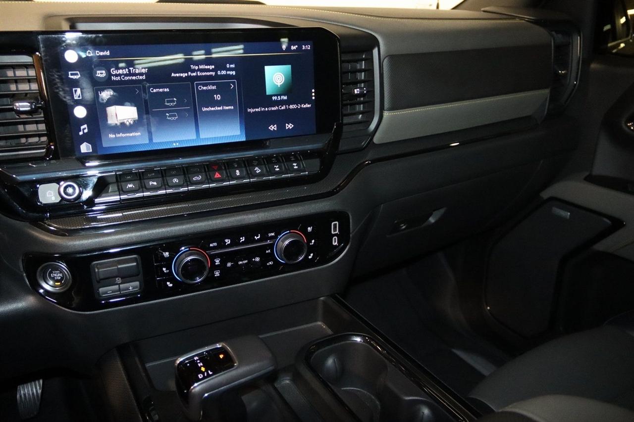 Bluetooth, Back Up Camera, Towing, Touch Screen, 10-Way Power Driver Seat w/Lumbar, 10-Way Power Passenger Seat Adjuster w/Lumbar, 12.3" Multicolor Reconfigurable Digital Display, 120-Volt Bed Mounted Power Outlet, 120-Volt Instrument Panel Power Outlet, 15" Diagonal Multicolor Head-Up Display, 170 Amp Alternator, 2 USB Data Ports, 2nd Row Heated Outboard Seats, 3.23 Rear Axle Ratio, 4-Wheel Disc Brakes, 7 Speakers, ABS brakes, Adaptive Cruise Control, Air Conditioning, All-Weather Floor Liner (LPO), Alloy wheels, AM/FM radio: SiriusXM with 360L, Apple CarPlay/Android Auto, Auto High-beam Headlights, Auto-dimming door mirrors, Auto-Dimming Inside Rear-View Mirror, Auto-dimming Rear-View mirror, Auto-Locking Rear Differential, Automatic Emergency Braking, Automatic temperature control, Bed View Camera, Bluetooth® For Phone, Brake assist, Chevrolet Connected Access Capable, Chevytec Spray-On Black Bedliner, Color-Keyed Carpeting Floor Covering, Compass, Deep-Tinted Glass, Delay-off headlights, Driver door bin, Driver Memory, Driver vanity mirror, Dual Exhaust, Dual front impact airbags, Dual front side impact airbags, Dual Rear USB Ports (Charge Only), Electric Rear-Window Defogger, Electrical Steering Column Lock, Electronic Cruise Control, Electronic Stability Control, Electronic Transmission Range Selector Shifter, EZ Lift Power Lock & Release Tailgate, Floor Mounted Center Console, Following Distance Indicator, Forward Collision Alert, Front anti-roll bar, Front Bucket Seats, Front Center Armrest, Front dual zone A/C, Front fog lights, Front LED Fog Lamps, Front Pedestrian Braking, Front Rainsensing Wipers, Front reading lights, Front wheel independent suspension, Fully automatic headlights, Garage door transmitter, HD Surround Vision, Heated door mirrors, Heated Driver & Front Outboard Passenger Seats, Heated front seats, Heated rear seats, Heated Steering Wheel, Heated steering wheel, Heavy-Duty Air Filter, High Gloss Black Mirror Caps, Hill Descent Control, Hitch Guidance, Hitch Guidance w/Hitch View, Illuminated entry, Integrated Trailer Brake Controller, IntelliBeam Automatic High Beam On/Off, Keyless Open & Start, Lane Keep Assist w/Lane Departure Warning, Leather Wrapped Steering Wheel, LED Cargo Area Lighting, Low tire pressure warning, Manual Tilt/Telescoping Steering Column, Memory seat, Not Equipped w/Steering Column Lock, Occupant sensing airbag, OnStar & Chevrolet Connected Services Capable, Outside Heated Power-Adjustable Mirrors, Outside temperature display, Overhead airbag, Overhead console, Panic alarm, Passenger door bin, Passenger vanity mirror, Perforated Leather Seat Trim, Performance Red Recovery Hooks, Perimeter Lighting, Power door mirrors, Power driver seat, Power Front Passenger Windows w/Express Up/Down, Power Front Windows w/Driver Express Up/Down, Power passenger seat, Power Rear Windows w/Express Down, Power Sliding Rear Window w/Rear Defogger, Power steering, Power Tilt & Telescoping Steering Column, Power windows, Preferred Equipment Group 3LT, Premium audio system: Chevrolet Infotainment 3 Premium, Premium Bose 7-Speaker Sound System, Radio data system, Radio: Chevrolet Infotainment 3 Premium System, Rain sensing wipers, Rear Camera Mirror, Rear Cross Traffic Alert-Braking, Rear Park Assist, Rear Pedestrian Detection, Rear reading lights, Rear seat center armrest, Rear step bumper, Rear Wheelhouse Liners, Rear window defroster, Remote keyless entry, Remote Vehicle Starter System, Safety Alert Seat, Security system, SiriusXM w/360L, Speed control, Speed-sensing steering, Split folding rear seat, Standard Tailgate, Steering Wheel Audio Controls, Steering wheel mounted audio controls, Tachometer, Technology Package, Telescoping steering wheel, Theft Deterrent System (Unauthorized Entry), Tilt steering wheel, Traction control, Trailer Camera Provisions, Trailer Side Blind Zone Alert, Trailering App, Trailering Package, Trip computer, Universal Home Remote, Up-Level Rear Seat w/Storage Package, V
