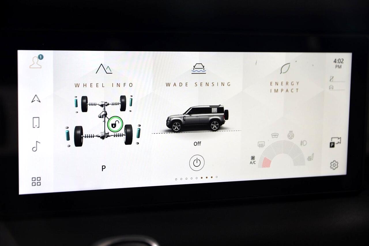Navigation, Back Up Camera, Bluetooth, Panoramic Roof, Heated Seats, Touch Screen, Cooled Heats, Blind Spot, Heated Steering Wheel, Apple Play, Defender 110 SE, 4D Sport Utility, 3.0L I6, 8-Speed Automatic, 4WD, Eiger Gray Metallic, Black Leather, Navigation System, Navigation system: Connected Navigation PIVI Pro. CARFAX One-Owner. Clean CARFAX.