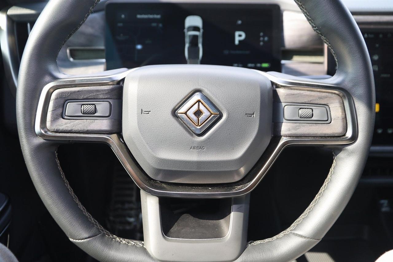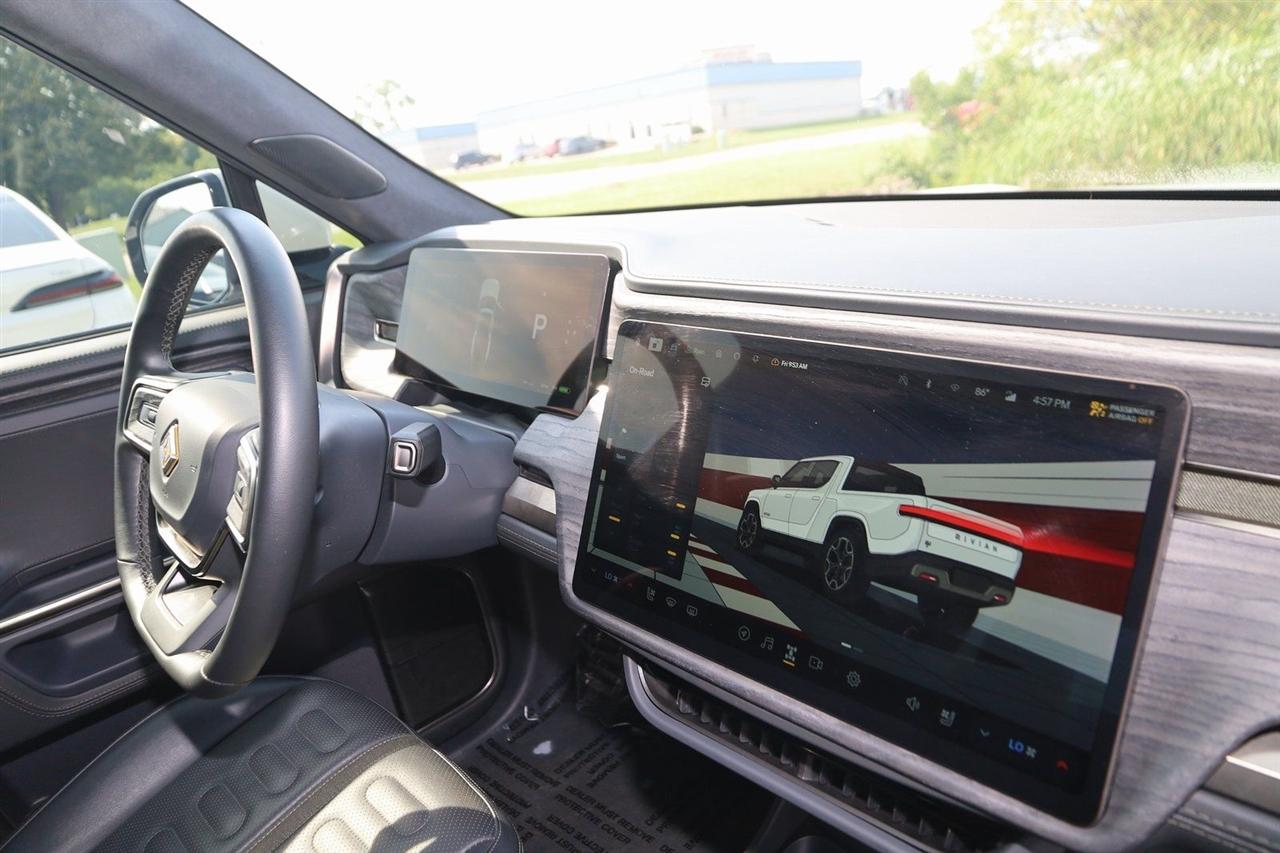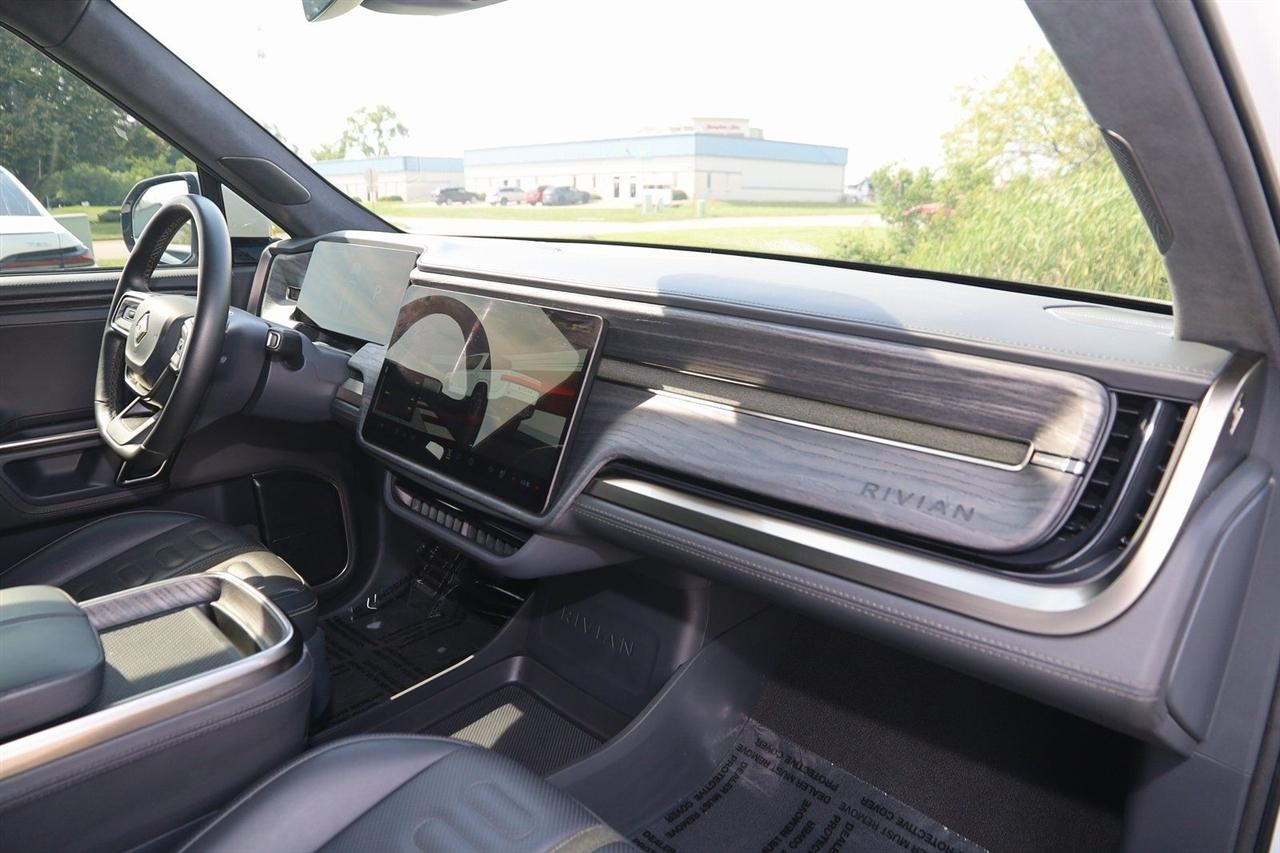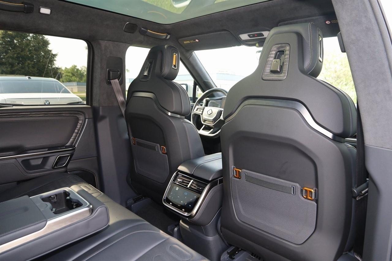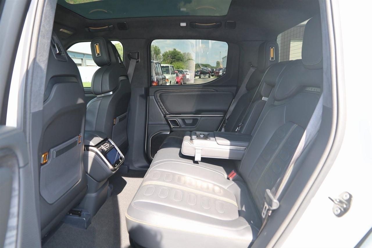 Navigation, Back Up Camera, Bluetooth, Panoramic Roof, Heated Seats, Touch Screen, Heated Steering Wheel, Blind Spot, Cooled Heats, Apple Play, R1T Adventure, 4D Crew Cab, Electric ZEV 600hp, 1-Speed Automatic, AWD, LA Silver, Black Mountain Leather, Navigation System.