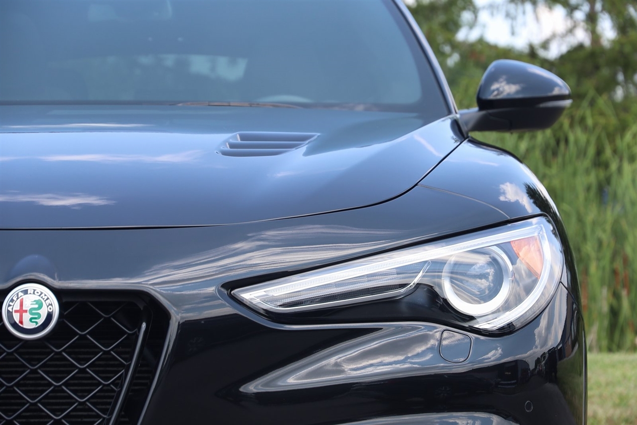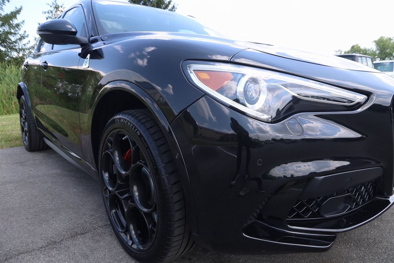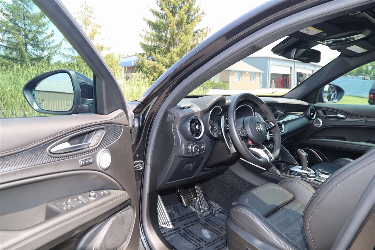Navigation, Back Up Camera, Bluetooth, Panoramic Roof, Heated Seats, Touch Screen, Heated Steering Wheel, Blind Spot, Stelvio Quadrifoglio, 4D Sport Utility, 2.9L V6, 8-Speed Automatic, AWD, Vulcano Black Metallic, Black Leather, Navigation System.