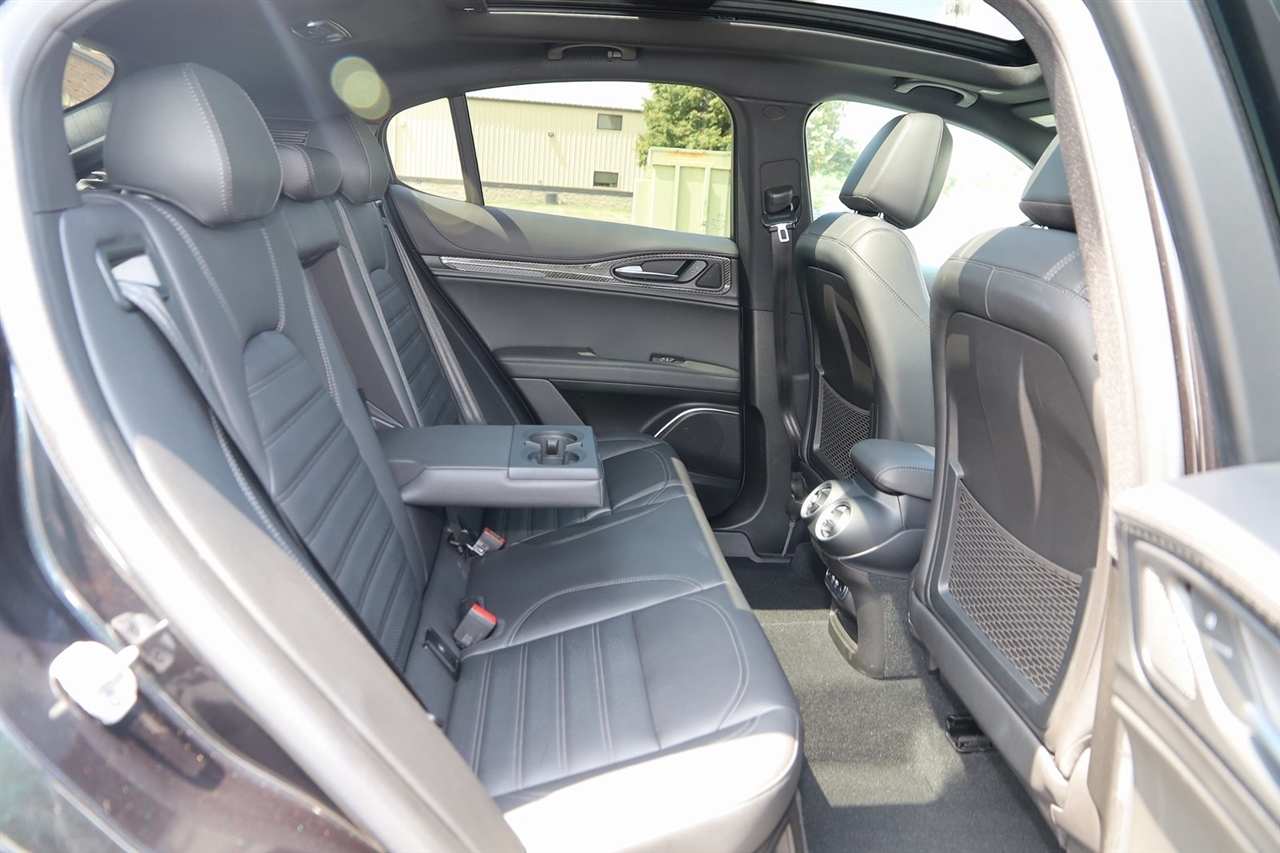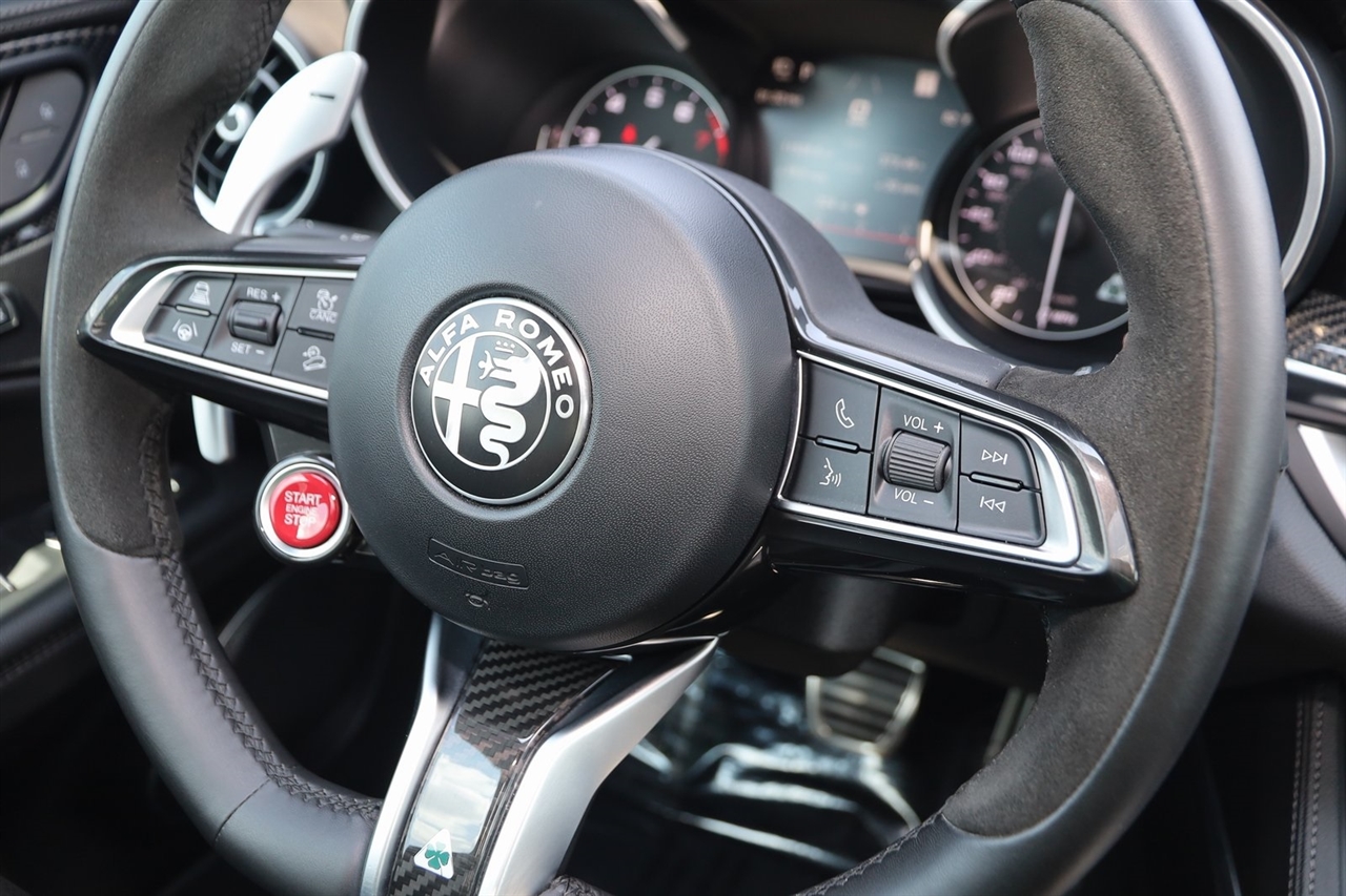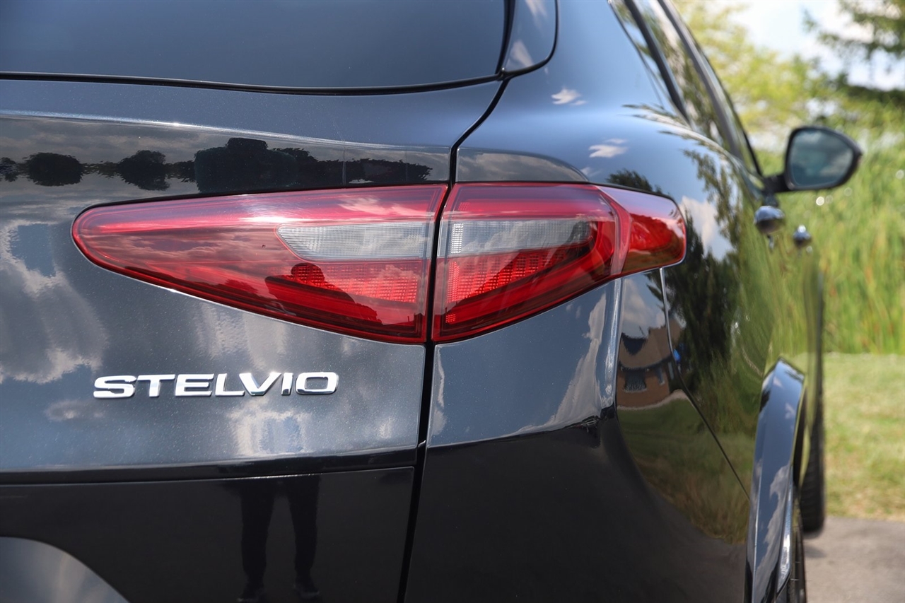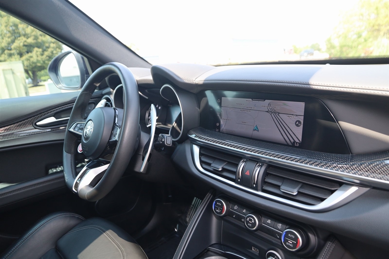 Navigation, Back Up Camera, Bluetooth, Panoramic Roof, Heated Seats, Touch Screen, Heated Steering Wheel, Blind Spot, Stelvio Quadrifoglio, 4D Sport Utility, 2.9L V6, 8-Speed Automatic, AWD, Vulcano Black Metallic, Black Leather, Navigation System.