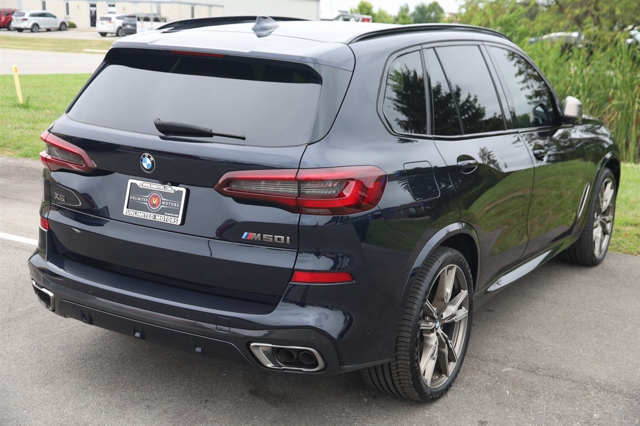 Navigation, Back Up Camera, Bluetooth, Panoramic Roof, Heated Seats, Touch Screen, Heated Steering Wheel, Blind Spot, Cooled Heats, Apple Play, X5 M50i, 4D Sport Utility, 4.4L V8 DOHC 32V Twin Turbocharged, 8-Speed Automatic Sport, AWD, Jet Black, Black Leather, Navigation System.