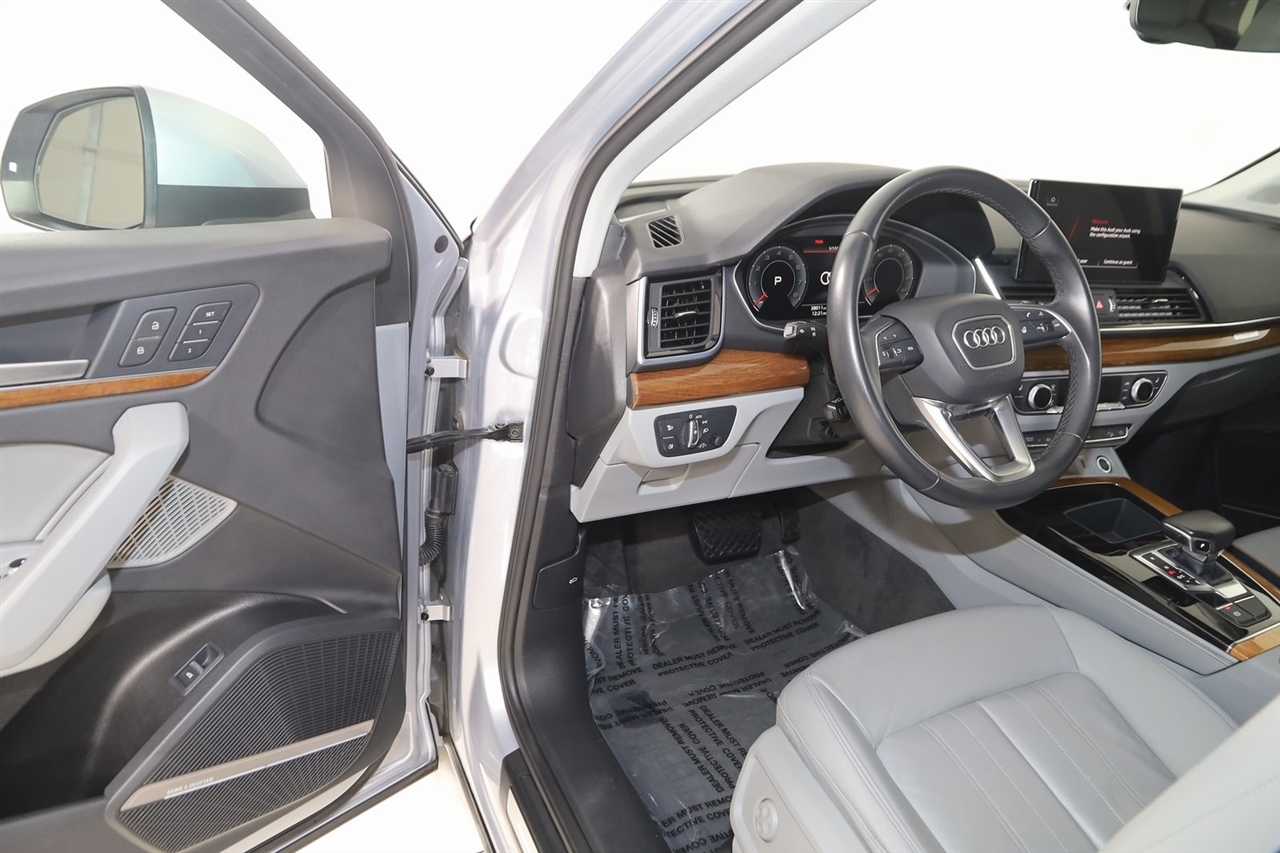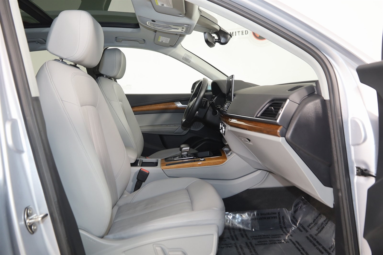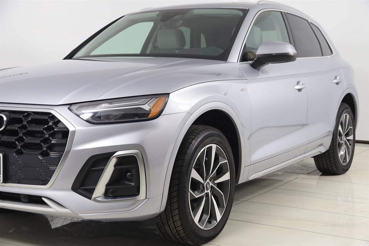Navigation, Back Up Camera, Bluetooth, Panoramic Roof, Heated Seats, Touch Screen, Heated Steering Wheel, Blind Spot, Apple Play, Q5 45 S line Premium quattro, 4D Sport Utility, 2.0L Turbocharged, 7-Speed Automatic S tronic, quattro, Florett Silver Metallic, Rock Gray Leather, Navigation System.