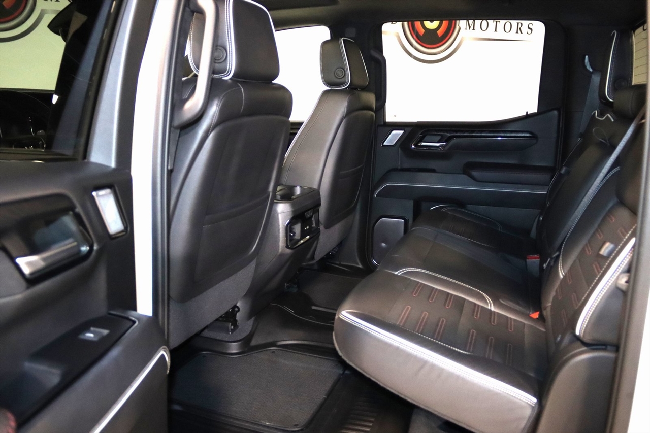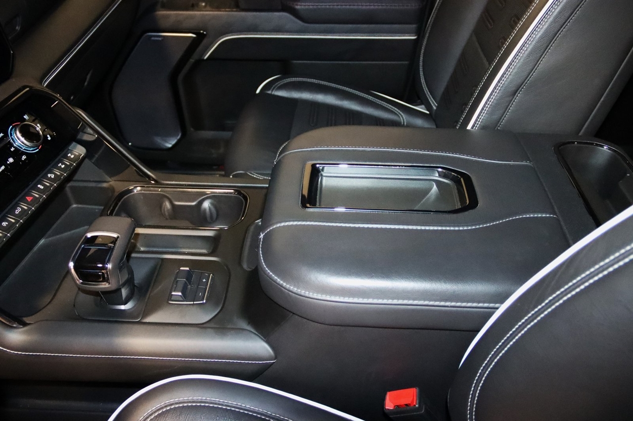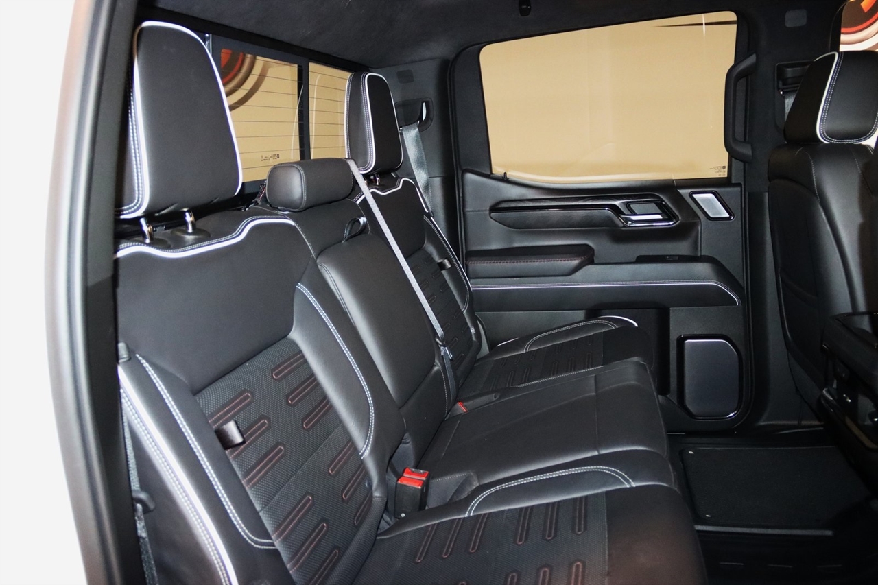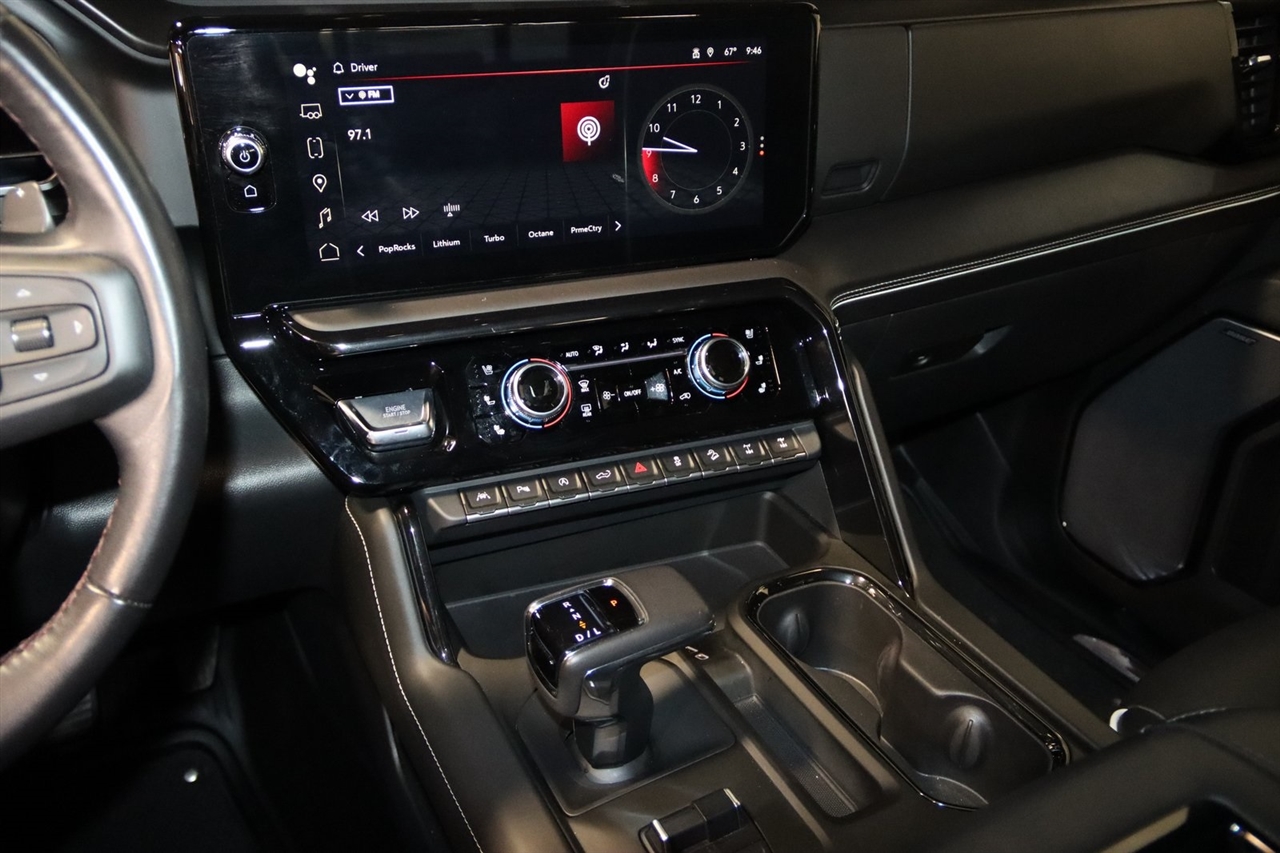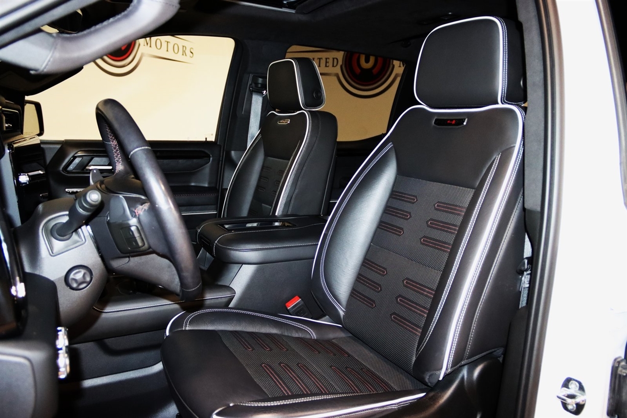 Navigation, Bluetooth, Back Up Camera, Touch Screen, 12 Speakers, 120-Volt Bed Mounted Power Outlet, 120-Volt Instrument Panel Power Outlet, 16-Way Power Driver Seat Adjuster w/Lumbar, 16-Way Power Passenger Seat Adjuster w/Lumbar, 2 Charge/Data USB Ports Inside Center Console, 2 Type-C Charge-Only Rear USB Ports, 2 USB Ports, 3.23 Rear Axle Ratio, 4-Wheel Disc Brakes, ABS brakes, Air Conditioning, Alloy wheels, AM/FM radio: SiriusXM with 360L, Apple CarPlay/Android Auto, Auto High-beam Headlights, Auto-dimming door mirrors, Auto-dimming Rear-View mirror, Automatic Emergency Braking, Automatic temperature control, Bed View Camera, Bose Premium Series w/12-Speaker System, Brake assist, Buckle to Drive, Bumpers: body-color, Color-Keyed Carpeting Floor Covering, Compass, Dark Nickel Header & Grille Insert Bars, Deep-Tinted Glass, Delay-off headlights, Driver door bin, Driver Memory, Driver vanity mirror, Driver-Selectable Full-Locking Front Differential, Driver-Selectable Full-Locking Rear Differential, Dual front impact airbags, Dual front side impact airbags, Electric Rear-Window Defogger, Electrical Steering Column Lock, Electronic Stability Control, Emergency communication system: OnStar and GMC Connected Services capable, Floor-Mounted Center Console, Following Distance Indicator, Forward Collision Alert, Front anti-roll bar, Front Bucket Seats, Front Center Armrest, Front dual zone A/C, Front fog lights, Front License Plate Kit, Front Pedestrian Braking, Front Prem Floor Liners w/Removable Carpet Insert, Front Rainsensing Wipers, Front reading lights, Front wheel independent suspension, Full Grain Leather Seat Trim, Fully automatic headlights, Garage door transmitter, Genuine wood dashboard insert, Genuine wood door panel insert, GMC Connected Access Capable, HD Surround Vision, Heads-Up Display, Heated 2nd Row Outboard Seats, Heated door mirrors, Heated Driver & Front Outboard Passenger Seating, Heated front seats, Heated rear seats, Heated steering wheel, Heavy-Duty Air Filter, Hill Descent Control, Hitch Guidance, Hitch Guidance w/Hitch View, Illuminated entry, In-Vehicle Trailering App, Integrated Trailer Brake Controller, IntelliBeam Automatic High Beam On/Off, Keyless Open & Start, Lane Keep Assist w/Lane Departure Warning, LED Cargo Area Lighting, Low tire pressure warning, Memory seat, Multicolor 15" Diagonal Head-Up Display, MultiPro Audio System by Kicker (LPO), Navigation System, Not Equipped w/Steering Column Lock, Occupant sensing airbag, Off-Road Suspension, OnStar & GMC Connected Services Capable, Outside temperature display, Overhead airbag, Overhead console, Panic alarm, Passenger door bin, Passenger vanity mirror, Perimeter Lighting, Power Door Locks, Power door mirrors, Power driver seat, Power Front Passenger Windows w/Express Up/Down, Power Front Windows w/Driver Express Up/Down, Power moonroof, Power passenger seat, Power Rake & Telescoping Steering Column, Power Rear Windows w/Express Down, Power Sliding Rear Window w/Rear Defogger, Power steering, Power Sunroof, Power windows, Preferred Equipment Group 4SG, Premium audio system: GMC Infotainment System, Push Button Start, Radio data system, Radio: Premium GMC Infotainment Audio System, Rain sensing wipers, Rear Cross Traffic Braking, Rear Pedestrian Detection, Rear Prem Floor Liners w/Removable Carpet Insert, Rear reading lights, Rear seat center armrest, Rear step bumper, Rear Wheelhouse Liners, Rear window defroster, Red Recovery Hooks, Remote keyless entry, Remote Vehicle Starter System, Safety Alert Seat, Security system, SiriusXM w/360L, Speed control, Speed-sensing steering, Split folding rear seat, Spray-On Pickup Bed Liner w/AT4X Logo, Steering Wheel Audio Controls, Steering wheel mounted audio controls, Tachometer, Telescoping steering wheel, Theft Deterrent System (Unauthorized Entry), Tilt steering wheel, Traction control, Trailer Camera Provisions, Trailer Side Blind Zone Alert, Trailer Tire Pressure Monitor System, Trailering Package, Tr