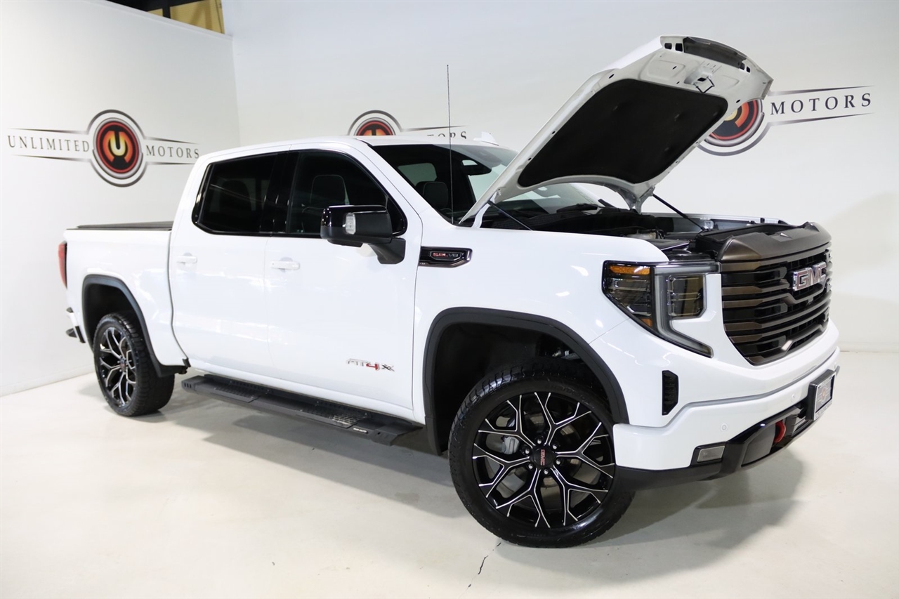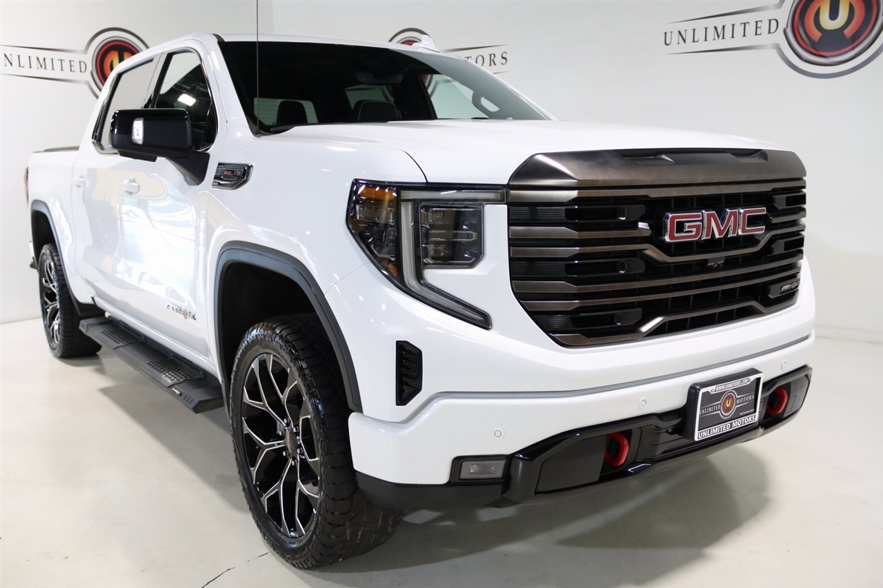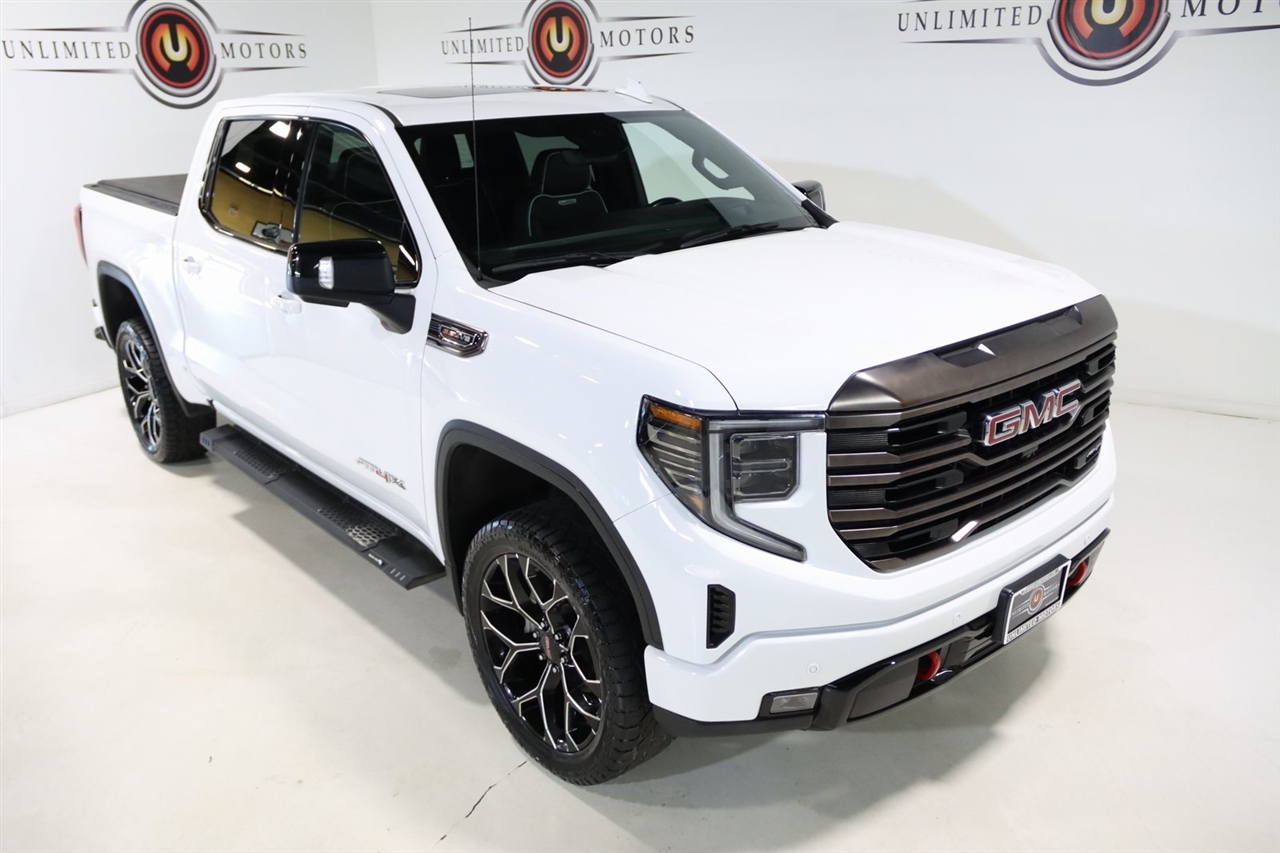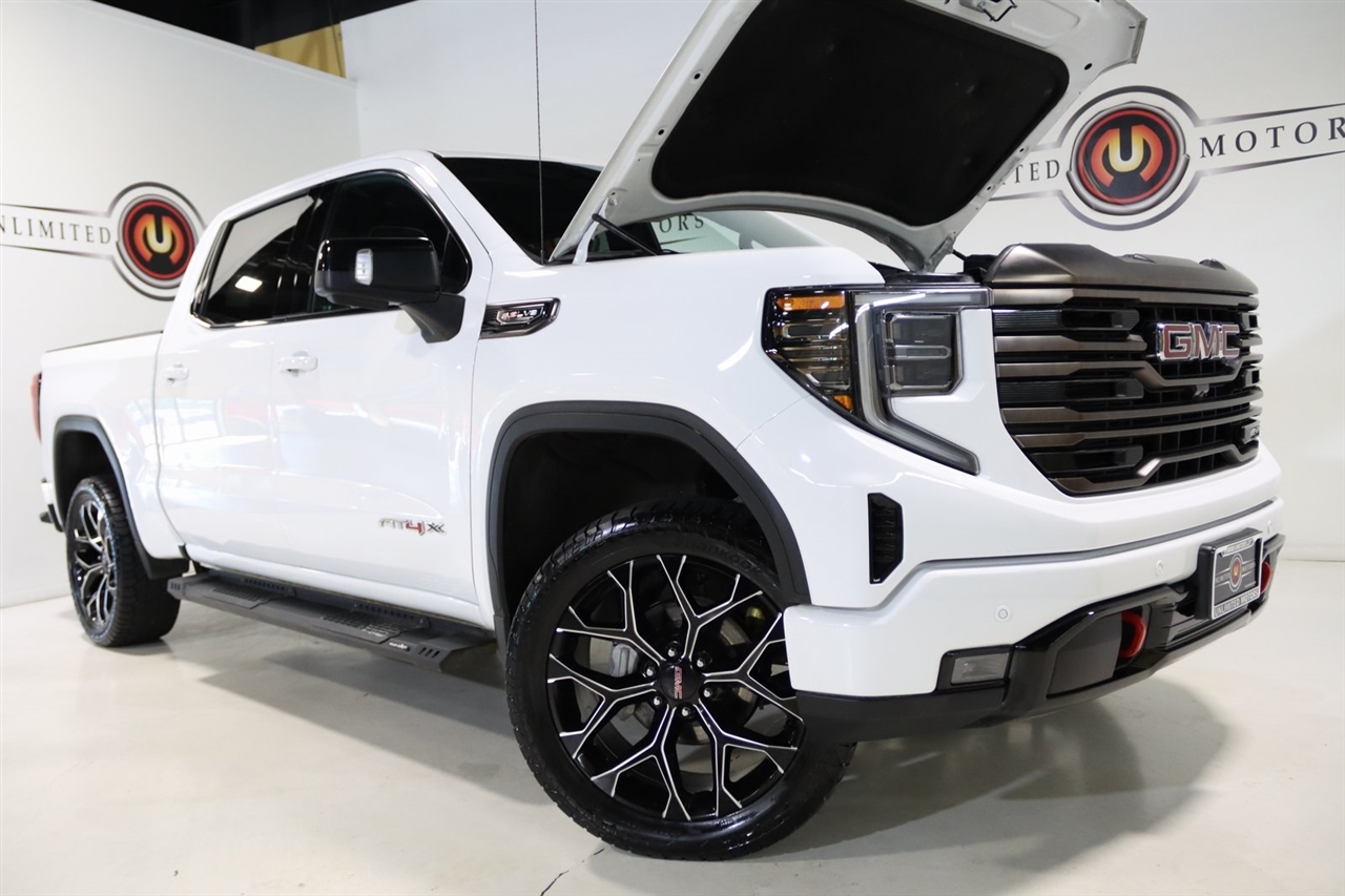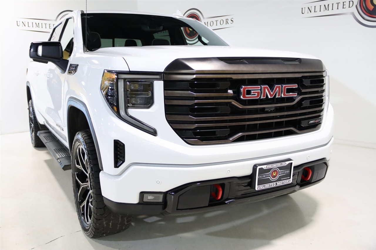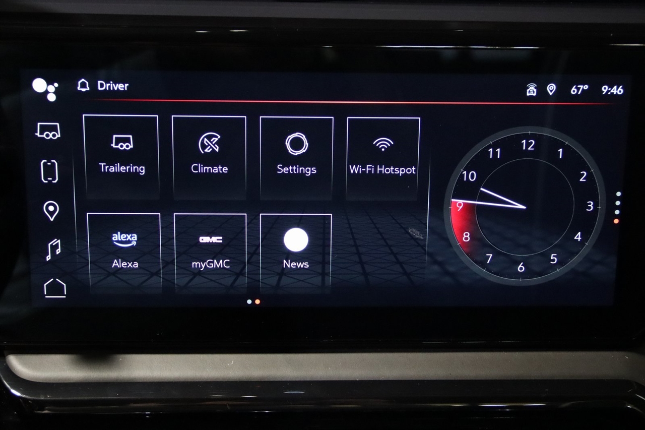 Navigation, Bluetooth, Back Up Camera, Touch Screen, 12 Speakers, 120-Volt Bed Mounted Power Outlet, 120-Volt Instrument Panel Power Outlet, 16-Way Power Driver Seat Adjuster w/Lumbar, 16-Way Power Passenger Seat Adjuster w/Lumbar, 2 Charge/Data USB Ports Inside Center Console, 2 Type-C Charge-Only Rear USB Ports, 2 USB Ports, 3.23 Rear Axle Ratio, 4-Wheel Disc Brakes, ABS brakes, Air Conditioning, Alloy wheels, AM/FM radio: SiriusXM with 360L, Apple CarPlay/Android Auto, Auto High-beam Headlights, Auto-dimming door mirrors, Auto-dimming Rear-View mirror, Automatic Emergency Braking, Automatic temperature control, Bed View Camera, Bose Premium Series w/12-Speaker System, Brake assist, Buckle to Drive, Bumpers: body-color, Color-Keyed Carpeting Floor Covering, Compass, Dark Nickel Header & Grille Insert Bars, Deep-Tinted Glass, Delay-off headlights, Driver door bin, Driver Memory, Driver vanity mirror, Driver-Selectable Full-Locking Front Differential, Driver-Selectable Full-Locking Rear Differential, Dual front impact airbags, Dual front side impact airbags, Electric Rear-Window Defogger, Electrical Steering Column Lock, Electronic Stability Control, Emergency communication system: OnStar and GMC Connected Services capable, Floor-Mounted Center Console, Following Distance Indicator, Forward Collision Alert, Front anti-roll bar, Front Bucket Seats, Front Center Armrest, Front dual zone A/C, Front fog lights, Front License Plate Kit, Front Pedestrian Braking, Front Prem Floor Liners w/Removable Carpet Insert, Front Rainsensing Wipers, Front reading lights, Front wheel independent suspension, Full Grain Leather Seat Trim, Fully automatic headlights, Garage door transmitter, Genuine wood dashboard insert, Genuine wood door panel insert, GMC Connected Access Capable, HD Surround Vision, Heads-Up Display, Heated 2nd Row Outboard Seats, Heated door mirrors, Heated Driver & Front Outboard Passenger Seating, Heated front seats, Heated rear seats, Heated steering wheel, Heavy-Duty Air Filter, Hill Descent Control, Hitch Guidance, Hitch Guidance w/Hitch View, Illuminated entry, In-Vehicle Trailering App, Integrated Trailer Brake Controller, IntelliBeam Automatic High Beam On/Off, Keyless Open & Start, Lane Keep Assist w/Lane Departure Warning, LED Cargo Area Lighting, Low tire pressure warning, Memory seat, Multicolor 15" Diagonal Head-Up Display, MultiPro Audio System by Kicker (LPO), Navigation System, Not Equipped w/Steering Column Lock, Occupant sensing airbag, Off-Road Suspension, OnStar & GMC Connected Services Capable, Outside temperature display, Overhead airbag, Overhead console, Panic alarm, Passenger door bin, Passenger vanity mirror, Perimeter Lighting, Power Door Locks, Power door mirrors, Power driver seat, Power Front Passenger Windows w/Express Up/Down, Power Front Windows w/Driver Express Up/Down, Power moonroof, Power passenger seat, Power Rake & Telescoping Steering Column, Power Rear Windows w/Express Down, Power Sliding Rear Window w/Rear Defogger, Power steering, Power Sunroof, Power windows, Preferred Equipment Group 4SG, Premium audio system: GMC Infotainment System, Push Button Start, Radio data system, Radio: Premium GMC Infotainment Audio System, Rain sensing wipers, Rear Cross Traffic Braking, Rear Pedestrian Detection, Rear Prem Floor Liners w/Removable Carpet Insert, Rear reading lights, Rear seat center armrest, Rear step bumper, Rear Wheelhouse Liners, Rear window defroster, Red Recovery Hooks, Remote keyless entry, Remote Vehicle Starter System, Safety Alert Seat, Security system, SiriusXM w/360L, Speed control, Speed-sensing steering, Split folding rear seat, Spray-On Pickup Bed Liner w/AT4X Logo, Steering Wheel Audio Controls, Steering wheel mounted audio controls, Tachometer, Telescoping steering wheel, Theft Deterrent System (Unauthorized Entry), Tilt steering wheel, Traction control, Trailer Camera Provisions, Trailer Side Blind Zone Alert, Trailer Tire Pressure Monitor System, Trailering Package, Tr