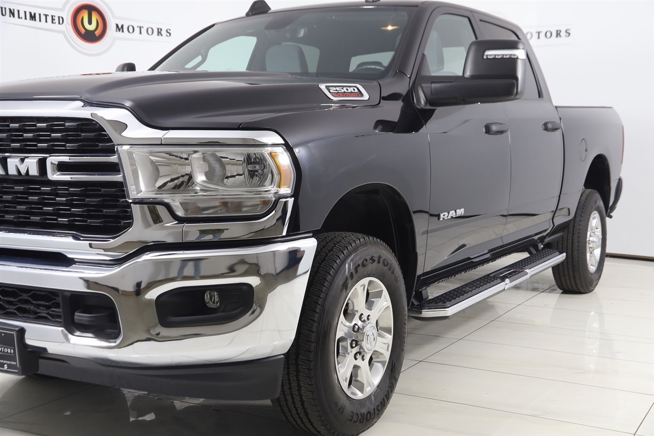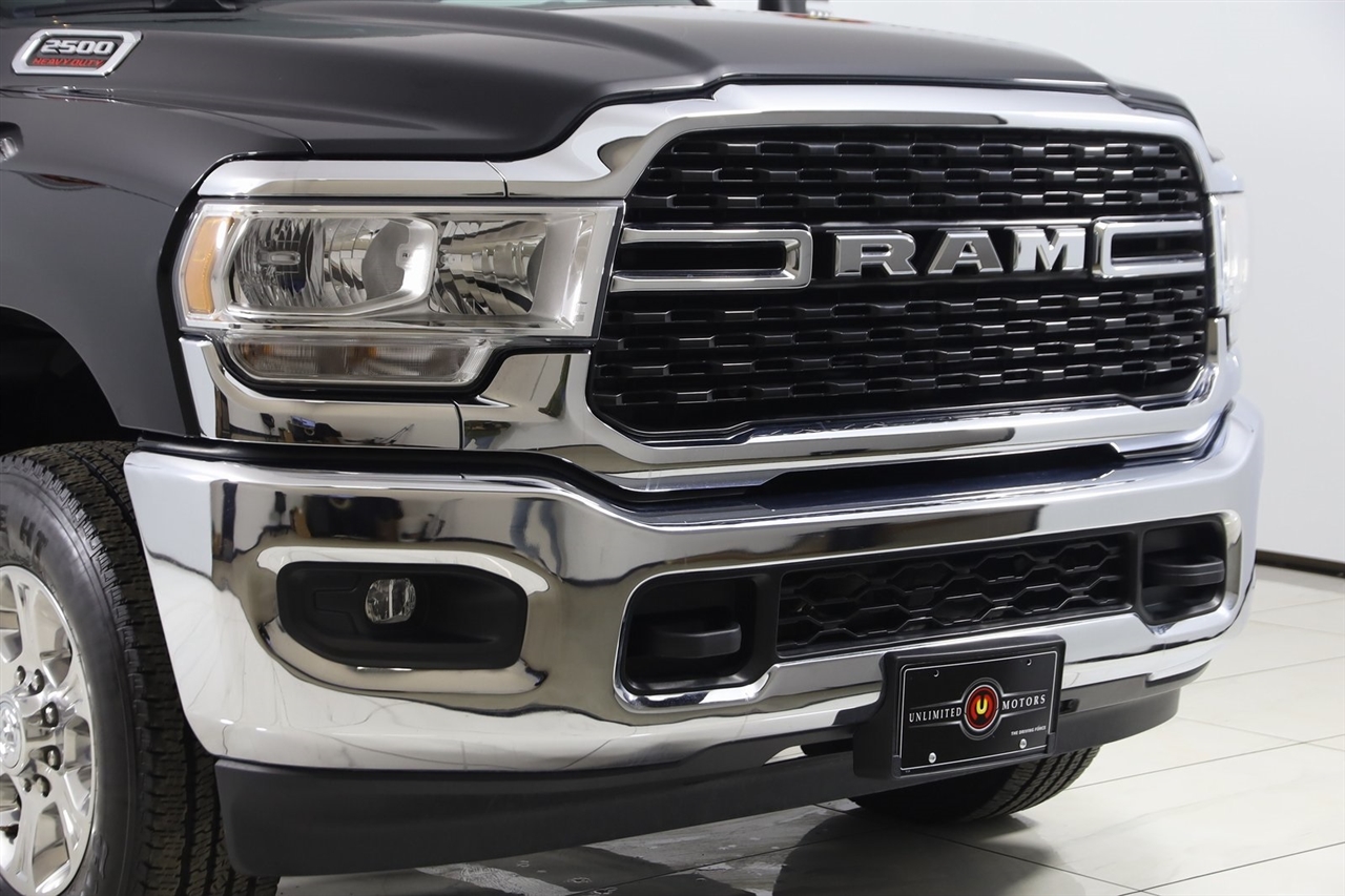 Back Up Camera, Bluetooth, Running Boards, Winch, Touch Screen, 2500 Big Horn, 4D Crew Cab, 6.4L V8, 8-Speed Automatic, 4WD, Diamond Black Crystal Pearlcoat, Diesel Gray/Black Cloth, 2nd Row In Floor Storage Bins, 4G LTE Wi-Fi Hot Spot, 8.4" Touchscreen Display, Apple CarPlay, Auto Power-Folding Mirrors, Big Horn IP Badge, Black Exterior Mirrors, Bluetooth Handsfree Phone & Audio, Center Hub, Connectivity - US/Canada, Dual Glove Boxes, Exterior Mirrors Courtesy Lamps, Exterior Mirrors w/Heating Element, Exterior Mirrors w/Supplemental Signals, Foam Bottle Insert (Door Trim Panel), Footwell Courtesy Lamp, For Details, Visit DriveUconnect.com, For More Info, Call 800-643-2112, Forward & Reverse Utility Lights, Front Fog Lamps, Global Telematics Box Module (TBM), Glove Box Lamp, Google Android Auto, GPS Antenna Input, Integrated Center Stack Radio, Integrated Voice Command w/Bluetooth, Leather Wrapped Steering Wheel, Level 1 Equipment Group, Locking Lower Glove Box, Mirror Running Lights, Power Adjust Mirrors, Power Adjustable Convex Aux Mirrors, Power Heated Fold Telescope Mirrors, Power Telescoping Mirrors, Premium Cloth 40/20/40 Bench Seat, Protection Group, Radio: Uconnect 5 W w/8.4" Display (A62), Rear Dome w/On/Off Switch Lamp, Selectable Tire Fill Alert, SiriusXM Radio Service, SiriusXM Satellite Radio, Steering Wheel Mounted Audio Controls, Tow Hooks, Wheels: 18" x 8.0" Polished Aluminum.