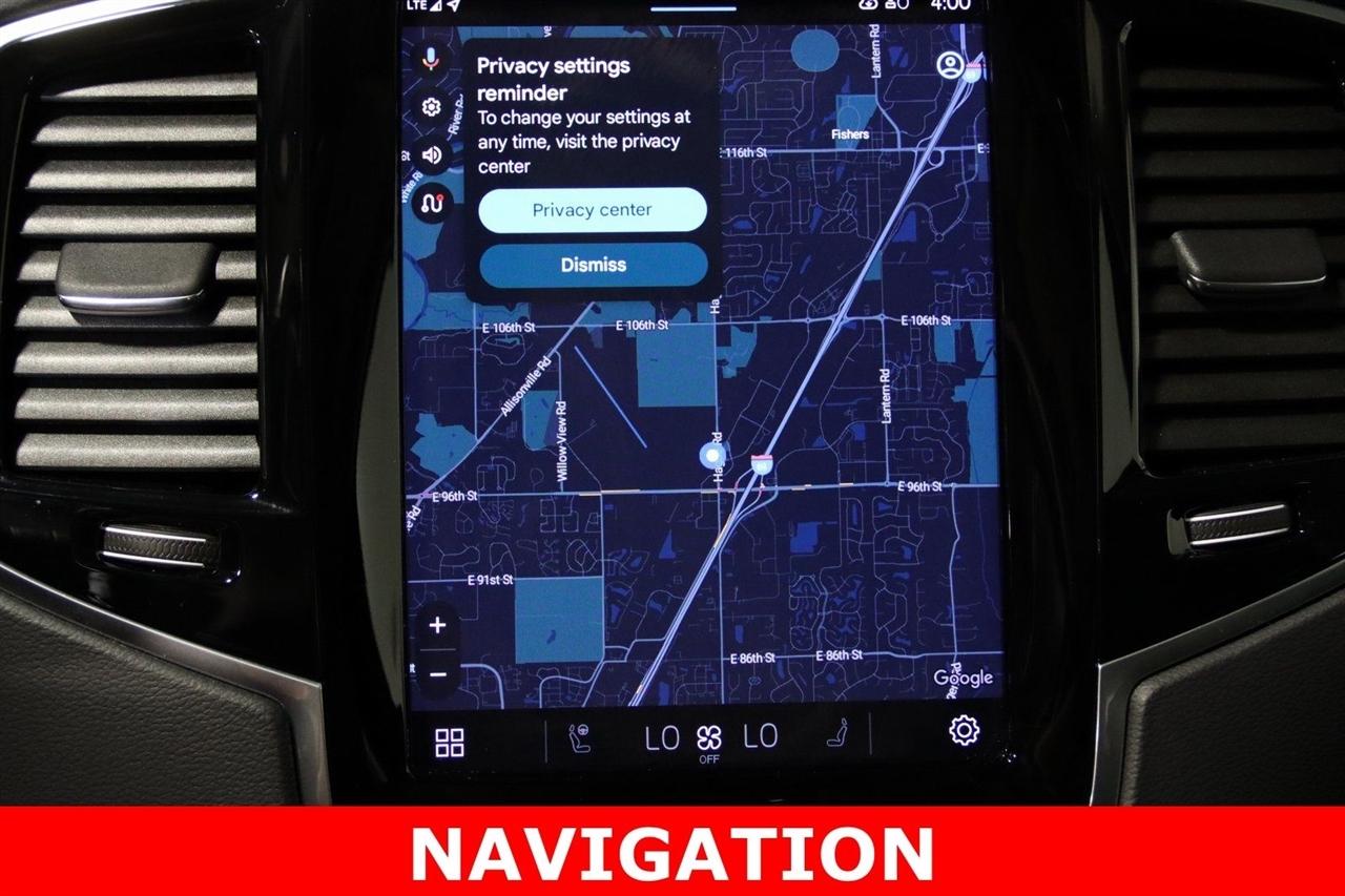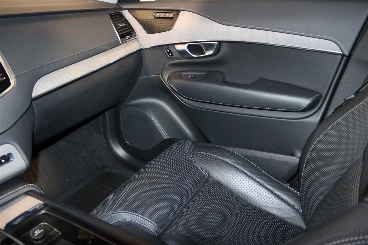 Navigation, Bluetooth, Back Up Camera, Panoramic Roof, 3rd Row, Heated Seats, Touch Screen, 14 Speakers, 3rd row seats: bucket, 4-Wheel Disc Brakes, ABS brakes, Air Conditioning, Alloy wheels, AM/FM radio: SiriusXM, Anti-whiplash front head restraints, Apple CarPlay, Auto High-beam Headlights, Auto-dimming door mirrors, Auto-dimming Rear-View mirror, Automatic temperature control, Brake assist, Bumpers: body-color, Delay-off headlights, Driver door bin, Driver vanity mirror, Dual front impact airbags, Dual front side impact airbags, Electronic Stability Control, Emergency communication system: Volvo Cars App w/4 Year Subscription, Exterior Parking Camera Rear, Four wheel independent suspension, Front anti-roll bar, Front Bucket Seats, Front Center Armrest w/Storage, Front dual zone A/C, Front fog lights, Front reading lights, Fully automatic headlights, Garage door transmitter: HomeLink, Genuine wood dashboard insert, Genuine wood door panel insert, harman/kardon® Speakers, Headlight cleaning, Heads-Up Display, Heated & Ventilated Front Bucket Seats, Heated door mirrors, Heated front seats, Heated rear seats, Heated steering wheel, Illuminated entry, Integrated rear child seats, Knee airbag, Low tire pressure warning, Memory seat, Navigation System, Occupant sensing airbag, Outside temperature display, Overhead airbag, Panic alarm, Passenger door bin, Passenger vanity mirror, Perforated Nappa Leather Upholstery, Power door mirrors, Power driver seat, Power moonroof, Power passenger seat, Power steering, Power windows, Radio data system, Radio: harman/kardon Premium Audio System, Rain sensing wipers, Rear air conditioning, Rear anti-roll bar, Rear dual zone A/C, Rear fog lights, Rear reading lights, Rear seat center armrest, Rear window defroster, Rear window wiper, Remote keyless entry, Security system, Speed control, Speed-sensing steering, Split folding rear seat, Spoiler, Steering wheel mounted audio controls, Tachometer, Telescoping steering wheel, Traction control, Trip computer, Turn signal indicator mirrors, Variably intermittent wipers, Ventilated front seats, Wheels: 21" 8-Multi Spoke Black Diamond Cut Alloy. CARFAX One-Owner. 20/26 City/Highway MPG