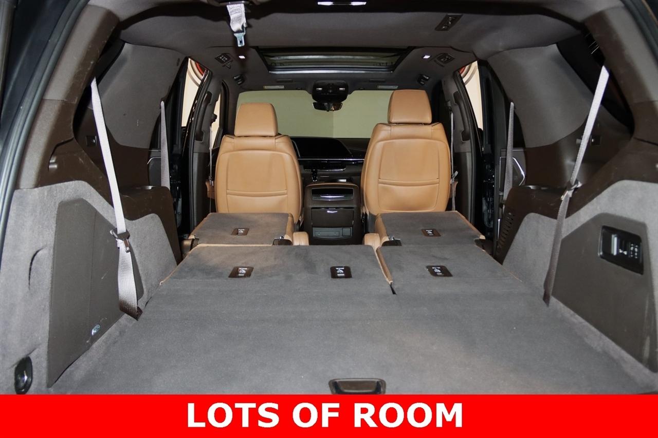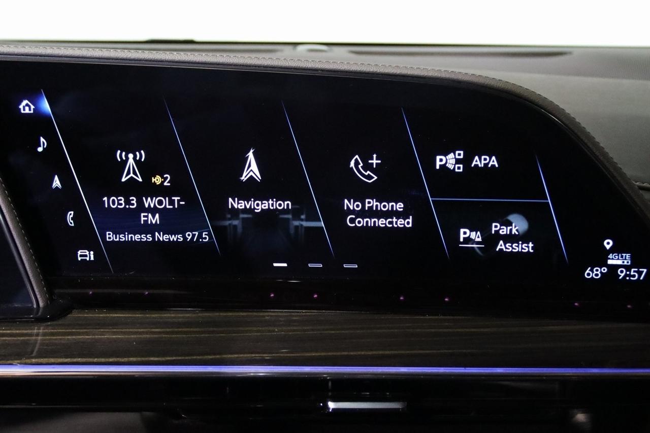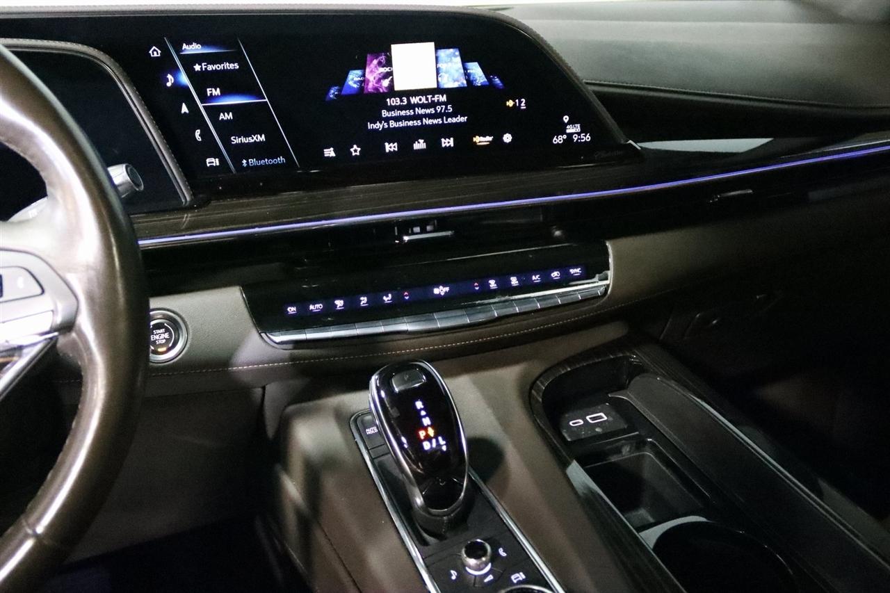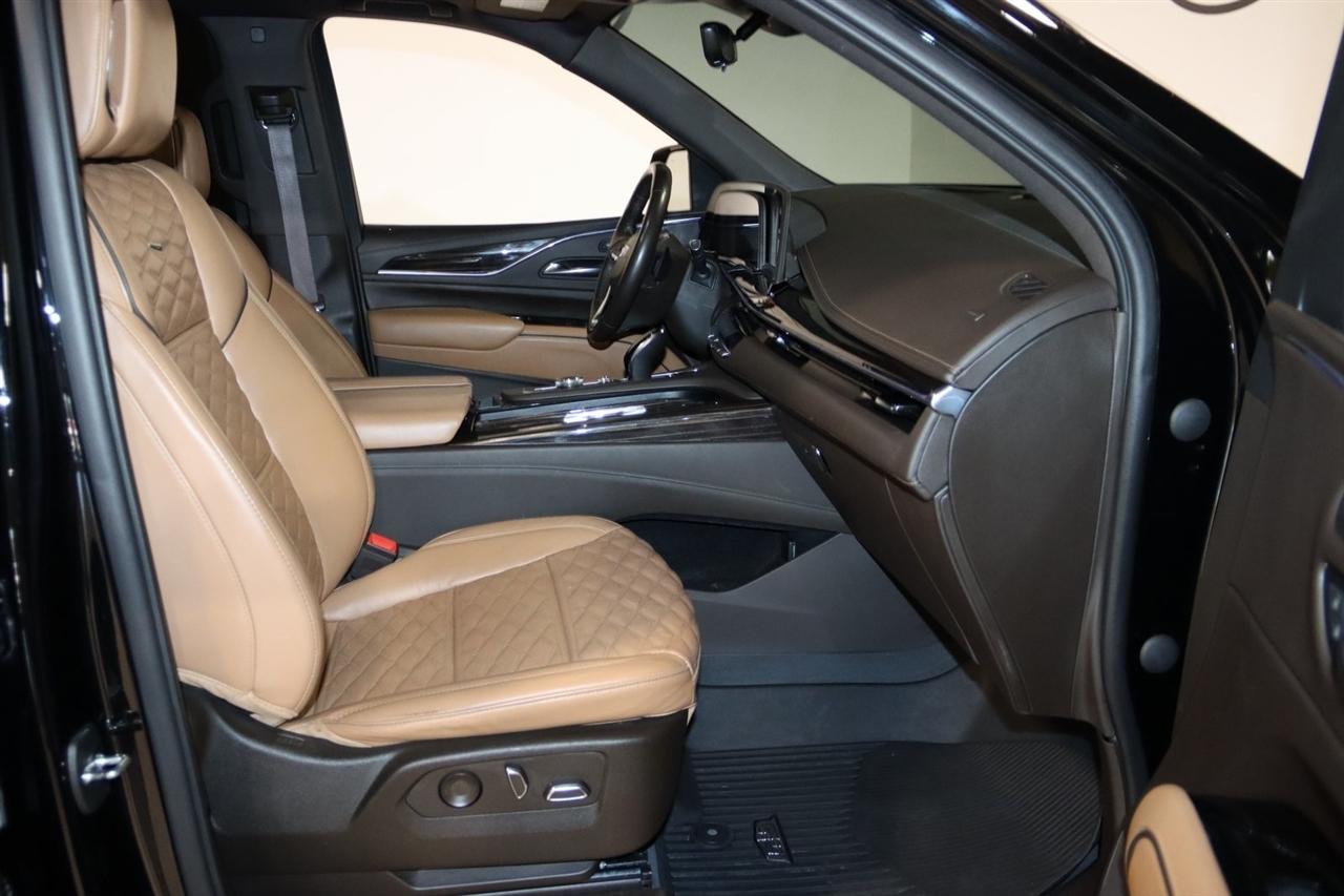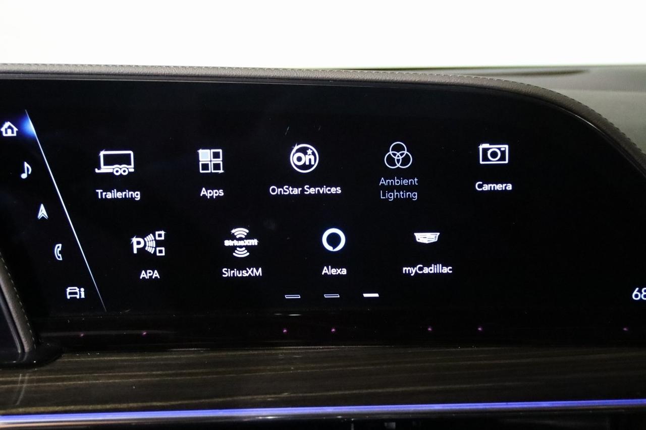 Navigation, Bluetooth, Back Up Camera, Panoramic Roof, 3rd Row, Heated Seats, Touch Screen, 16.9" Diagonal OLED Infotainment Screen, 19 Speakers, 2-Presets Memory For Driver Seat Adjuster, 3.23 Axle Ratio, 3rd row seats: split-bench, 4-Wheel Disc Brakes, 8-Way Power Driver Seat Adjuster, 8-Way Power Front Passenger Seat Adjuster, ABS brakes, Adaptive Cruise Control, Adaptive suspension, Air Conditioning, Air Ride Adaptive Suspension, AKG Studio 19-Speaker Audio System, Alloy wheels, AM/FM radio: SiriusXM with 360L, Apple CarPlay/Android Auto, Audio memory, Auto High-beam Headlights, Auto tilt-away steering wheel, Auto-dimming door mirrors, Auto-dimming Rear-View mirror, Automatic Seat Belt Tightening, Automatic Stop/Start, Automatic temperature control, Body-Color Door Handles, Brake assist, Bumpers: body-color, Compass, Delay-off headlights, Door Lock & Latch Shields, Driver door bin, Driver vanity mirror, Dual front impact airbags, Dual front side impact airbags, Electronic Limited-Slip Differential, Electronic Stability Control, Emergency communication system: OnStar and Cadillac connected services capable, Enhanced Automatic Emergency Braking, Enhanced Automatic Parking Assist, Four wheel independent suspension, Front anti-roll bar, Front Bucket Seats, Front Center Armrest w/Storage, Front dual zone A/C, Front reading lights, Fully automatic headlights, Garage door transmitter, Glass Breakage Sensor, Gloss Black Escalade Nameplate (LPO), HD Radio, Heads-Up Display, Heated & Ventilated Driver & Front Passenger Seats, Heated door mirrors, Heated Driver & Front Passenger Seats, Heated front seats, Heated rear seats, Heated steering wheel, Hitch Guidance w/Hitch View, Illuminated entry, Illuminating Front & Rear Sill Plates, Integrated Trailer Brake Controller, Leather Seating Surfaces w/Precision Perf Inserts, Leather steering wheel, Low tire pressure warning, Magnetic Ride Control Suspension, Memory seat, Navigation System, Not Equipped w/4-Way Driver & Fr Pass Pwr Lumbar, Not Equipped w/Steering Column Lock, Not Equipped w/Super Cruise, Occupant sensing airbag, Outside temperature display, Overhead airbag, Overhead console, Panic alarm, Passenger door bin, Passenger vanity mirror, Power door mirrors, Power driver seat, Power Liftgate, Power moonroof, Power Panoramic Tilt-Sliding Sunroof, Power passenger seat, Power steering, Power windows, Power-Retractable Assist Steps, Preferred Equipment Group 1SC, Radio data system, Radio: AM/FM/SiriusXM w/Navigation, Rain sensing wipers, Rear air conditioning, Rear anti-roll bar, Rear Camera Mirror, Rear Camera Mirror Washer, Rear Cross Traffic Alert, Rear reading lights, Rear window defroster, Rear window wiper, Reconfigurable Full-Color Head-Up Display, Remote keyless entry, Reverse Automatic Braking, Roof rack: rails only, Running Board Assist Steps, Security system, SiriusXM w/360L, Smart Trailer Integration Indicator, Soft Closing Front & Rear Doors, Speed control, Split folding rear seat, Spoiler, Start/Stop System Disable Button, Steering wheel memory, Steering wheel mounted audio controls, Super Cruise, Tachometer, Teen Driver, Telescoping steering wheel, Theft-Deterrent Alarm System, Tilt steering wheel, Touring Package, Traction control, Trailer Side Blind Zone Alert, Trip computer, Turn signal indicator mirrors, Variably intermittent wipers, Vehicle Inclination Sensor, Vehicle Interior Movement Sensor, Ventilated front seats, Voltmeter, Wheels: 22" 12-Spoke Polished Alloy, Wireless Apple CarPlay/Wireless Android Auto.