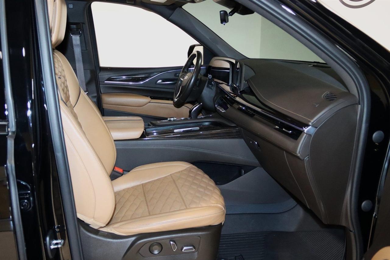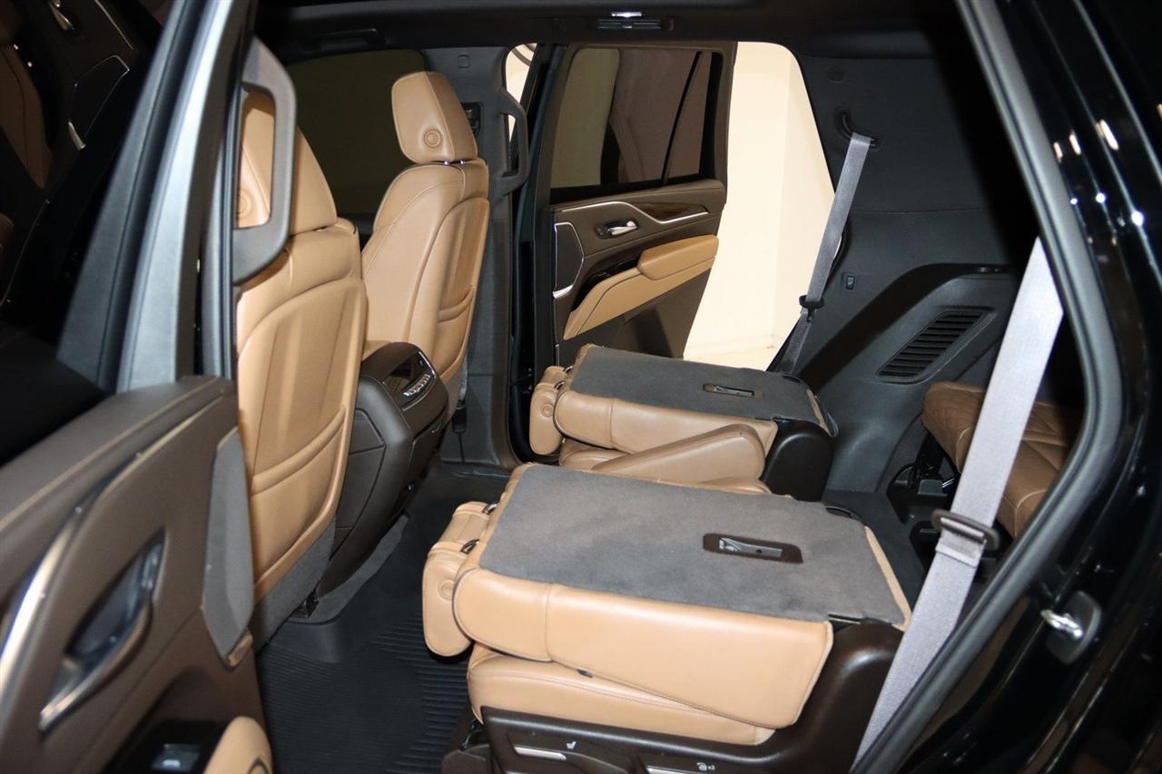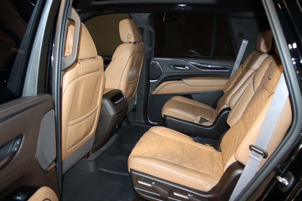 Navigation, Bluetooth, Back Up Camera, Panoramic Roof, 3rd Row, Heated Seats, Touch Screen, 16.9" Diagonal OLED Infotainment Screen, 19 Speakers, 2-Presets Memory For Driver Seat Adjuster, 3.23 Axle Ratio, 3rd row seats: split-bench, 4-Wheel Disc Brakes, 8-Way Power Driver Seat Adjuster, 8-Way Power Front Passenger Seat Adjuster, ABS brakes, Adaptive Cruise Control, Adaptive suspension, Air Conditioning, Air Ride Adaptive Suspension, AKG Studio 19-Speaker Audio System, Alloy wheels, AM/FM radio: SiriusXM with 360L, Apple CarPlay/Android Auto, Audio memory, Auto High-beam Headlights, Auto tilt-away steering wheel, Auto-dimming door mirrors, Auto-dimming Rear-View mirror, Automatic Seat Belt Tightening, Automatic Stop/Start, Automatic temperature control, Body-Color Door Handles, Brake assist, Bumpers: body-color, Compass, Delay-off headlights, Door Lock & Latch Shields, Driver door bin, Driver vanity mirror, Dual front impact airbags, Dual front side impact airbags, Electronic Limited-Slip Differential, Electronic Stability Control, Emergency communication system: OnStar and Cadillac connected services capable, Enhanced Automatic Emergency Braking, Enhanced Automatic Parking Assist, Four wheel independent suspension, Front anti-roll bar, Front Bucket Seats, Front Center Armrest w/Storage, Front dual zone A/C, Front reading lights, Fully automatic headlights, Garage door transmitter, Glass Breakage Sensor, Gloss Black Escalade Nameplate (LPO), HD Radio, Heads-Up Display, Heated & Ventilated Driver & Front Passenger Seats, Heated door mirrors, Heated Driver & Front Passenger Seats, Heated front seats, Heated rear seats, Heated steering wheel, Hitch Guidance w/Hitch View, Illuminated entry, Illuminating Front & Rear Sill Plates, Integrated Trailer Brake Controller, Leather Seating Surfaces w/Precision Perf Inserts, Leather steering wheel, Low tire pressure warning, Magnetic Ride Control Suspension, Memory seat, Navigation System, Not Equipped w/4-Way Driver & Fr Pass Pwr Lumbar, Not Equipped w/Steering Column Lock, Not Equipped w/Super Cruise, Occupant sensing airbag, Outside temperature display, Overhead airbag, Overhead console, Panic alarm, Passenger door bin, Passenger vanity mirror, Power door mirrors, Power driver seat, Power Liftgate, Power moonroof, Power Panoramic Tilt-Sliding Sunroof, Power passenger seat, Power steering, Power windows, Power-Retractable Assist Steps, Preferred Equipment Group 1SC, Radio data system, Radio: AM/FM/SiriusXM w/Navigation, Rain sensing wipers, Rear air conditioning, Rear anti-roll bar, Rear Camera Mirror, Rear Camera Mirror Washer, Rear Cross Traffic Alert, Rear reading lights, Rear window defroster, Rear window wiper, Reconfigurable Full-Color Head-Up Display, Remote keyless entry, Reverse Automatic Braking, Roof rack: rails only, Running Board Assist Steps, Security system, SiriusXM w/360L, Smart Trailer Integration Indicator, Soft Closing Front & Rear Doors, Speed control, Split folding rear seat, Spoiler, Start/Stop System Disable Button, Steering wheel memory, Steering wheel mounted audio controls, Super Cruise, Tachometer, Teen Driver, Telescoping steering wheel, Theft-Deterrent Alarm System, Tilt steering wheel, Touring Package, Traction control, Trailer Side Blind Zone Alert, Trip computer, Turn signal indicator mirrors, Variably intermittent wipers, Vehicle Inclination Sensor, Vehicle Interior Movement Sensor, Ventilated front seats, Voltmeter, Wheels: 22" 12-Spoke Polished Alloy, Wireless Apple CarPlay/Wireless Android Auto. Priced below KBB Fair Purchase Price!