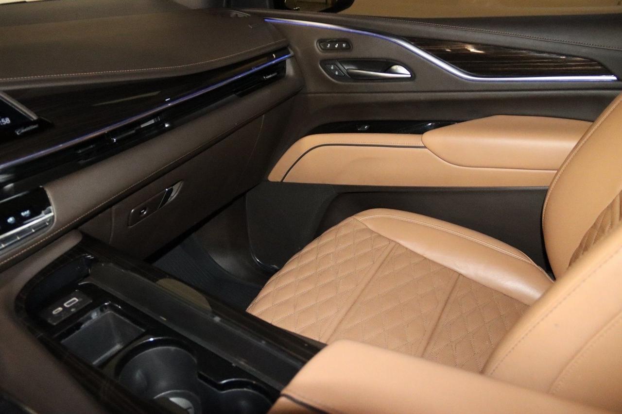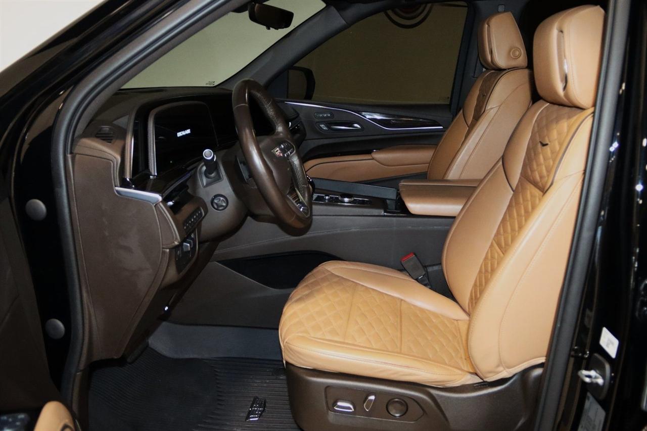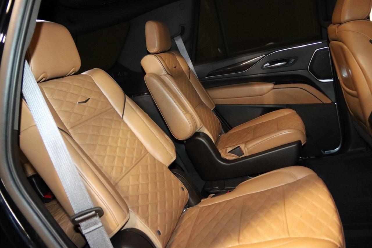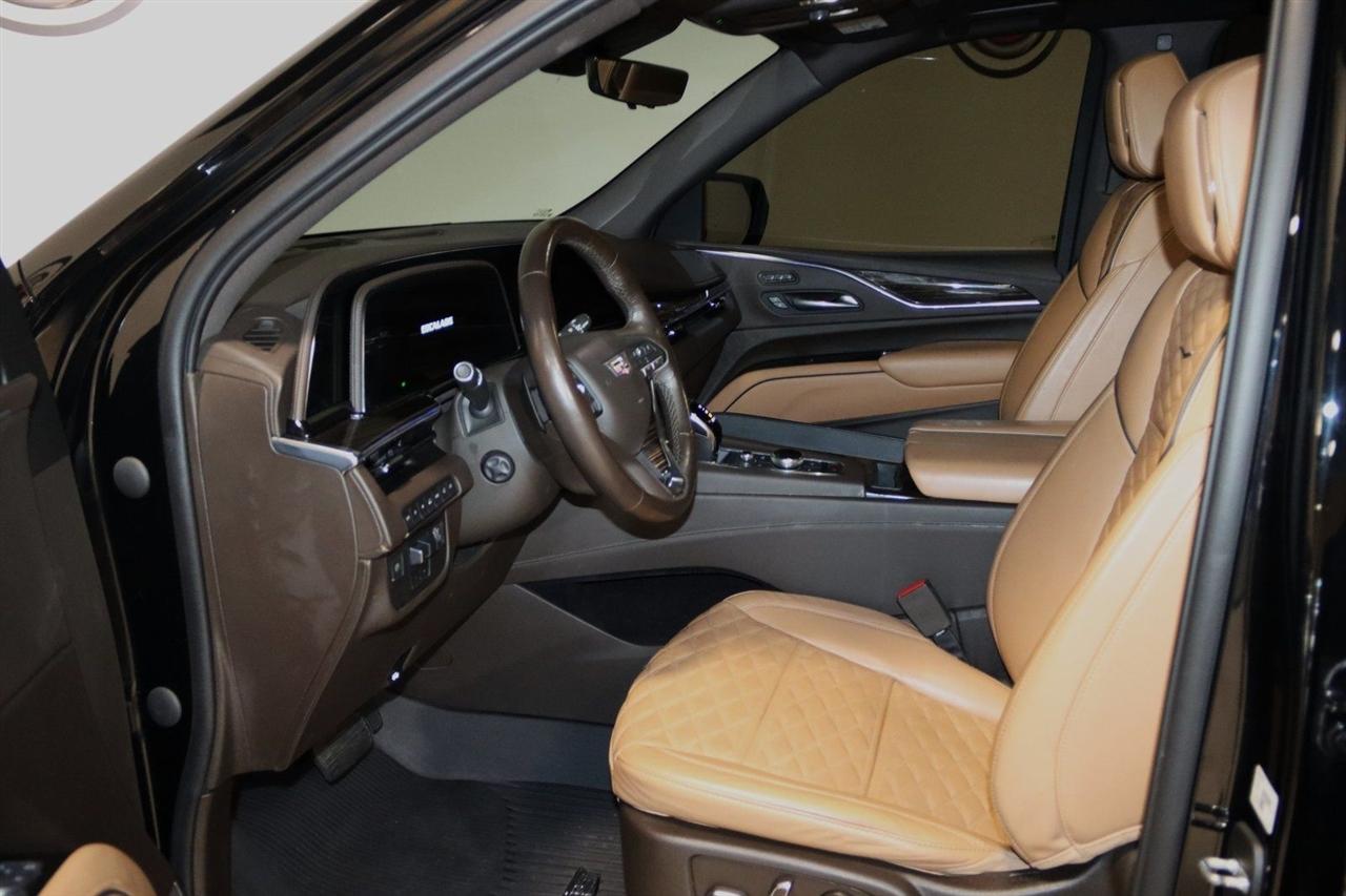 Navigation, Bluetooth, Back Up Camera, Panoramic Roof, 3rd Row, Heated Seats, Touch Screen, 16.9" Diagonal OLED Infotainment Screen, 19 Speakers, 2-Presets Memory For Driver Seat Adjuster, 3.23 Axle Ratio, 3rd row seats: split-bench, 4-Wheel Disc Brakes, 8-Way Power Driver Seat Adjuster, 8-Way Power Front Passenger Seat Adjuster, ABS brakes, Adaptive Cruise Control, Adaptive suspension, Air Conditioning, Air Ride Adaptive Suspension, AKG Studio 19-Speaker Audio System, Alloy wheels, AM/FM radio: SiriusXM with 360L, Apple CarPlay/Android Auto, Audio memory, Auto High-beam Headlights, Auto tilt-away steering wheel, Auto-dimming door mirrors, Auto-dimming Rear-View mirror, Automatic Seat Belt Tightening, Automatic Stop/Start, Automatic temperature control, Body-Color Door Handles, Brake assist, Bumpers: body-color, Compass, Delay-off headlights, Door Lock & Latch Shields, Driver door bin, Driver vanity mirror, Dual front impact airbags, Dual front side impact airbags, Electronic Limited-Slip Differential, Electronic Stability Control, Emergency communication system: OnStar and Cadillac connected services capable, Enhanced Automatic Emergency Braking, Enhanced Automatic Parking Assist, Four wheel independent suspension, Front anti-roll bar, Front Bucket Seats, Front Center Armrest w/Storage, Front dual zone A/C, Front reading lights, Fully automatic headlights, Garage door transmitter, Glass Breakage Sensor, Gloss Black Escalade Nameplate (LPO), HD Radio, Heads-Up Display, Heated & Ventilated Driver & Front Passenger Seats, Heated door mirrors, Heated Driver & Front Passenger Seats, Heated front seats, Heated rear seats, Heated steering wheel, Hitch Guidance w/Hitch View, Illuminated entry, Illuminating Front & Rear Sill Plates, Integrated Trailer Brake Controller, Leather Seating Surfaces w/Precision Perf Inserts, Leather steering wheel, Low tire pressure warning, Magnetic Ride Control Suspension, Memory seat, Navigation System, Not Equipped w/4-Way Driver & Fr Pass Pwr Lumbar, Not Equipped w/Steering Column Lock, Not Equipped w/Super Cruise, Occupant sensing airbag, Outside temperature display, Overhead airbag, Overhead console, Panic alarm, Passenger door bin, Passenger vanity mirror, Power door mirrors, Power driver seat, Power Liftgate, Power moonroof, Power Panoramic Tilt-Sliding Sunroof, Power passenger seat, Power steering, Power windows, Power-Retractable Assist Steps, Preferred Equipment Group 1SC, Radio data system, Radio: AM/FM/SiriusXM w/Navigation, Rain sensing wipers, Rear air conditioning, Rear anti-roll bar, Rear Camera Mirror, Rear Camera Mirror Washer, Rear Cross Traffic Alert, Rear reading lights, Rear window defroster, Rear window wiper, Reconfigurable Full-Color Head-Up Display, Remote keyless entry, Reverse Automatic Braking, Roof rack: rails only, Running Board Assist Steps, Security system, SiriusXM w/360L, Smart Trailer Integration Indicator, Soft Closing Front & Rear Doors, Speed control, Split folding rear seat, Spoiler, Start/Stop System Disable Button, Steering wheel memory, Steering wheel mounted audio controls, Super Cruise, Tachometer, Teen Driver, Telescoping steering wheel, Theft-Deterrent Alarm System, Tilt steering wheel, Touring Package, Traction control, Trailer Side Blind Zone Alert, Trip computer, Turn signal indicator mirrors, Variably intermittent wipers, Vehicle Inclination Sensor, Vehicle Interior Movement Sensor, Ventilated front seats, Voltmeter, Wheels: 22" 12-Spoke Polished Alloy, Wireless Apple CarPlay/Wireless Android Auto. Priced below KBB Fair Purchase Price!