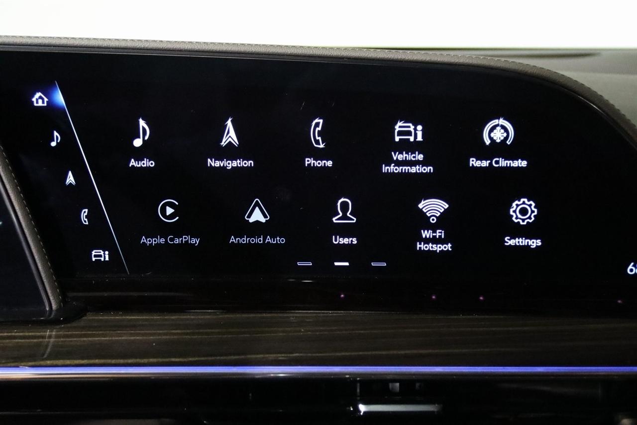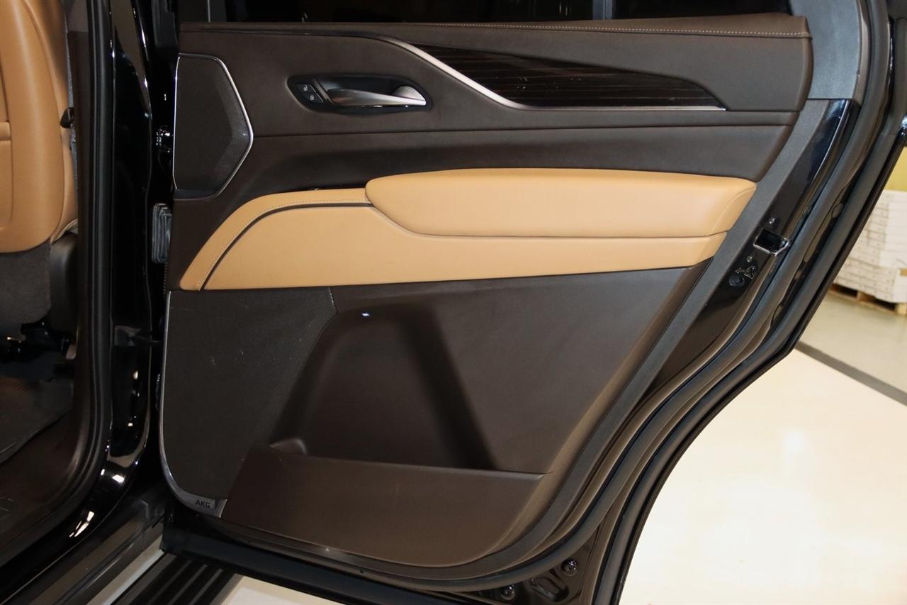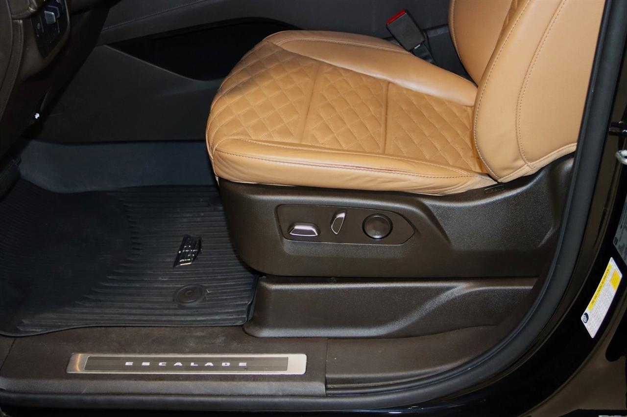 Navigation, Bluetooth, Back Up Camera, Panoramic Roof, 3rd Row, Heated Seats, Touch Screen, 16.9" Diagonal OLED Infotainment Screen, 19 Speakers, 2-Presets Memory For Driver Seat Adjuster, 3.23 Axle Ratio, 3rd row seats: split-bench, 4-Wheel Disc Brakes, 8-Way Power Driver Seat Adjuster, 8-Way Power Front Passenger Seat Adjuster, ABS brakes, Adaptive Cruise Control, Adaptive suspension, Air Conditioning, Air Ride Adaptive Suspension, AKG Studio 19-Speaker Audio System, Alloy wheels, AM/FM radio: SiriusXM with 360L, Apple CarPlay/Android Auto, Audio memory, Auto High-beam Headlights, Auto tilt-away steering wheel, Auto-dimming door mirrors, Auto-dimming Rear-View mirror, Automatic Seat Belt Tightening, Automatic Stop/Start, Automatic temperature control, Body-Color Door Handles, Brake assist, Bumpers: body-color, Compass, Delay-off headlights, Door Lock & Latch Shields, Driver door bin, Driver vanity mirror, Dual front impact airbags, Dual front side impact airbags, Electronic Limited-Slip Differential, Electronic Stability Control, Emergency communication system: OnStar and Cadillac connected services capable, Enhanced Automatic Emergency Braking, Enhanced Automatic Parking Assist, Four wheel independent suspension, Front anti-roll bar, Front Bucket Seats, Front Center Armrest w/Storage, Front dual zone A/C, Front reading lights, Fully automatic headlights, Garage door transmitter, Glass Breakage Sensor, Gloss Black Escalade Nameplate (LPO), HD Radio, Heads-Up Display, Heated & Ventilated Driver & Front Passenger Seats, Heated door mirrors, Heated Driver & Front Passenger Seats, Heated front seats, Heated rear seats, Heated steering wheel, Hitch Guidance w/Hitch View, Illuminated entry, Illuminating Front & Rear Sill Plates, Integrated Trailer Brake Controller, Leather Seating Surfaces w/Precision Perf Inserts, Leather steering wheel, Low tire pressure warning, Magnetic Ride Control Suspension, Memory seat, Navigation System, Not Equipped w/4-Way Driver & Fr Pass Pwr Lumbar, Not Equipped w/Steering Column Lock, Not Equipped w/Super Cruise, Occupant sensing airbag, Outside temperature display, Overhead airbag, Overhead console, Panic alarm, Passenger door bin, Passenger vanity mirror, Power door mirrors, Power driver seat, Power Liftgate, Power moonroof, Power Panoramic Tilt-Sliding Sunroof, Power passenger seat, Power steering, Power windows, Power-Retractable Assist Steps, Preferred Equipment Group 1SC, Radio data system, Radio: AM/FM/SiriusXM w/Navigation, Rain sensing wipers, Rear air conditioning, Rear anti-roll bar, Rear Camera Mirror, Rear Camera Mirror Washer, Rear Cross Traffic Alert, Rear reading lights, Rear window defroster, Rear window wiper, Reconfigurable Full-Color Head-Up Display, Remote keyless entry, Reverse Automatic Braking, Roof rack: rails only, Running Board Assist Steps, Security system, SiriusXM w/360L, Smart Trailer Integration Indicator, Soft Closing Front & Rear Doors, Speed control, Split folding rear seat, Spoiler, Start/Stop System Disable Button, Steering wheel memory, Steering wheel mounted audio controls, Super Cruise, Tachometer, Teen Driver, Telescoping steering wheel, Theft-Deterrent Alarm System, Tilt steering wheel, Touring Package, Traction control, Trailer Side Blind Zone Alert, Trip computer, Turn signal indicator mirrors, Variably intermittent wipers, Vehicle Inclination Sensor, Vehicle Interior Movement Sensor, Ventilated front seats, Voltmeter, Wheels: 22" 12-Spoke Polished Alloy, Wireless Apple CarPlay/Wireless Android Auto.