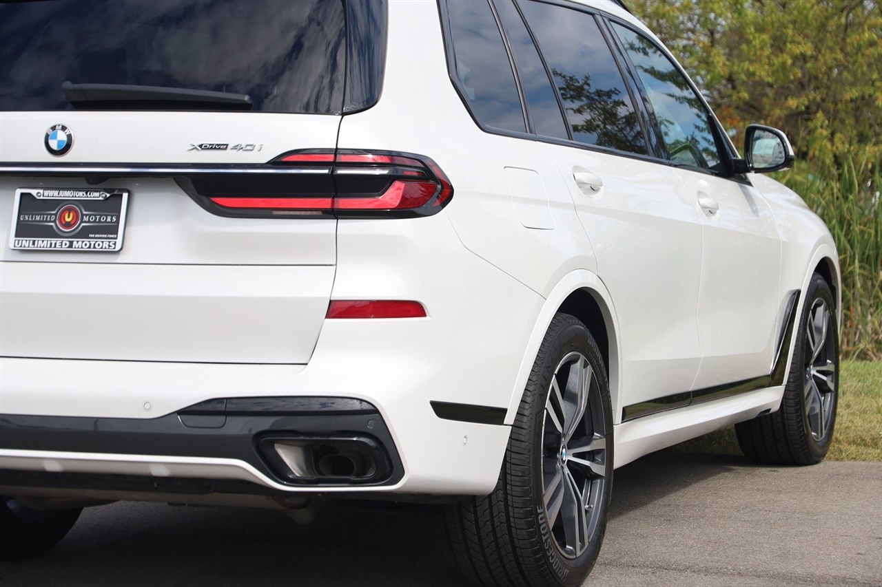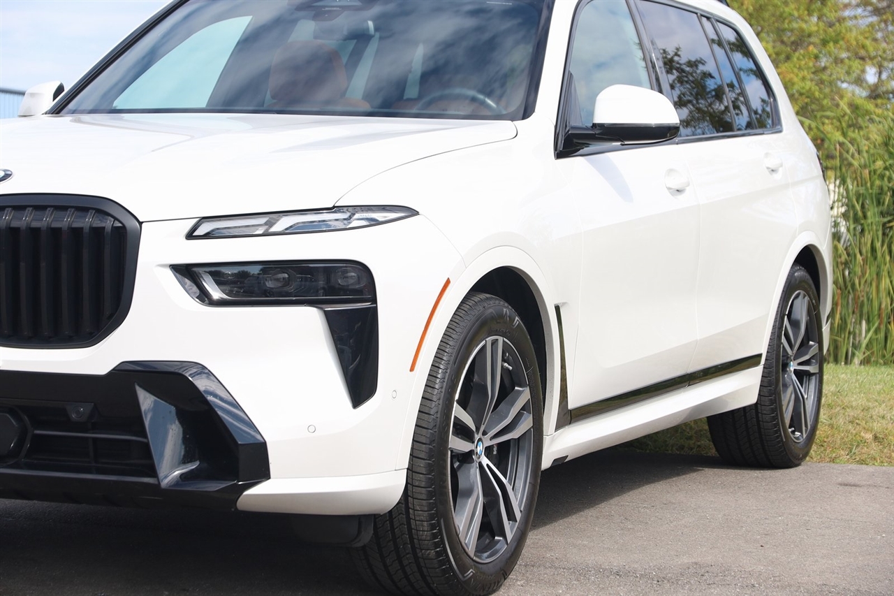 Navigation, Back Up Camera, Bluetooth, Panoramic Roof, Heated Seats, Touch Screen, Heated Steering Wheel, Blind Spot, Cooled Heats, Apple Play, X7 xDrive40i, 4D Sport Utility, 3.0L I6 DOHC 24V, 8-Speed Automatic Sport, AWD, Mineral White Metallic, Cognac Cognac Sensafin, 5-Zone Automatic Climate Control, Aerodynamic Kit, Anthracite Alcantara Headliner, Climate Comfort Package, Connected Package Pro, Drive Recorder, Extended Shadowline Trim, Front & Rear Heated Seats, Front Ventilated Seats, Gesture Control, harman/kardon Surround Sound System, Illuminated Kidney Grille, M Sport Brakes w/Black Calipers, M Sport Exhaust System, M Sport Package, M Sport Package (337), M Sport Package Pro, M Sport Professional Package, M Steering Wheel, Navigation System, Navigation system: BMW Maps Navigation, Parking Assistance Package, Parking Assistant Professional, Premium Package, Rear Electric Side Window Shades, Shadowline Exterior Trim, Soft-Close Automatic Doors, Surround View w/3D View, Wheels: 21" x 9.5" Double-Spoke Bi-Color Orbit Grey, Without Lines Designation Outside.