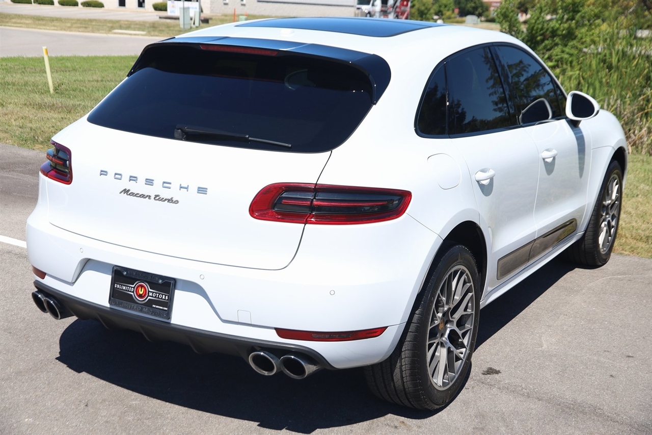 Navigation, Back Up Camera, Bluetooth, Panoramic Roof, Heated Seats, Touch Screen, Blind Spot, Cooled Heats, Macan Turbo, 4D Sport Utility, 3.6L V6, 7-Speed Porsche Doppelkupplung (PDK), AWD, White, Black Leather, Navigation System.