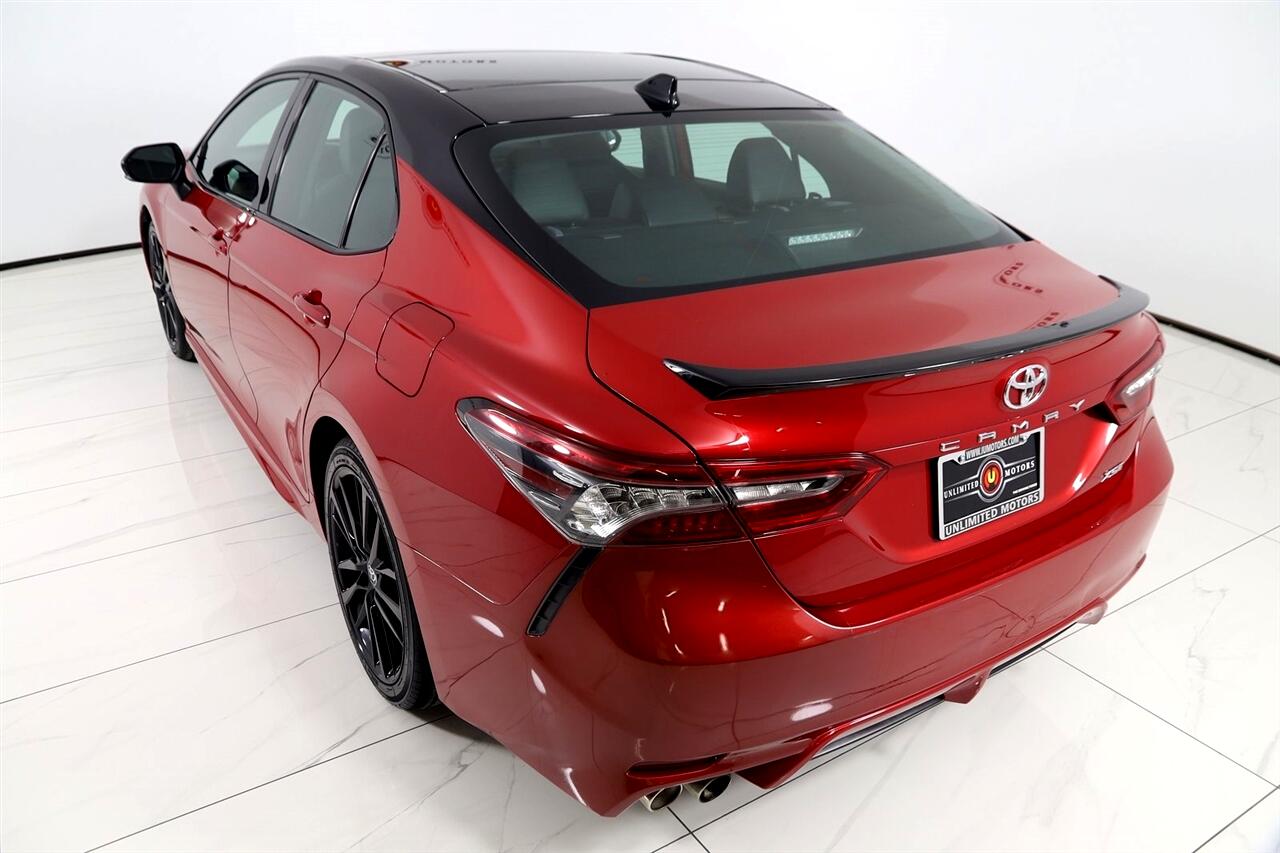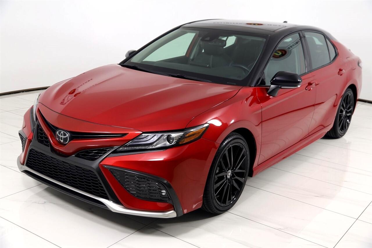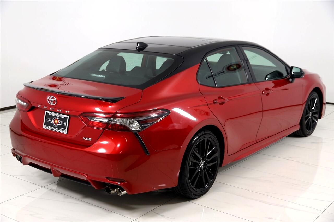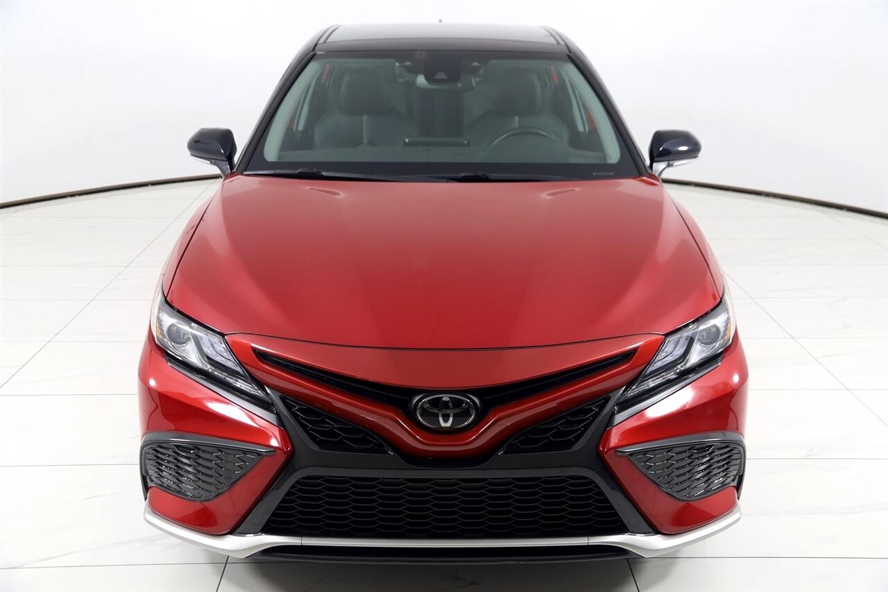 Navigation, Back Up Camera, Bluetooth, Panoramic Roof, Heated Seats, Touch Screen, Blind Spot, Camry XSE, 4D Sedan, 2.5L I4 DOHC 16V, 8-Speed Automatic, FWD, Supersonic Red, Black Leather. CARFAX One-Owner. Priced below KBB Fair Purchase Price! Odometer is 19997 miles below market average! 27/38 City/Highway MPG