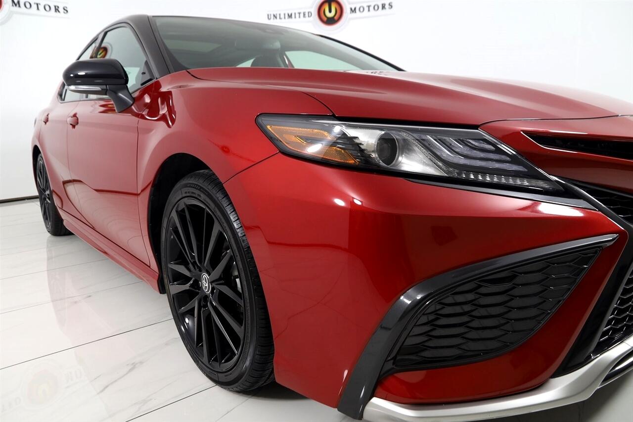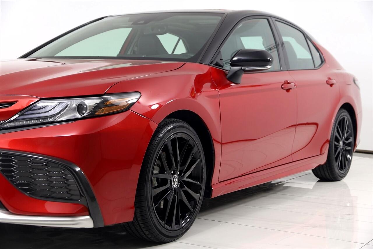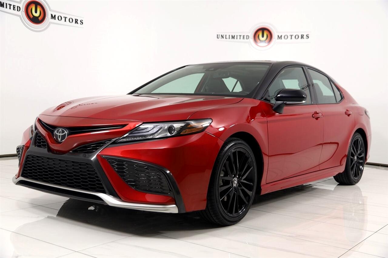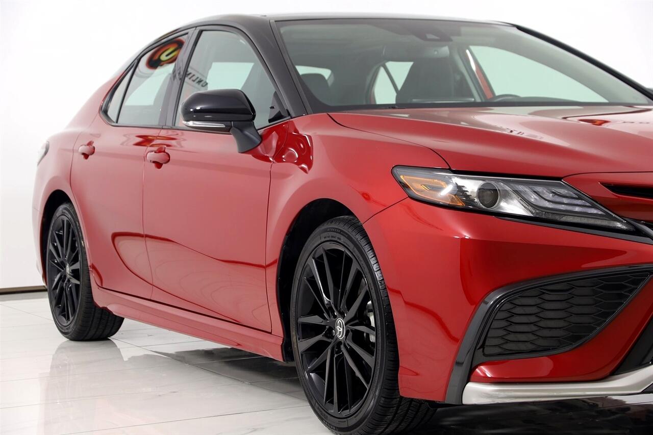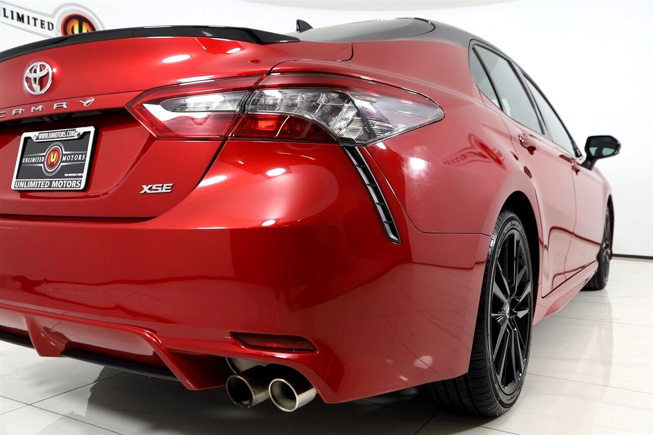 Navigation, Back Up Camera, Bluetooth, Panoramic Roof, Heated Seats, Touch Screen, Blind Spot, Camry XSE, 4D Sedan, 2.5L I4 DOHC 16V, 8-Speed Automatic, FWD, Supersonic Red, Black Leather. CARFAX One-Owner. Priced below KBB Fair Purchase Price! Odometer is 19997 miles below market average! 27/38 City/Highway MPG