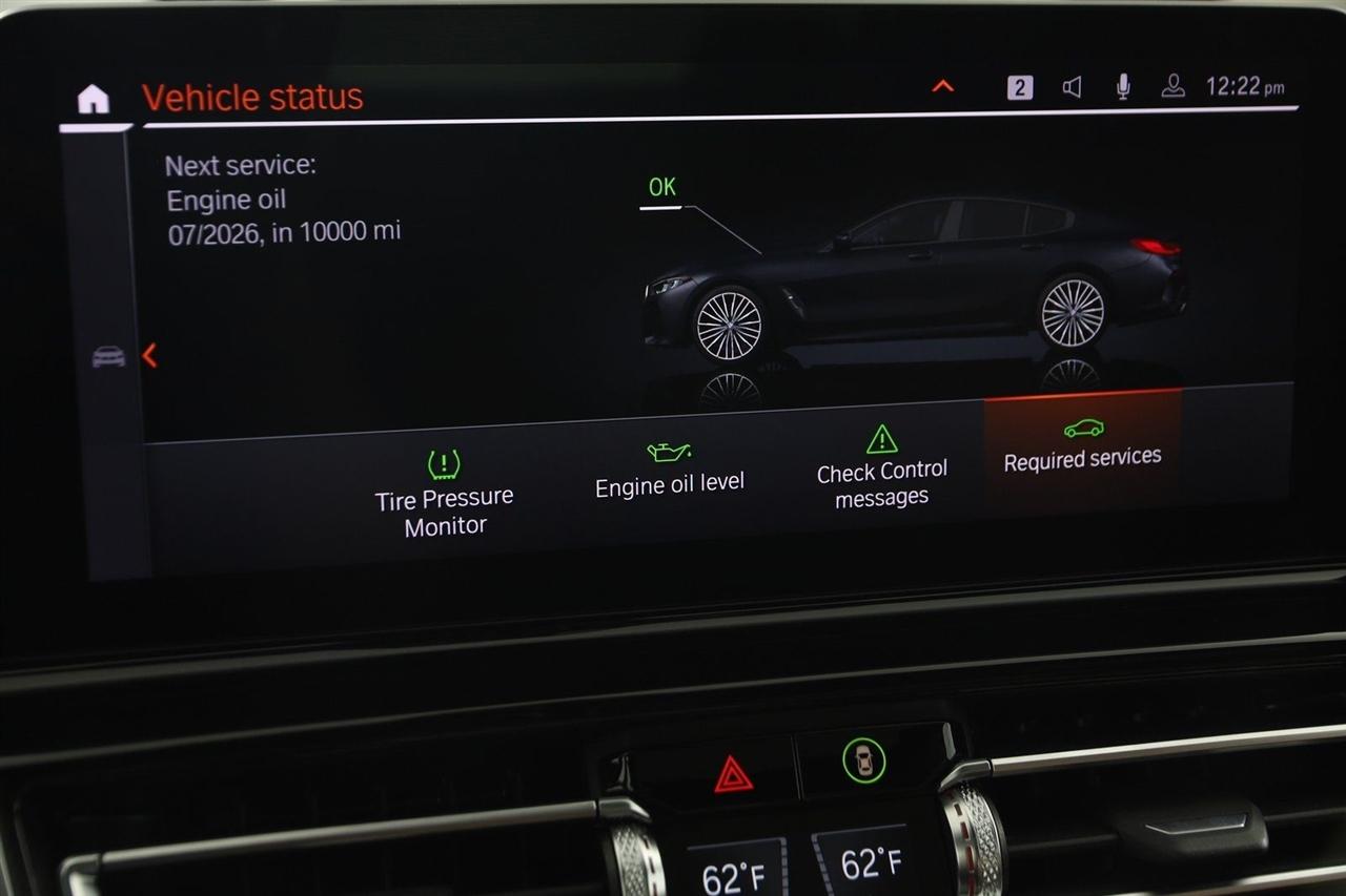 Navigation, Back Up Camera, Bluetooth, Panoramic Roof, Heated Seats, Touch Screen, Heated Steering Wheel, Rear Heated Seats, Blind Spot, Rear Bucket Seats, Heads Up Display, Power Hatch, Vented Seats, Apple Play, AWD, 8 Series 840, 4D Sedan, 3.0L I6 DOHC 24V TwinPower Turbo, 8-Speed Automatic Sport, AWD, Carbon Black Metallic, Black Leather, Active Blind Spot Detection, Active Driving Assistant, Active Park Distance Control, Comfort Seating Package, Connected Package Pro, Driving Assistance Package, Extended Shadowline Trim, Front & Rear Heated Seats, Front Ventilated Seats, M Shadowline Lights, M Sport Brakes w/Black Calipers, M Sport Package Pro, M Sport Professional Package, Navigation System, Parking Assistant Plus, Rear-View Camera, Surround View w/3D View.