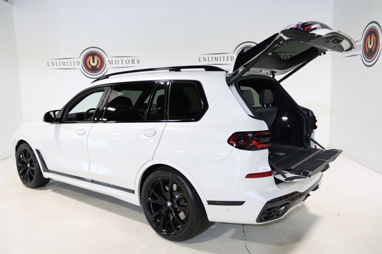 Navigation, Bluetooth, Back Up Camera, Panoramic Roof, 3rd Row, Heated Seats, Touch Screen, 16 Speakers, 3.15 Axle Ratio, 3rd row seats: split-bench, 4-Wheel Disc Brakes, ABS brakes, Adaptive suspension, Air Conditioning, Alloy wheels, AM/FM radio: SiriusXM with 360L, AM/FM Stereo, Apple CarPlay & Android Auto Compatibility, Apple CarPlay Compatibility, Auto High-beam Headlights, Auto tilt-away steering wheel, Auto-dimming door mirrors, Auto-dimming Rear-View mirror, Auto-leveling suspension, Automatic temperature control, BMW Assist eCall, BMW TeleServices, Brake assist, Bumpers: body-color, Compass, Connected Package Pro, ConnectedDrive Services, Delay-off headlights, Door auto-latch, Driver door bin, Driver vanity mirror, Dual front impact airbags, Dual front side impact airbags, Electronic Stability Control, Emergency communication system: BMW Assist eCall, Extended Merino Leather Upholstery, Exterior Parking Camera Rear, Four wheel independent suspension, Front anti-roll bar, Front Bucket Seats, Front Center Armrest, Front dual zone A/C, Front reading lights, Fully automatic headlights, Garage door transmitter, Genuine wood console insert, Genuine wood dashboard insert, Genuine wood door panel insert, Gesture Control, harman/kardon Surround Sound System, harman/kardon® Speakers, Head restraints memory, Heads-Up Display, Heated door mirrors, Heated front seats, Heated Multi-Contour Seats, Heated steering wheel, Illuminated entry, Knee airbag, Leather steering wheel, Live Cockpit Pro, Low tire pressure warning, Memory seat, Navigation System, Navigation system: BMW Maps Navigation, Occupant sensing airbag, Outside temperature display, Overhead airbag, Panic alarm, Passenger door bin, Passenger vanity mirror, Personal eSIM 5G, Power adjustable front head restraints, Power door mirrors, Power driver seat, Power Front Seats, Power moonroof: Panorama, Power passenger seat, Power steering, Power windows, Radio data system, Rain sensing wipers, Rear air conditioning, Rear anti-roll bar, Rear dual zone A/C, Rear reading lights, Rear seat center armrest, Rear window defroster, Rear window wiper, Reclining 3rd row seat, Remote keyless entry, Security system, SiriusXM w/360L & 1 Year Platinum Plan Subscription, Speed control, Speed-sensing steering, Speed-Sensitive Wipers, Split folding rear seat, Spoiler, Sport steering wheel, Steering wheel memory, Steering wheel mounted audio controls, Tachometer, Telescoping steering wheel, Tilt steering wheel, Traction control, Trip computer, Turn signal indicator mirrors, Variably intermittent wipers, Wheels: 22" x 9.5" Fr & 22" x 10.5" Rr Double-Spoke, Wireless Charging Device. Clean CARFAX.