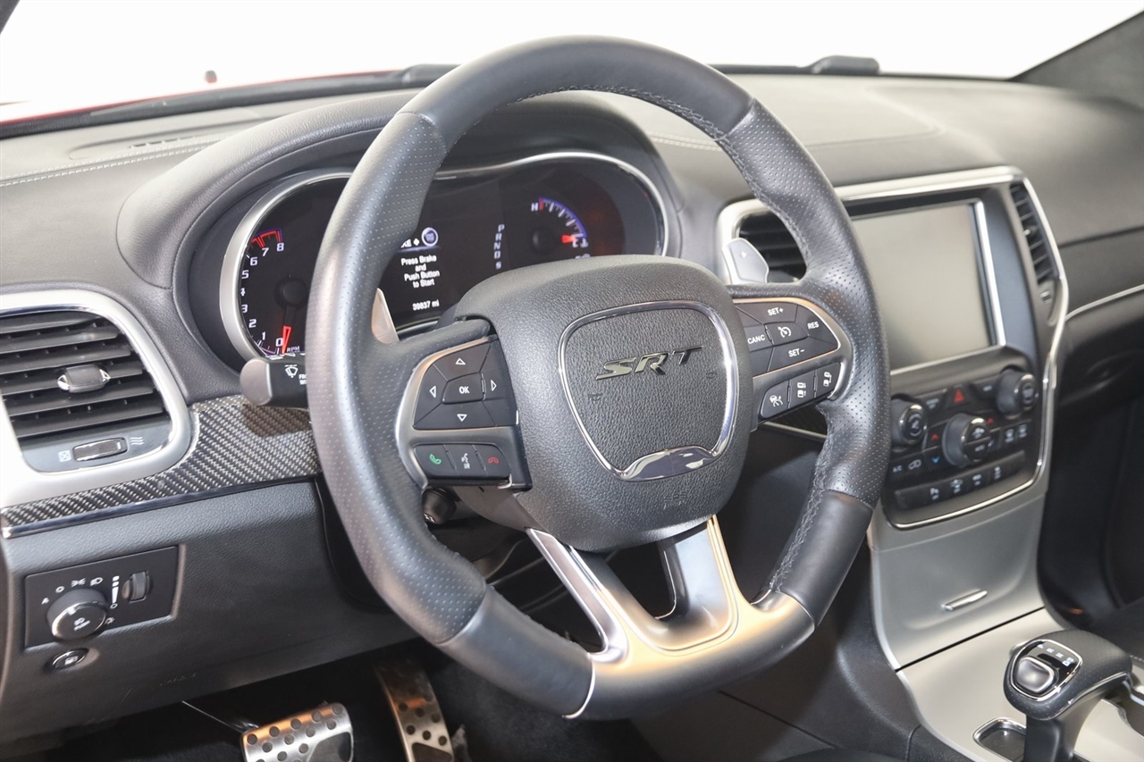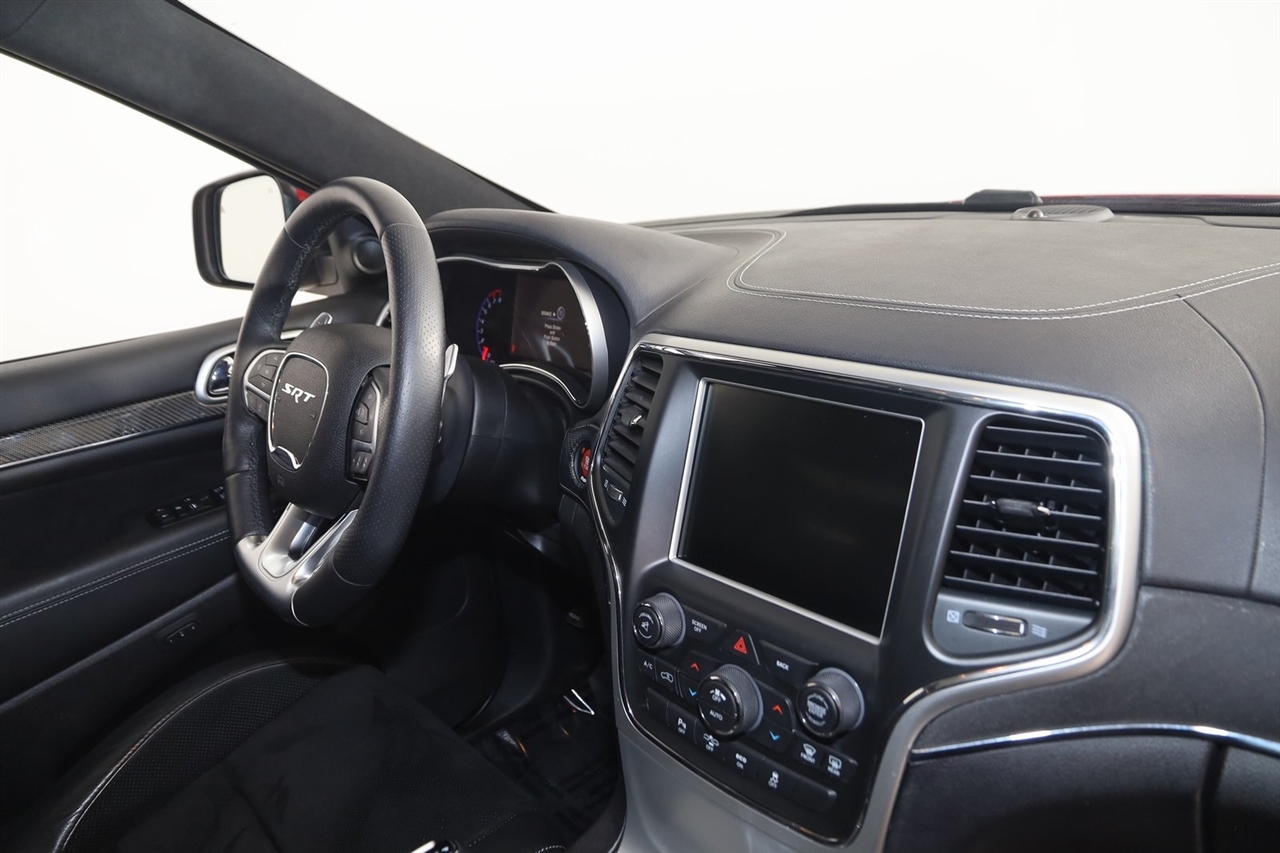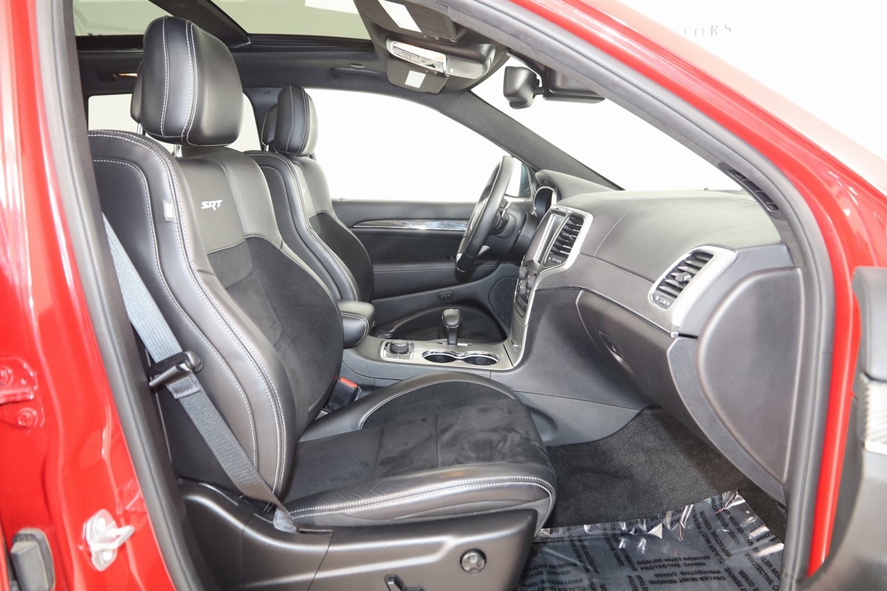 Navigation, Back Up Camera, Bluetooth, Panoramic Roof, Heated Seats, Touch Screen, Cooled Heats, Blind Spot, Heated Steering Wheel, Grand Cherokee SRT, 4D Sport Utility, SRT HEMI 6.4L V8 MDS, 8-Speed Automatic, 4WD, Redline 2 Coat Pearl, Black Leather, Navigation System, Quick Order Package 27L. Clean CARFAX. Odometer is 65548 miles below market average!