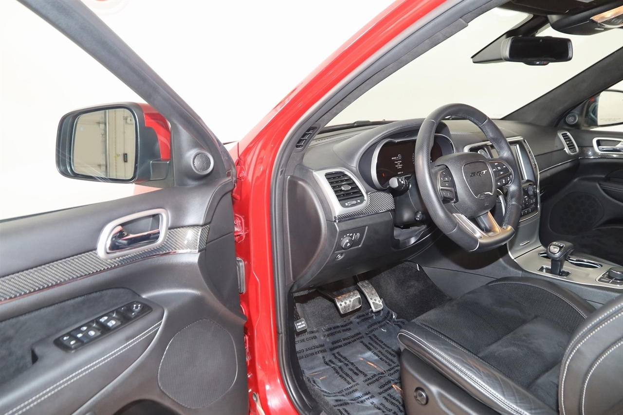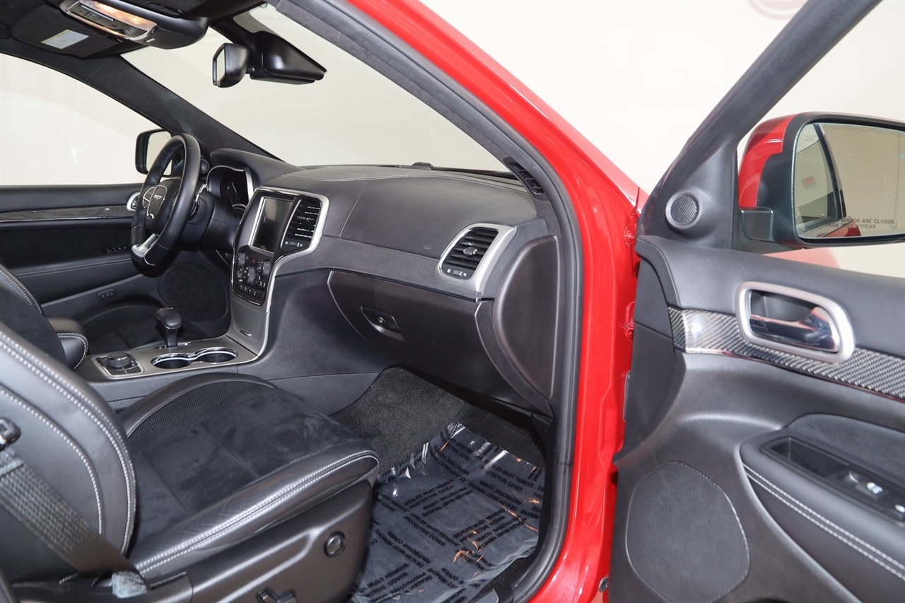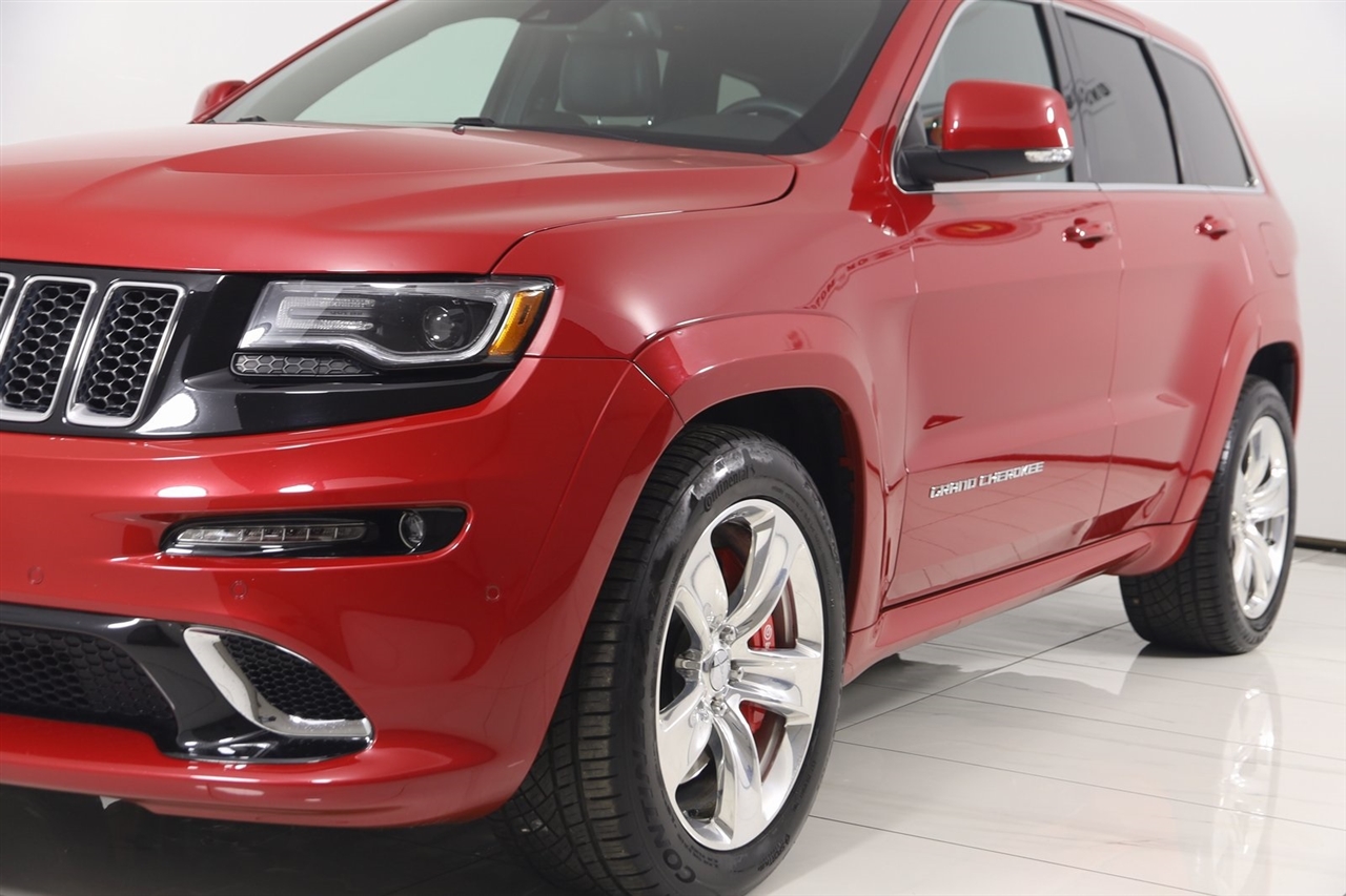 Navigation, Back Up Camera, Bluetooth, Panoramic Roof, Heated Seats, Touch Screen, Cooled Heats, Blind Spot, Heated Steering Wheel, Grand Cherokee SRT, 4D Sport Utility, SRT HEMI 6.4L V8 MDS, 8-Speed Automatic, 4WD, Redline 2 Coat Pearl, Black Leather, Navigation System, Quick Order Package 27L. Clean CARFAX. Odometer is 65548 miles below market average!