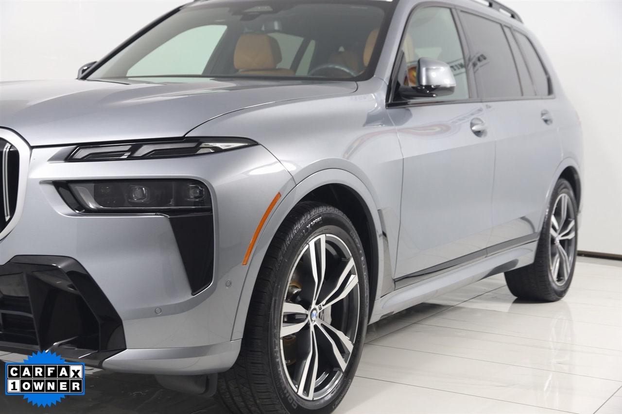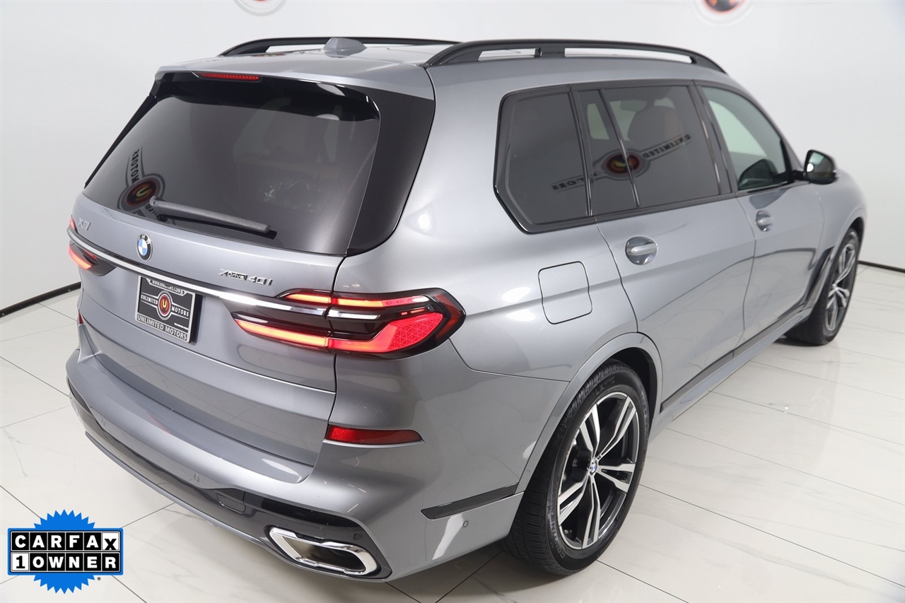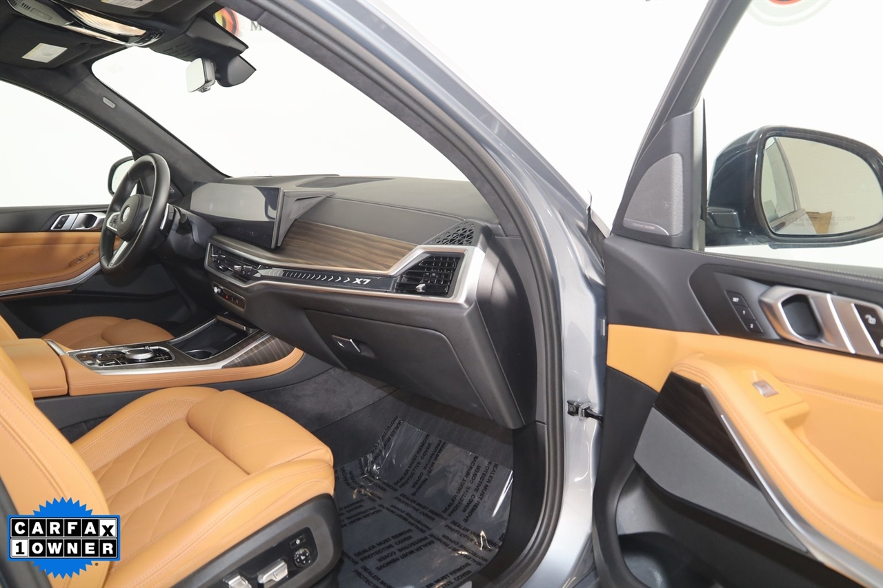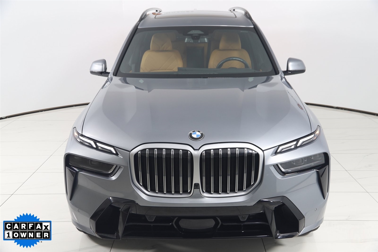 4x4, AWD, Back Up Camera, Bluetooth, Heated Seats, Navigation/GPS, Push Button Start, Panoramic Roof, and much more ..., Touch Screen, X7 xDrive40i, 4D Sport Utility, 3.0L I6 DOHC 24V, 8-Speed Automatic Sport, AWD, Skyscraper Gray Metallic, Cognac Cognac Sensafin, Aerodynamic Kit, Anthracite Alcantara Headliner, Gesture Control, harman/kardon Surround Sound System, M Sport Package, M Sport Package (337), M Steering Wheel, Navigation System, Navigation system: BMW Maps Navigation, Premium Package, Rear Electric Side Window Shades, Shadowline Exterior Trim, Soft-Close Automatic Doors, Wheels: 21" x 9.5" Double-Spoke Bi-Color Orbit Grey, Without Lines Designation Outside. Odometer is 878 miles below market average!
