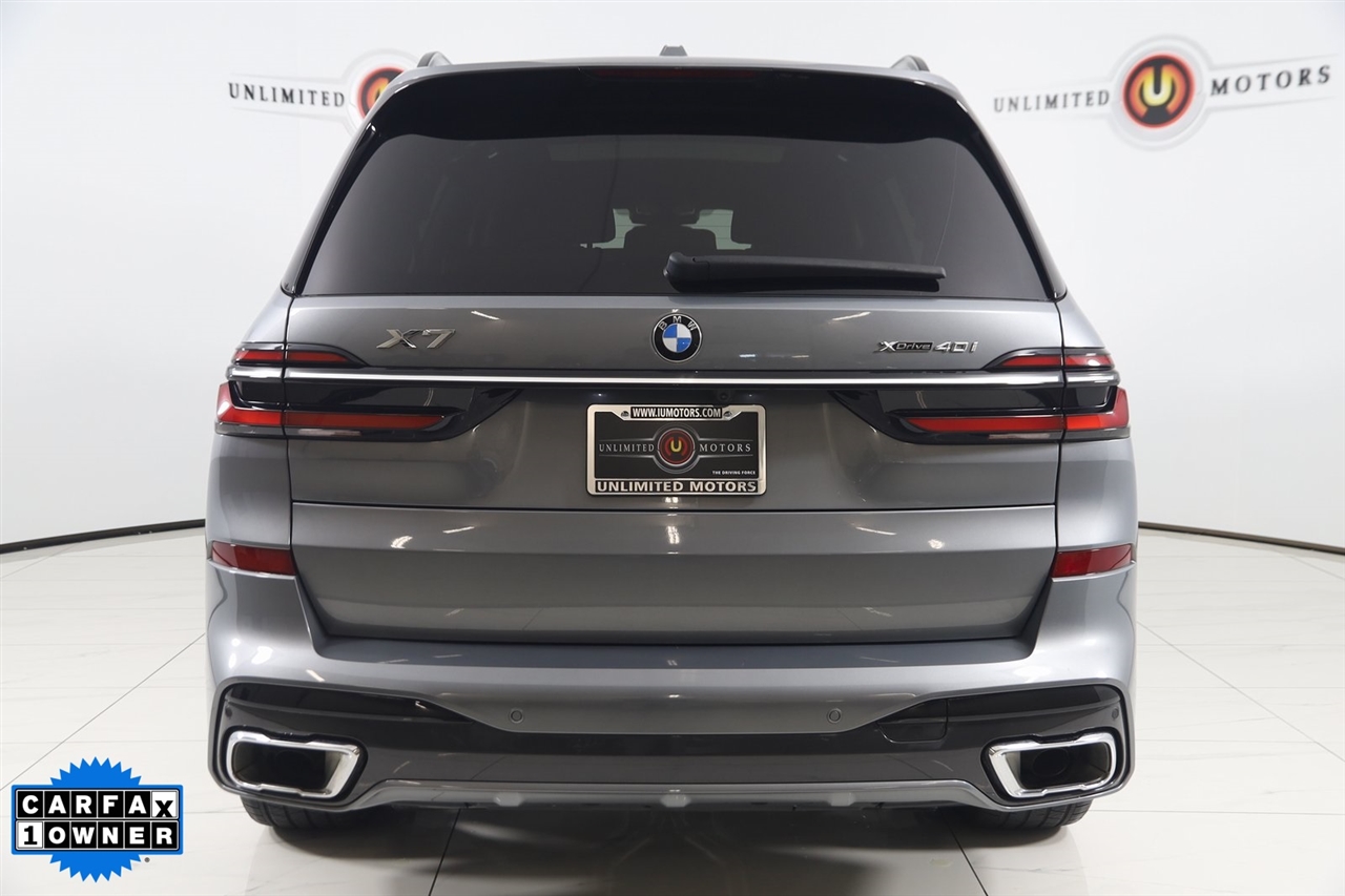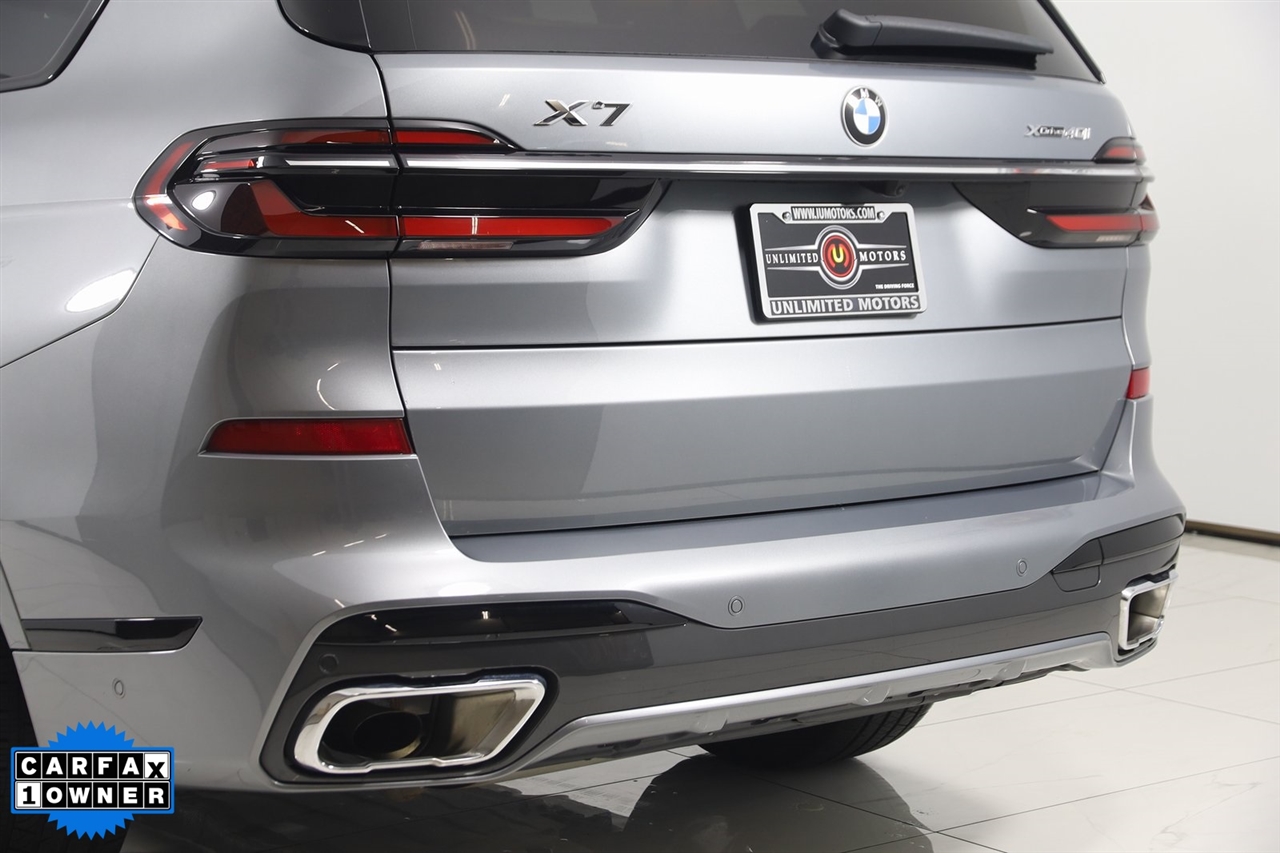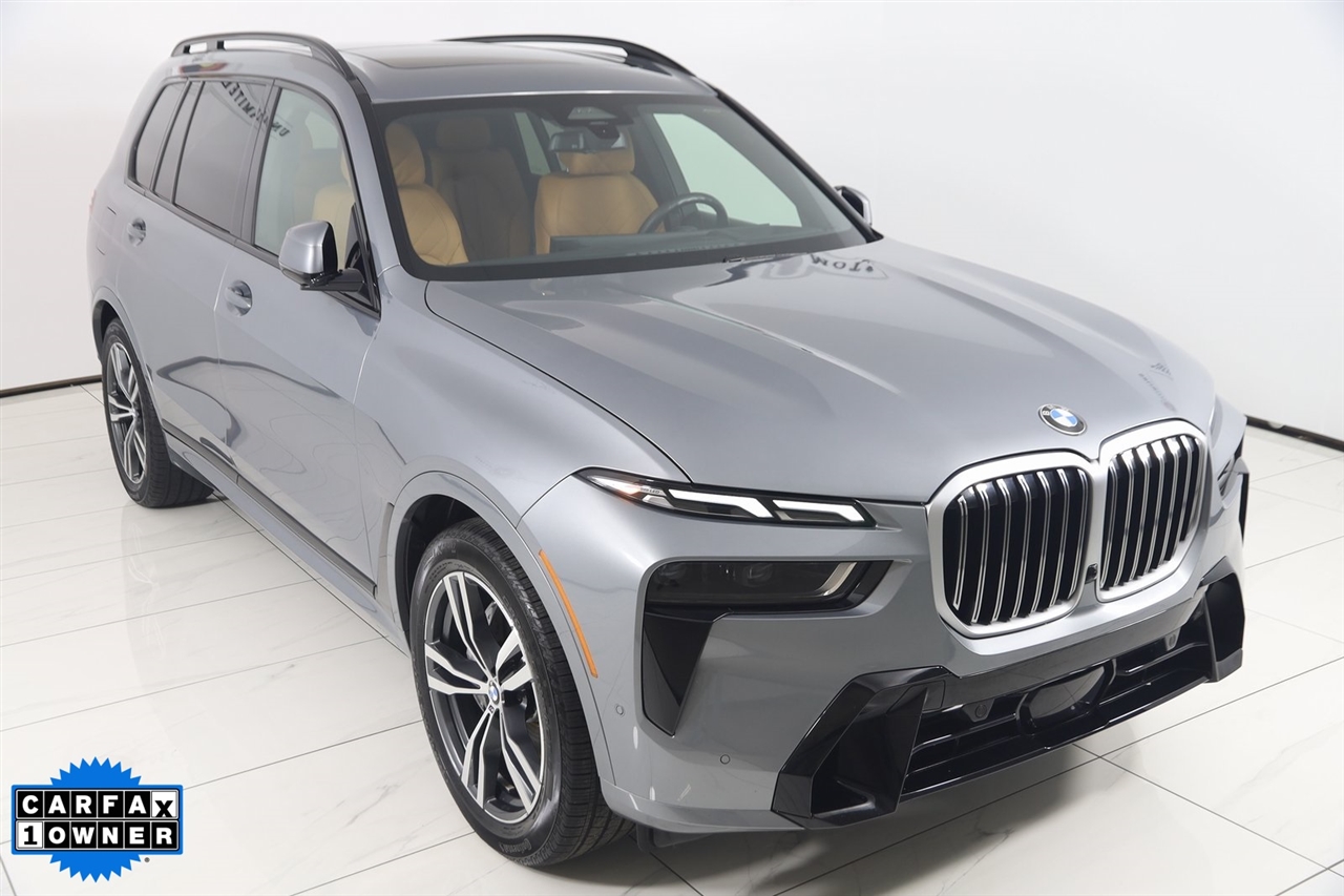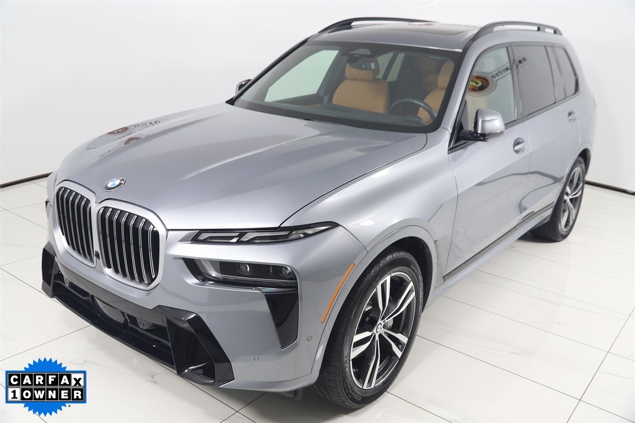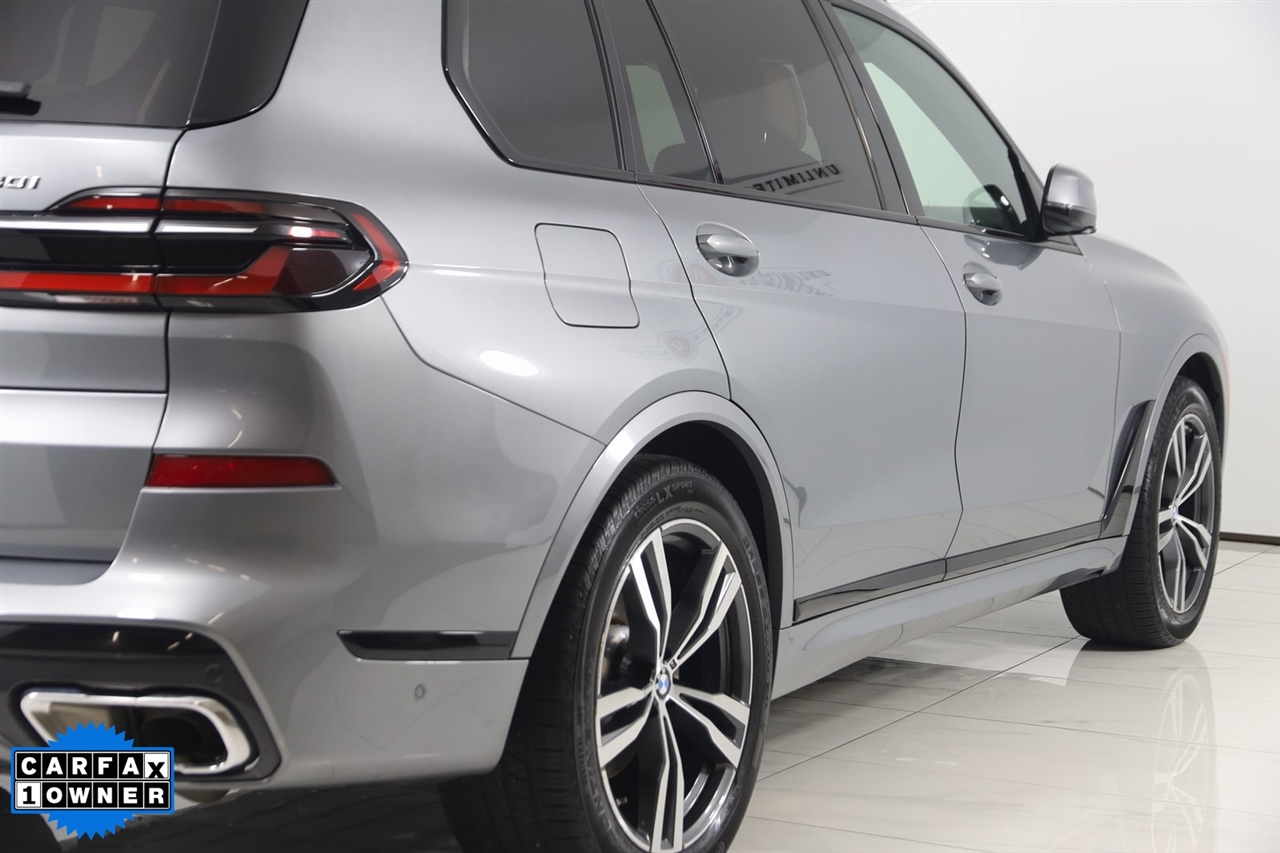 4x4, AWD, Back Up Camera, Bluetooth, Heated Seats, Navigation/GPS, Push Button Start, Panoramic Roof, and much more ..., Touch Screen, X7 xDrive40i, 4D Sport Utility, 3.0L I6 DOHC 24V, 8-Speed Automatic Sport, AWD, Skyscraper Gray Metallic, Cognac Cognac Sensafin, Aerodynamic Kit, Anthracite Alcantara Headliner, Gesture Control, harman/kardon Surround Sound System, M Sport Package, M Sport Package (337), M Steering Wheel, Navigation System, Navigation system: BMW Maps Navigation, Premium Package, Rear Electric Side Window Shades, Shadowline Exterior Trim, Soft-Close Automatic Doors, Wheels: 21" x 9.5" Double-Spoke Bi-Color Orbit Grey, Without Lines Designation Outside. Odometer is 878 miles below market average!