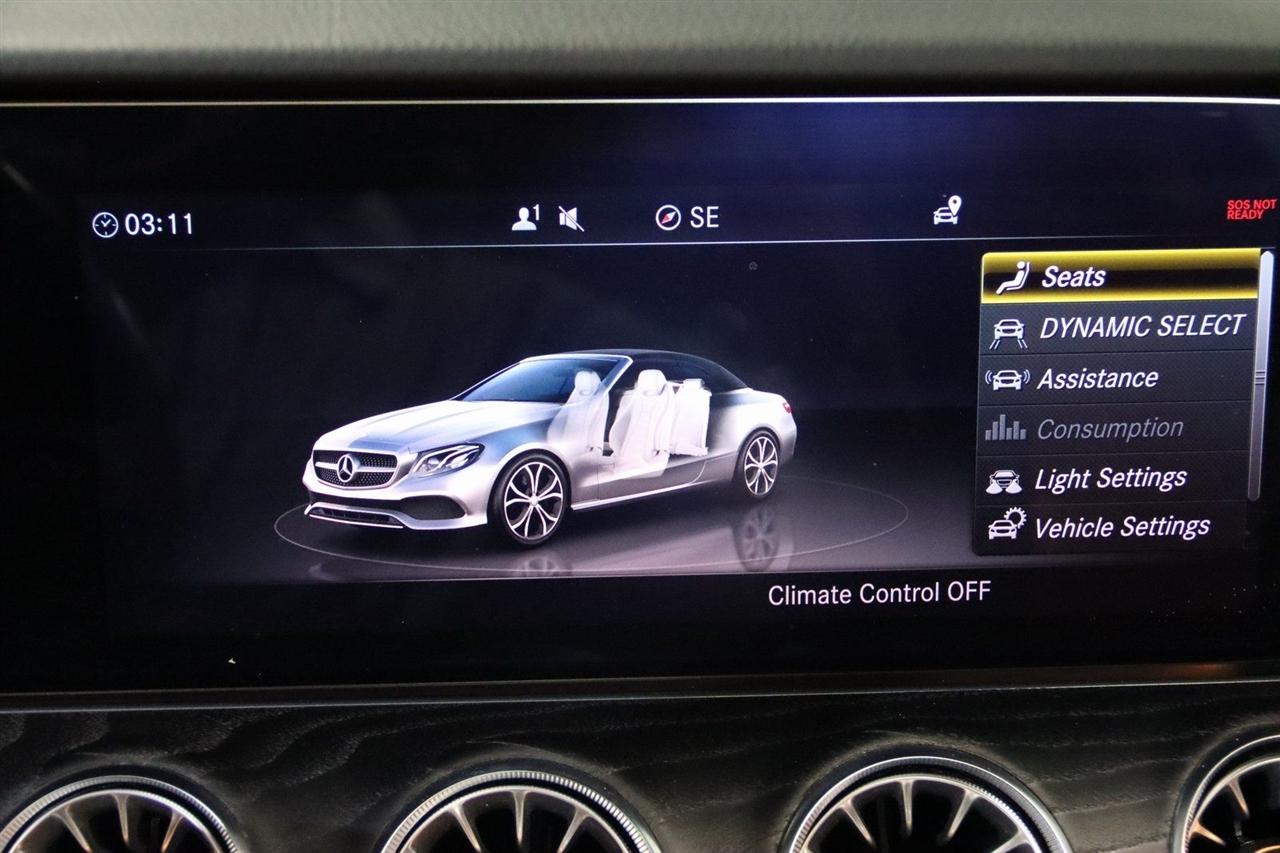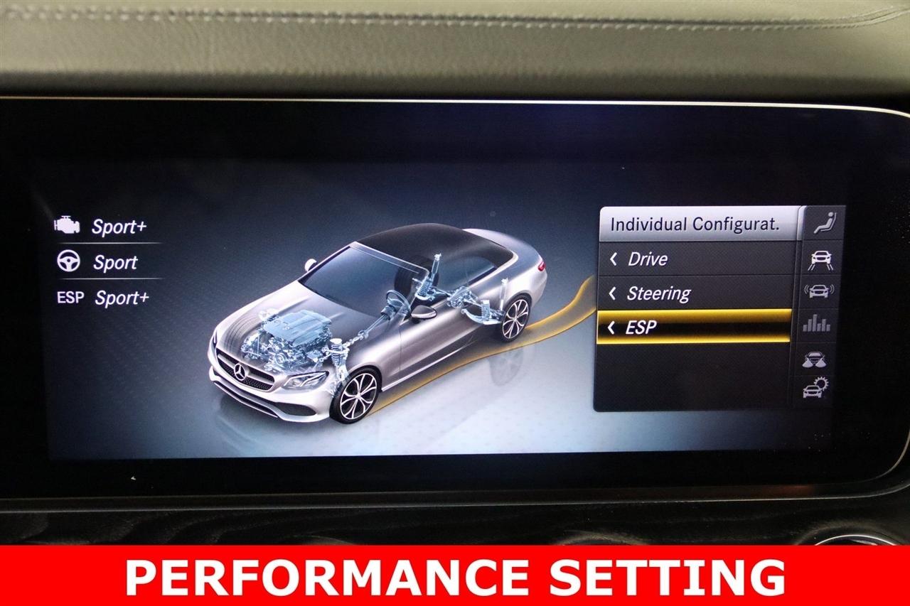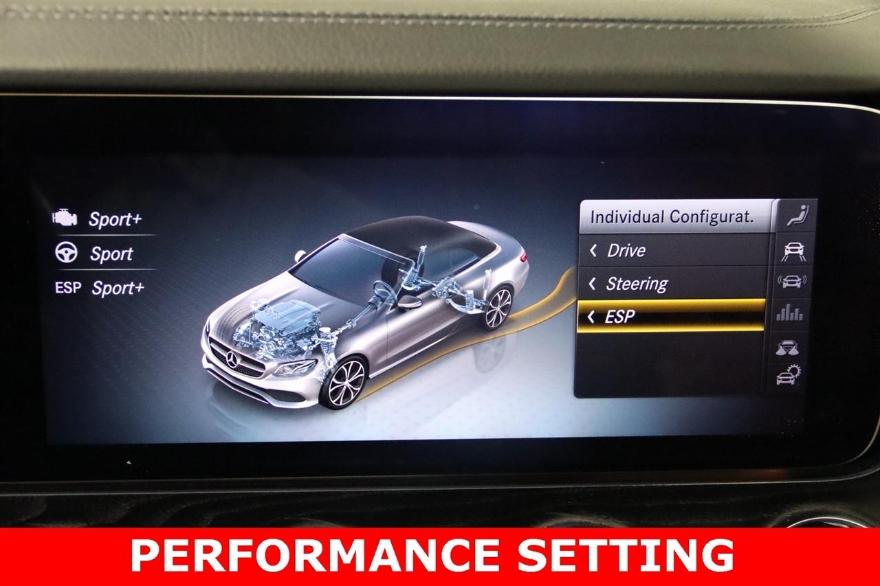 Navigation, Bluetooth, Back Up Camera, Soft Top, Heated Seats, Touch Screen, 13 Speakers, 4-Way Lumbar Support, 4-Wheel Disc Brakes, ABS brakes, Active Parking Assist, Air Conditioning, Alloy wheels, AM/FM radio: SiriusXM, AMG® Bodystyling, AMG® Floor Mats, AMG® Line, Android Auto®, Anti-whiplash front head restraints, Apple CarPlay®, Apple CarPlay®/Android Auto®, Auto tilt-away steering wheel, Auto-dimming door mirrors, Auto-dimming Rear-View mirror, Automatic temperature control, Black SoftTop, Brake assist, Bumpers: body-color, Burmester® Surround Sound System, Center Console in Light Brown Sen Wood, Convertible roof lining, Convertible roof wind blocker, Delay-off headlights, Driver door bin, Driver vanity mirror, Dual front impact airbags, Dual front side impact airbags, DVD-Audio, Electronic Stability Control, Emergency communication system: Mercedes me connect, Extended Mobility Tires, Exterior Parking Camera Rear, Four wheel independent suspension, Front anti-roll bar, Front Bucket Seats, Front Center Armrest, Front dual zone A/C, Front reading lights, Fully automatic headlights, Garage door transmitter: Homelink, Genuine wood console insert, Genuine wood dashboard insert, Genuine wood door panel insert, Glass rear window, Head restraints memory, Heated door mirrors, Heated Front Seats, Heated front seats, Illuminated entry, Integrated roll-over protection, Knee airbag, Leather Shift Knob, Leather Upholstery, Low tire pressure warning, Memory seat, Navigation System, Night Package, Occupant sensing airbag, Outside temperature display, Overhead airbag, Overhead console, Panic alarm, Parking Assistance Package, Passenger door bin, Passenger vanity mirror, Power adjustable front head restraints, Power convertible roof, Power door mirrors, Power driver seat, Power Front Seats w/Memory, Power passenger seat, Power steering, Power windows, Radio data system, Radio: COMAND® Navigation, Rain sensing wipers, Rear anti-roll bar, Rear side impact airbag, Rear window defroster, Remote keyless entry, Security system, SiriusXM Radio, Smartphone Integration, Speed control, Speed-sensing steering, Split folding rear seat, Steering wheel memory, Steering wheel mounted audio controls, Surround View Camera System, Tachometer, Telescoping steering wheel, Tilt steering wheel, Traction control, Trip computer, Turn signal indicator mirrors, Variably intermittent wipers, Weather band radio, Wheels: 18" Twin 5-Spoke. Clean CARFAX. 20/27 City/Highway MPG