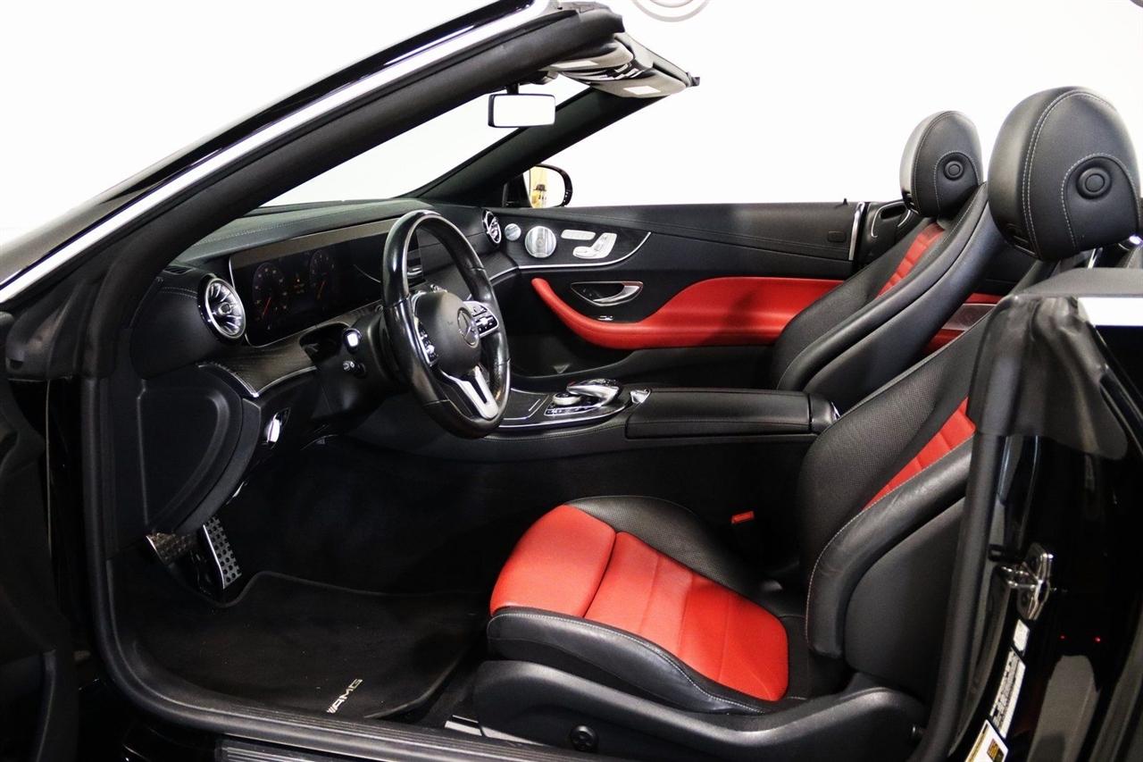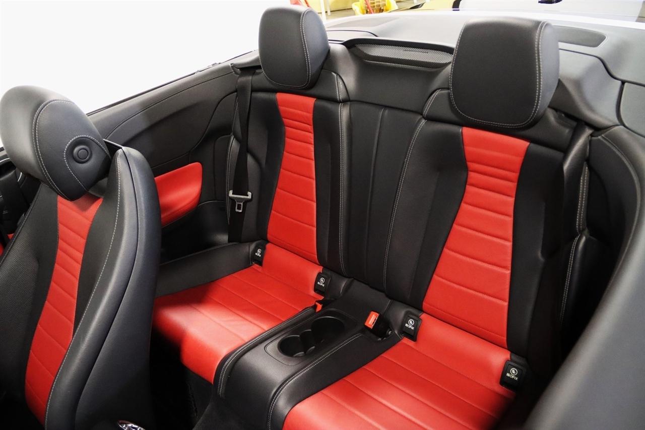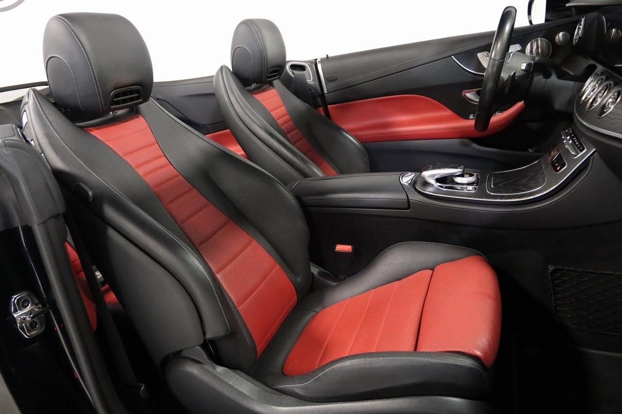 Navigation, Bluetooth, Back Up Camera, Soft Top, Heated Seats, Touch Screen, 13 Speakers, 4-Way Lumbar Support, 4-Wheel Disc Brakes, ABS brakes, Active Parking Assist, Air Conditioning, Alloy wheels, AM/FM radio: SiriusXM, AMG® Bodystyling, AMG® Floor Mats, AMG® Line, Android Auto®, Anti-whiplash front head restraints, Apple CarPlay®, Apple CarPlay®/Android Auto®, Auto tilt-away steering wheel, Auto-dimming door mirrors, Auto-dimming Rear-View mirror, Automatic temperature control, Black SoftTop, Brake assist, Bumpers: body-color, Burmester® Surround Sound System, Center Console in Light Brown Sen Wood, Convertible roof lining, Convertible roof wind blocker, Delay-off headlights, Driver door bin, Driver vanity mirror, Dual front impact airbags, Dual front side impact airbags, DVD-Audio, Electronic Stability Control, Emergency communication system: Mercedes me connect, Extended Mobility Tires, Exterior Parking Camera Rear, Four wheel independent suspension, Front anti-roll bar, Front Bucket Seats, Front Center Armrest, Front dual zone A/C, Front reading lights, Fully automatic headlights, Garage door transmitter: Homelink, Genuine wood console insert, Genuine wood dashboard insert, Genuine wood door panel insert, Glass rear window, Head restraints memory, Heated door mirrors, Heated Front Seats, Heated front seats, Illuminated entry, Integrated roll-over protection, Knee airbag, Leather Shift Knob, Leather Upholstery, Low tire pressure warning, Memory seat, Navigation System, Night Package, Occupant sensing airbag, Outside temperature display, Overhead airbag, Overhead console, Panic alarm, Parking Assistance Package, Passenger door bin, Passenger vanity mirror, Power adjustable front head restraints, Power convertible roof, Power door mirrors, Power driver seat, Power Front Seats w/Memory, Power passenger seat, Power steering, Power windows, Radio data system, Radio: COMAND® Navigation, Rain sensing wipers, Rear anti-roll bar, Rear side impact airbag, Rear window defroster, Remote keyless entry, Security system, SiriusXM Radio, Smartphone Integration, Speed control, Speed-sensing steering, Split folding rear seat, Steering wheel memory, Steering wheel mounted audio controls, Surround View Camera System, Tachometer, Telescoping steering wheel, Tilt steering wheel, Traction control, Trip computer, Turn signal indicator mirrors, Variably intermittent wipers, Weather band radio, Wheels: 18" Twin 5-Spoke. Clean CARFAX. 20/27 City/Highway MPG