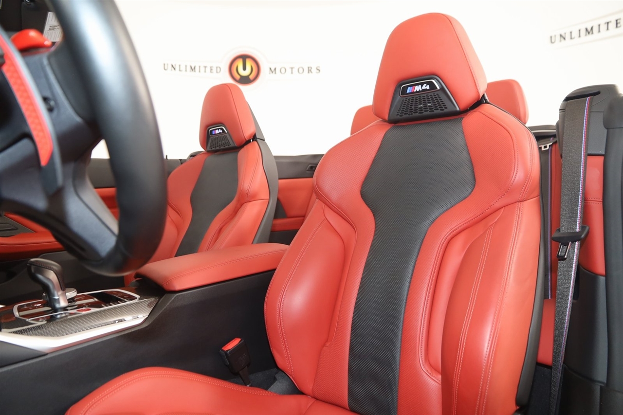 Navigation, Back Up Camera, Bluetooth, Heated Seats, Touch Screen, Heated Steering Wheel, Blind Spot, Soft Top, Cooled Heats, Apple Play, M4 Competition, 2D Convertible, 3.0L I6 Turbocharged DOHC 24V LEV3-ULEV70 503hp, 8-Speed Automatic Steptronic, AWD, Skyscraper Gray Metallic, Fiona Red/Black Fiona Red/Black Extended Merin, Executive Package, Head-Up Display, Heated Steering Wheel, Navigation System, Remote Engine Start.
