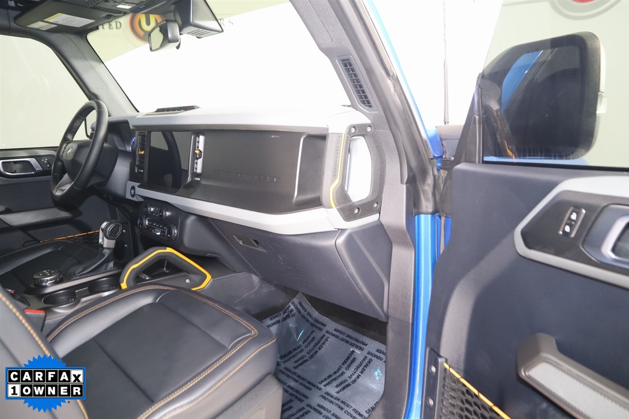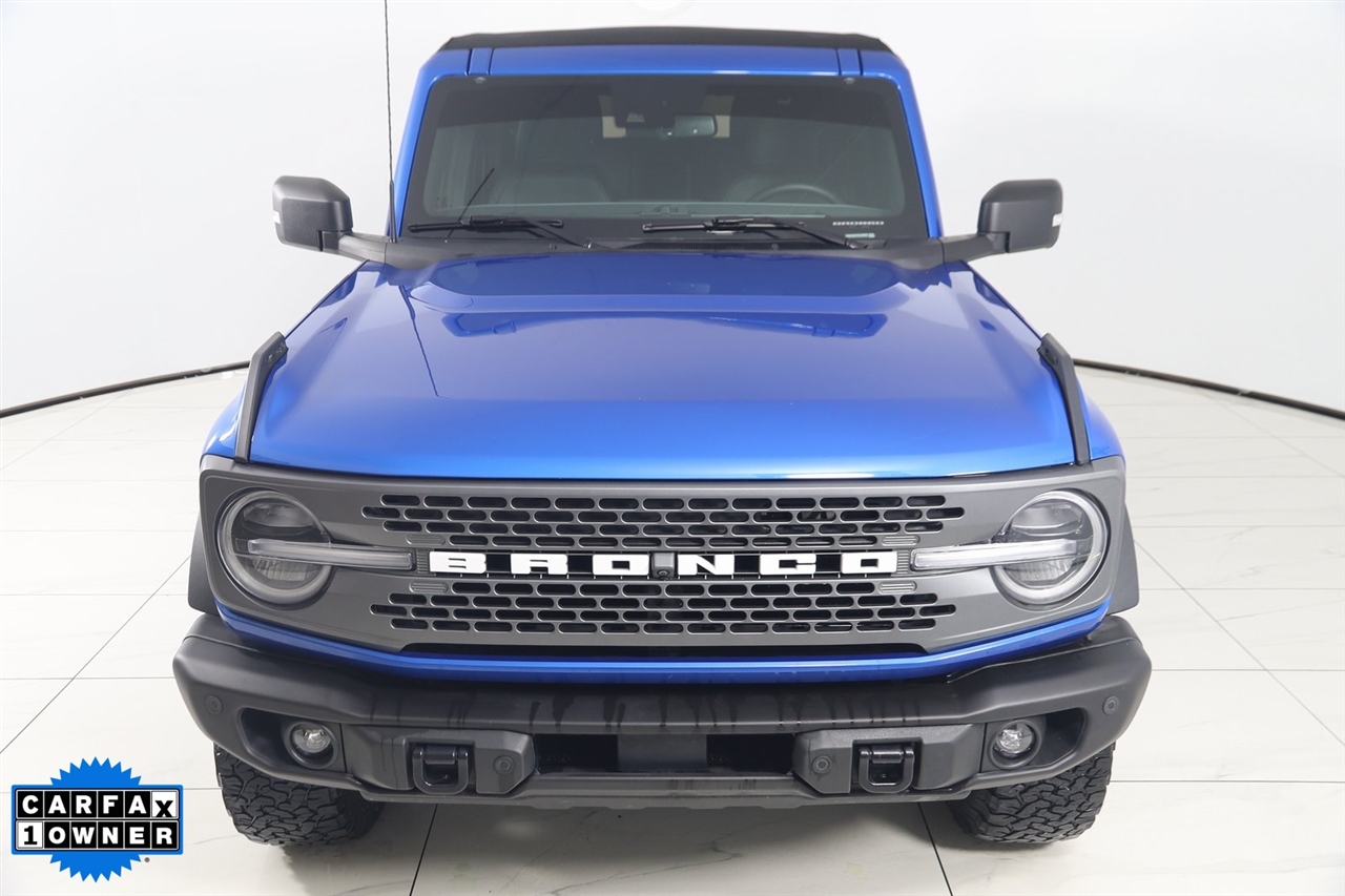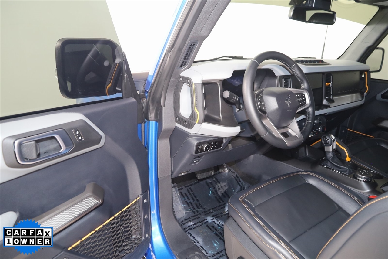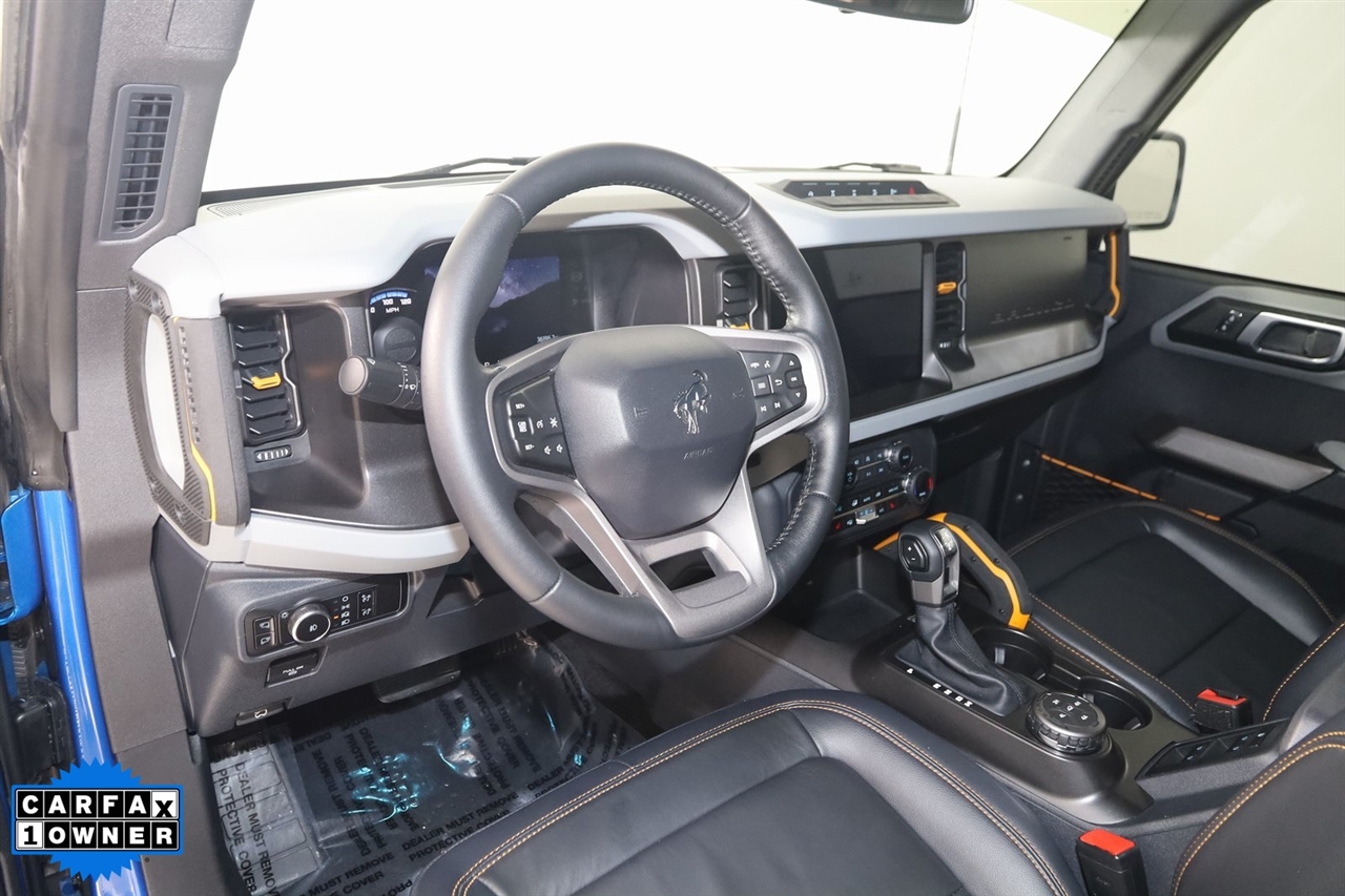 4x4, AWD, Back Up Camera, Bluetooth, Heated Seats, Navigation/GPS, Sun/Moon Roof, Push Button Start, 4-Matic, Memory Seats, Panoramic Roof, Towing, Bronco Badlands, 4D Sport Utility, 2.7L EcoBoost V6, 10-Speed Automatic, 4WD, Velocity Blue Metallic, Black Onyx, 12" LCD Capacitive Touchscreen w/Swipe Capability, 2 Smart Charging USB Ports In Dashboard, 360-Degree Camera, ABS brakes, Adaptive Cruise Control, Additional Sound Deadening, Compass, Connected Built-In Navigation, Electronic Stability Control, Equipment Group 354A Lux Package, Evasive Steering Assist, Front Parking Sensors, Heated door mirrors, Heated Steering Wheel, Illuminated entry, Information on Demand Panel, Low tire pressure warning, Radio: B&O Sound System by Bang & Olufsen, Remote keyless entry, Sideview Mirrors, Traction control, Universal Garage Door Opener, Wireless Charging Pad. Priced below KBB Fair Purchase Price!