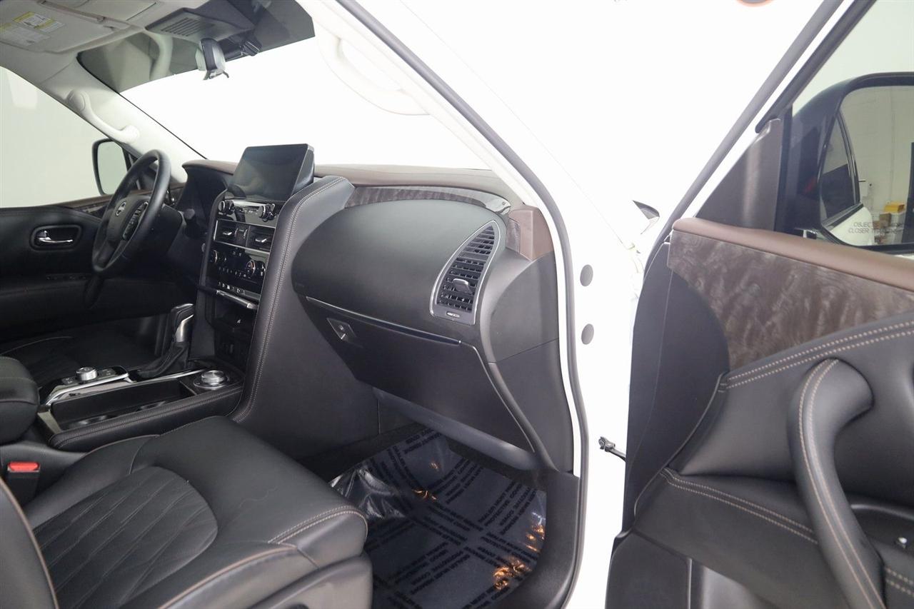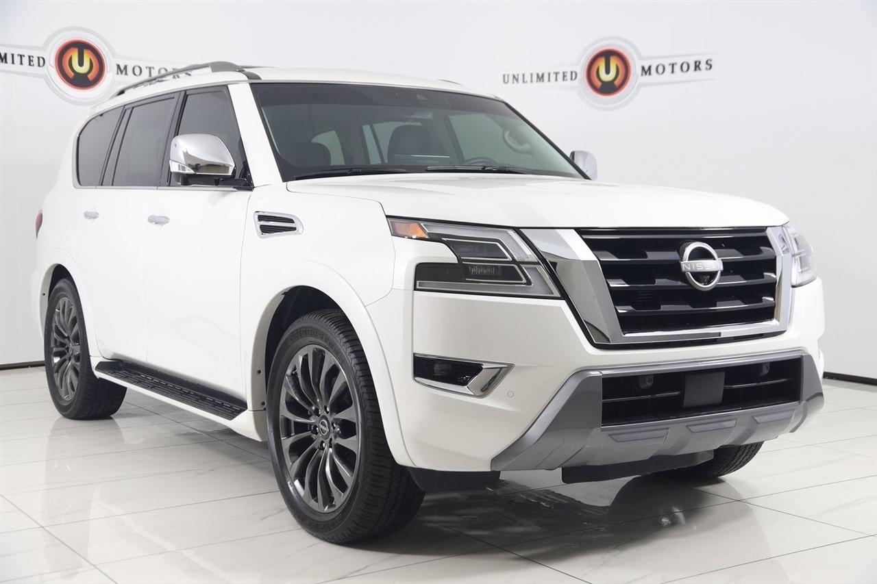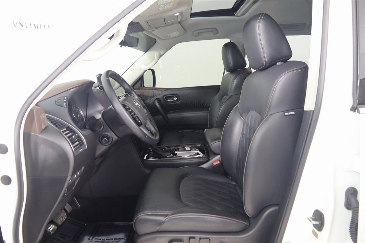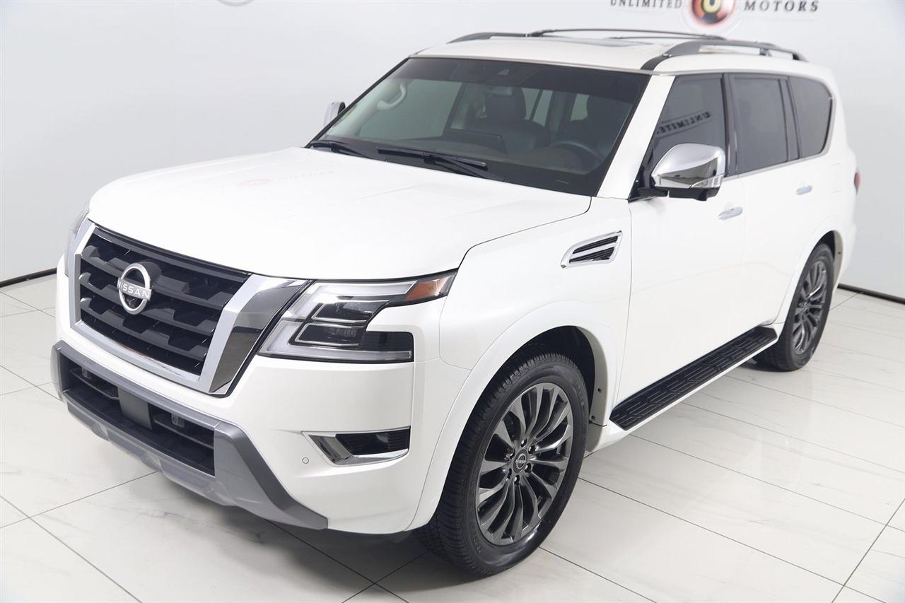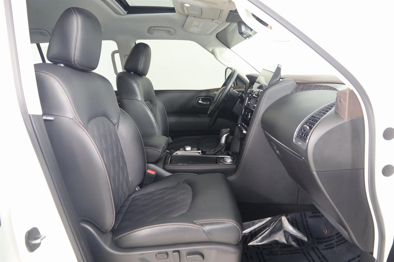 Navigation, Back Up Camera, Bluetooth, Sun/Moon Roof, Running Boards, Heated Seats, Touch Screen, Blind Spot, 3rd Row, Vented Seats, Armada Platinum, 4D Sport Utility, 5.6L V8 DOHC 32V LEV3-ULEV125 400hp, 7-Speed Automatic, 4WD, Aspen White Tricoat, Black Leather, 2nd Row Captain's Chairs, 2nd Row Center Console w/Padded Armrest, Captain's Chairs Package, Cargo Package, Navigation System.