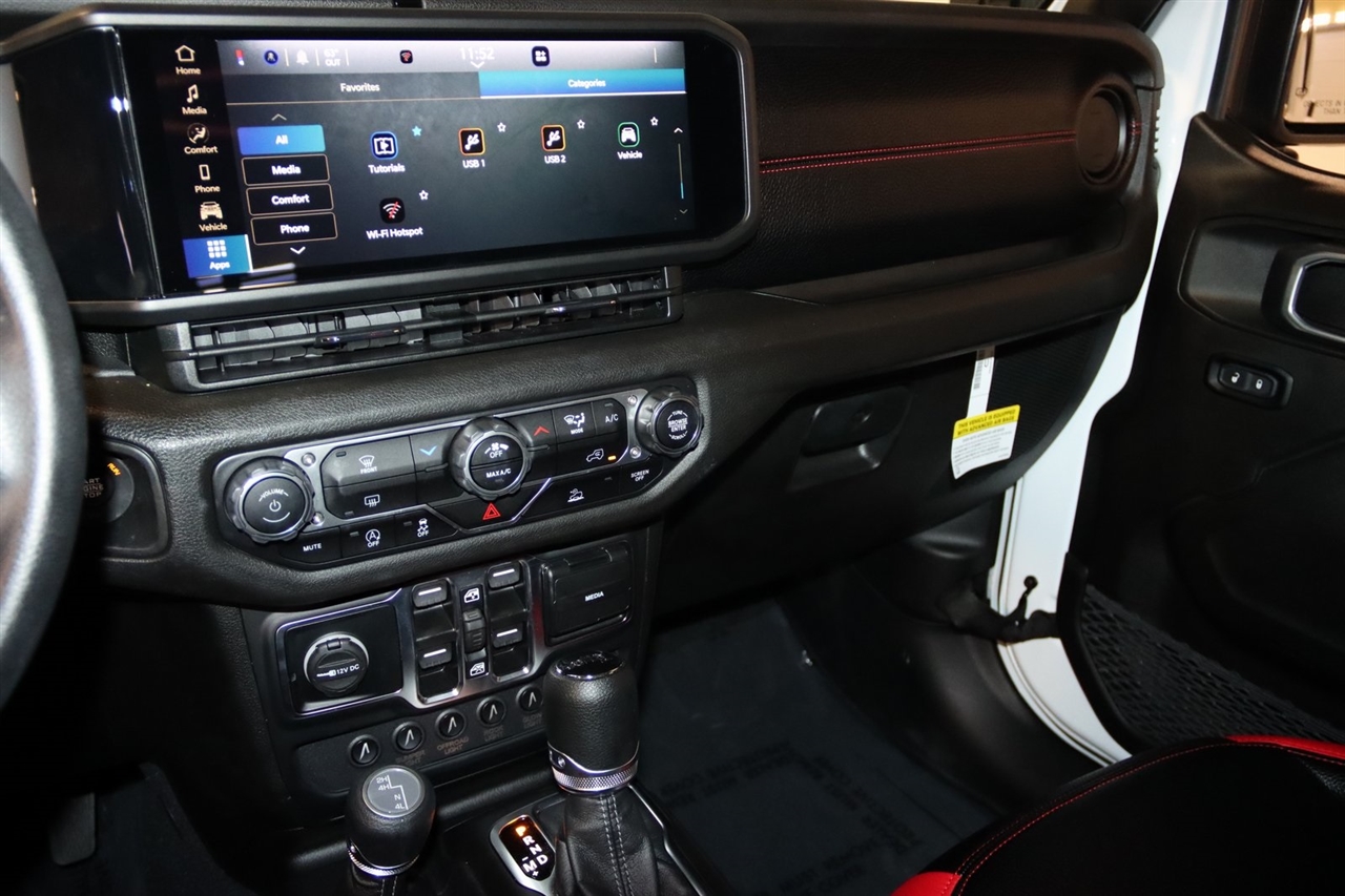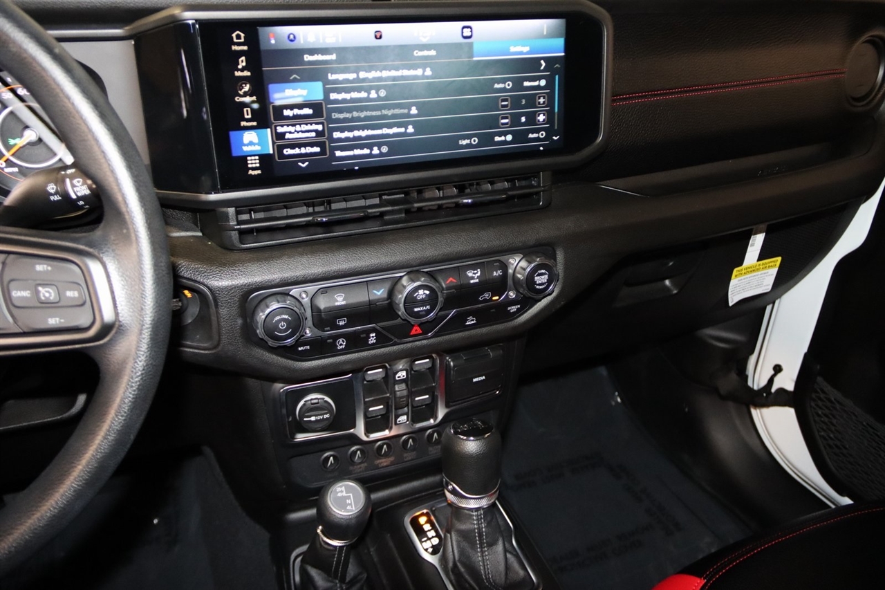 Bluetooth, Back Up Camera, Hard Top, Touch Screen, 110 MPH Vehicle Max Speed Calibration, 12.3" Touchscreen Display, 3.73 Rear Axle Ratio, 4-Wheel Disc Brakes, 4G LTE Wi-Fi Hot Spot, 8 Speakers, ABS brakes, Air Conditioning, Alexa Built-In, AM/FM radio: SiriusXM, Anti-Spin Differential Rear Axle, Apple CarPlay, Apple CarPlay/Android Auto, Body Color Fender Flares (2-Piece), Brake assist, Cloth Low-Back Bucket Seats, Compass, Connectivity - US/Canada, Dana M210 Wide Front Axle, Dana M220 Wide Rear Axle, Daytime Running Lamp System, Deep Tint Sunscreen Windows, Delay-off headlights, Driver door bin, Driver vanity mirror, Dual front impact airbags, Dual front side impact airbags, Electronic Stability Control, Front anti-roll bar, Front Bucket Seats, Front Center Armrest w/Storage, Front fog lights, Front reading lights, Google Android Auto, Illuminated entry, Integrated roll-over protection, Low tire pressure warning, Mold In Color Bumper w/Gloss Black, Normal Duty Suspension, Occupant sensing airbag, Outside temperature display, Overhead airbag, Panic alarm, ParkView Rear Back-Up Camera, Passenger door bin, Passenger vanity mirror, Power Heated Mirrors, Power steering, Power windows, Protection Sill Rails, Quick Order Package 24X Night Hawk (DISC), Radio data system, Radio: Uconnect 5 w/12.3" Display, Rear anti-roll bar, Rear reading lights, Remote keyless entry, Speed control, Split folding rear seat, Sport Rear Shock Absorbers, Sport Suspension (DISC), Steering wheel mounted audio controls, Tachometer, Telescoping steering wheel, Tilt steering wheel, Traction control, Trip computer, USB Host Flip, Variably intermittent wipers, Voltmeter. CARFAX One-Owner. Clean CARFAX.