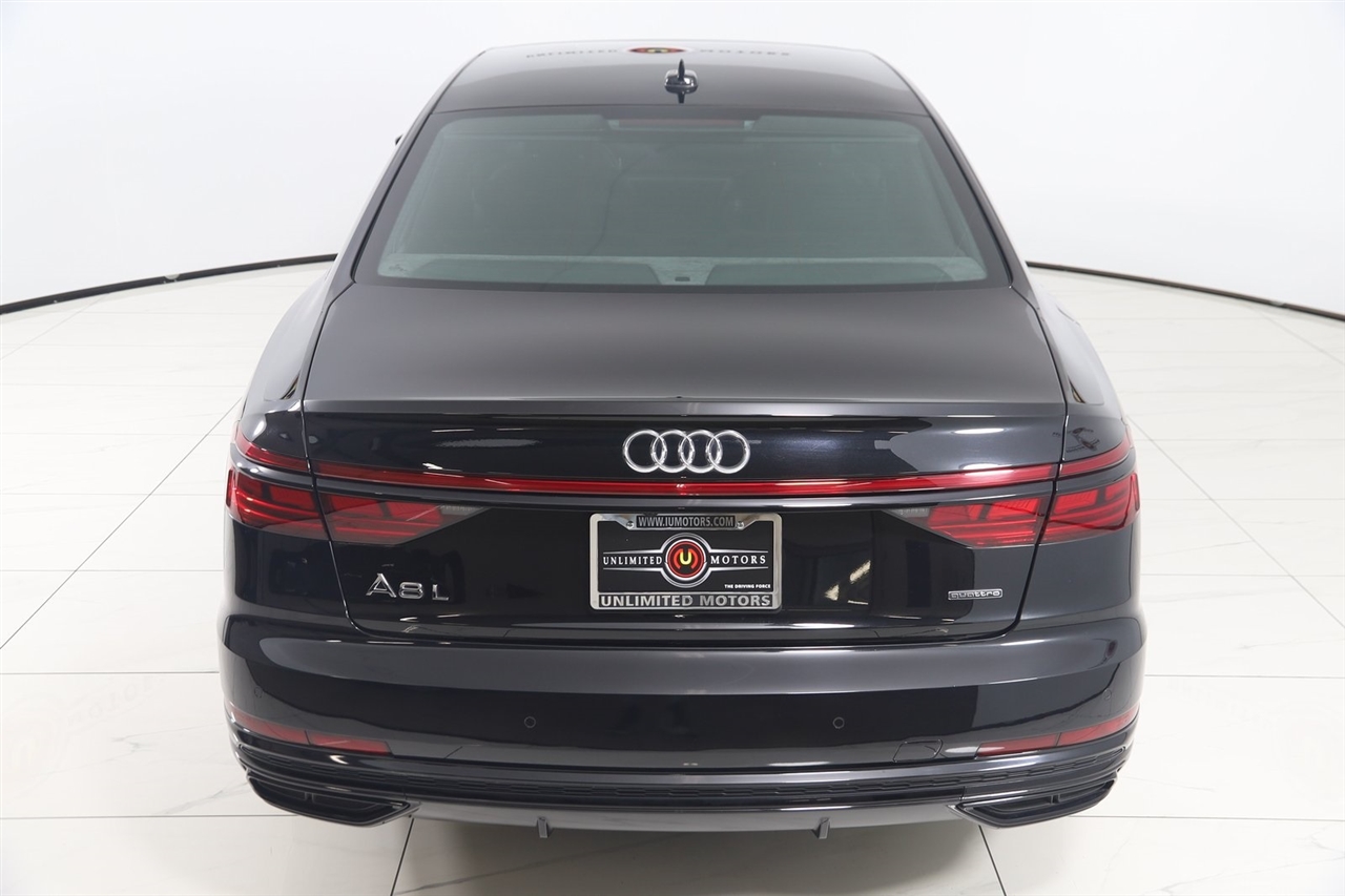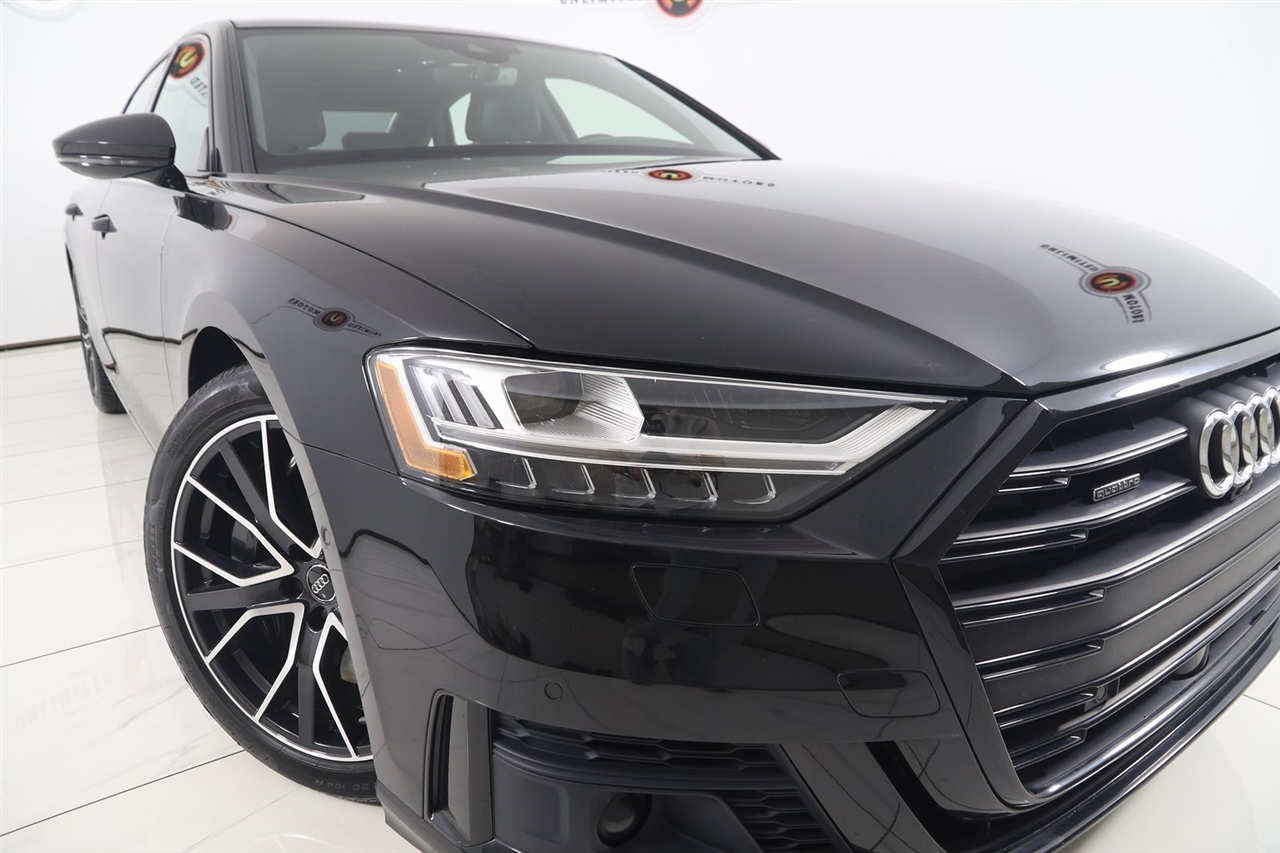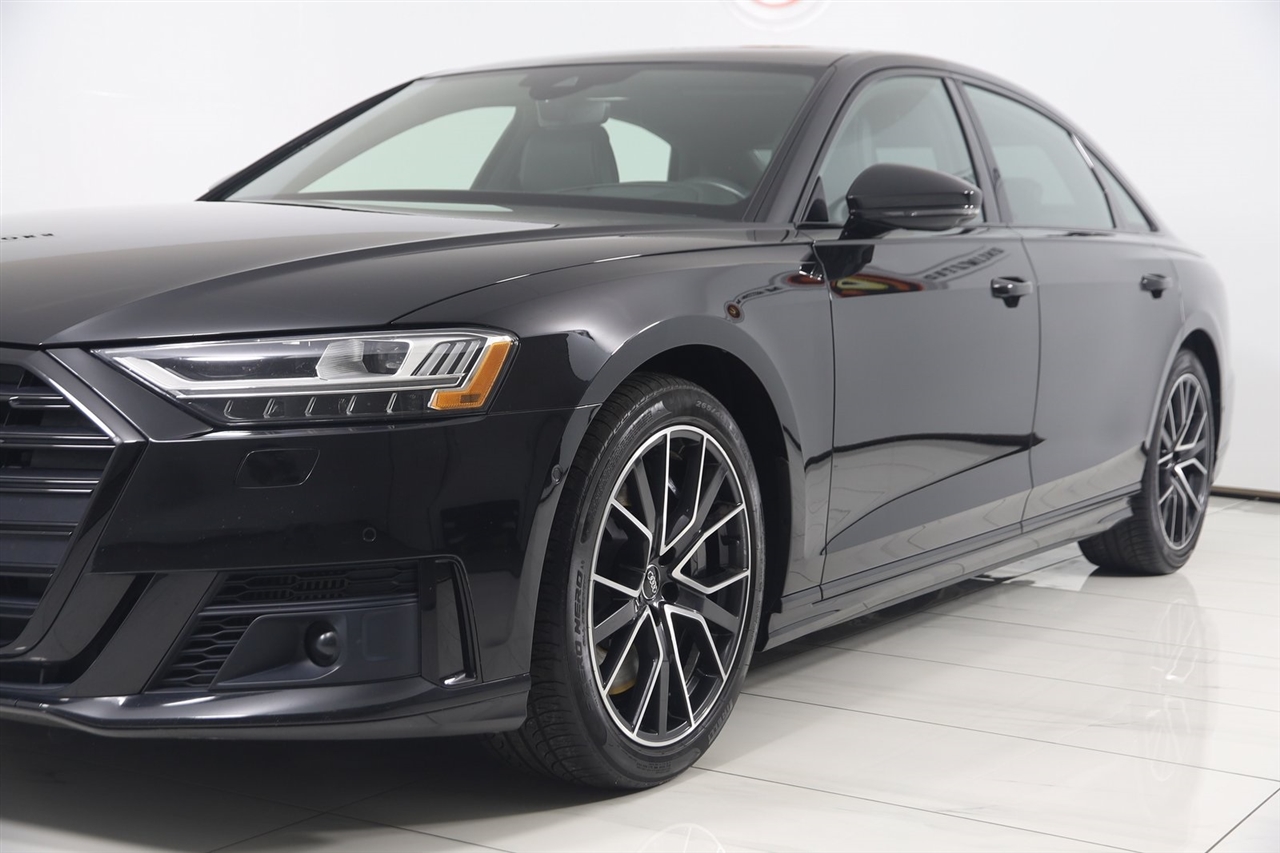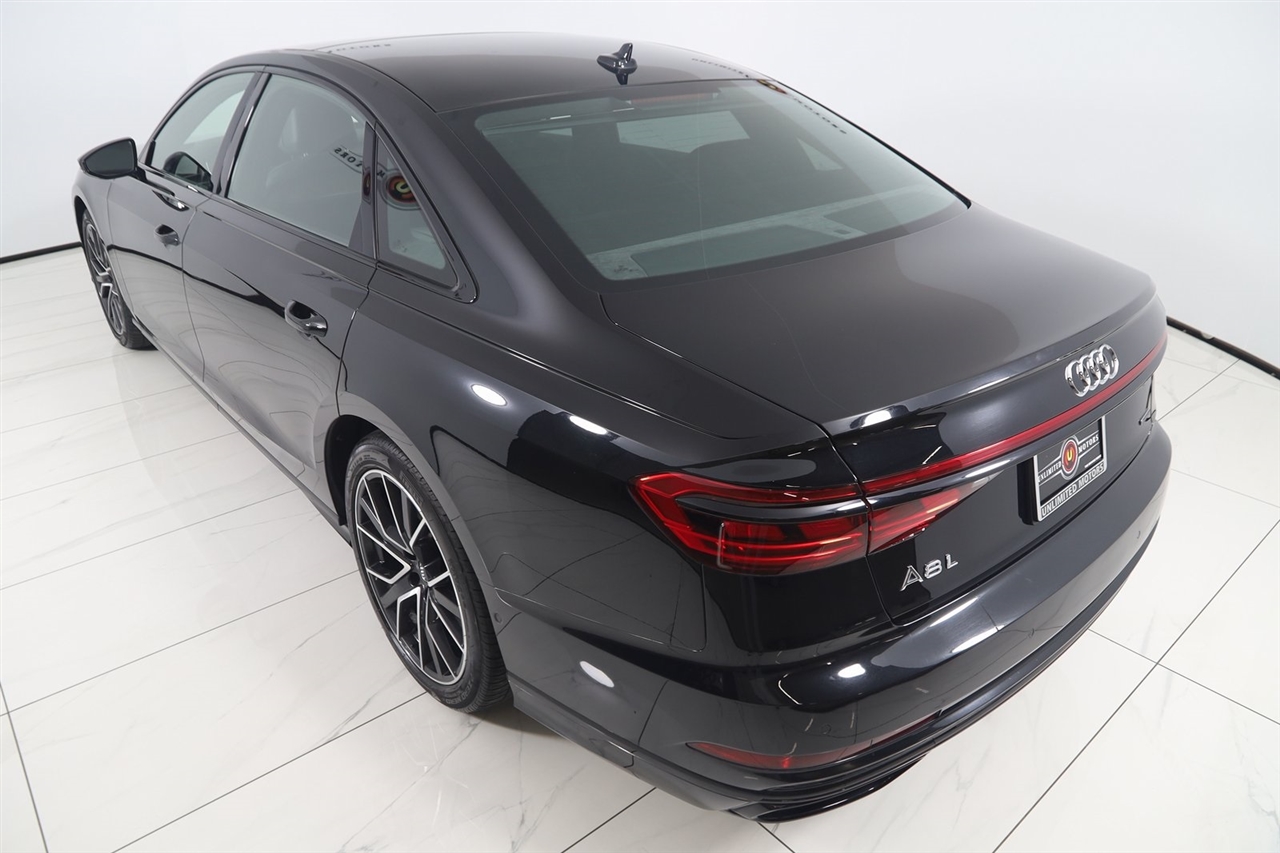 Navigation, Back Up Camera, Bluetooth, Panoramic Roof, Heated Seats, Touch Screen, Cooled Heats, Blind Spot, Apple Play, A8 4.0 LWB quattro L, 4D Sedan, 4.0L V8 Turbocharged DOHC 32V LEV3-ULEV125 453hp, 8-Speed Automatic with Tiptronic, quattro, Black Metallic, Black Leather, Acoustic & Break Resistant Dual-Pane Side Windows, Adaptive Windshield Wiping System, Aluminum Optic Buttons, Audi Active Lane Assist, Audi Adaptive Cruise Assist, Audi Head-Up Display, Audi Phone Box, Audi Pre Sense Rear, Audi Side Assist, Black Optic Exterior Package, Chrome Exterior Package, Cold Weather Package, Contour/Ambient LED Interior Lighting Package, Driver Assistance Package, Dynamic All-Wheel-Steering, Executive Package, Extended Leather Package, HD Matrix-Design LED Headlights, Headlight Washers, Heated 4-Spoke Multifunction Steering Wheel, Heated Front Surfaces, Heated Rear Outboard Seats, Intersection Assist, Ionizer & Fragrance Premium Air Quality, Light Alcantara Headliner, Lighting Package, Luxury Package, Navigation System, Navigation system: MMI Navigation plus, OLED Taillights w/Animation, Predictive Active Suspension, Sport Exterior Styling, Sport Plus Package, Top View Camera System, Traffic Sign Recognition, Valcona Leather Seat Upholstery, Ventilated Comfort Front Seats, Wheels: 20" Audi Sport 5-V-Spoke-Star-Design. Clean CARFAX.