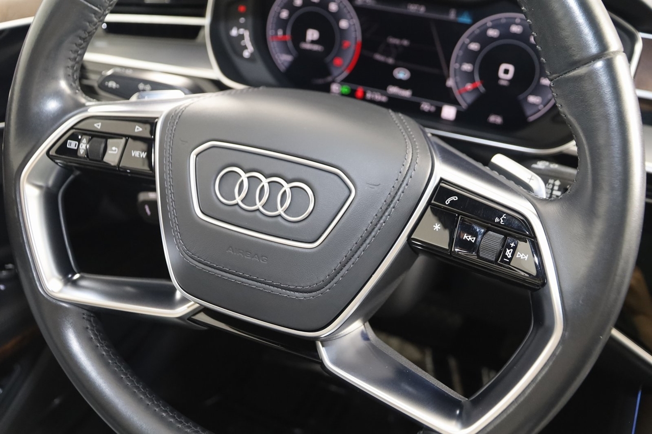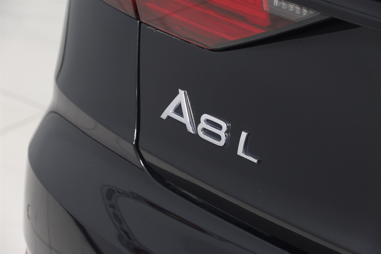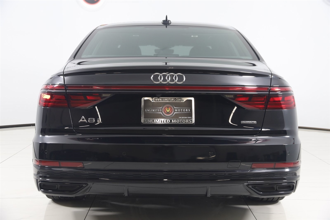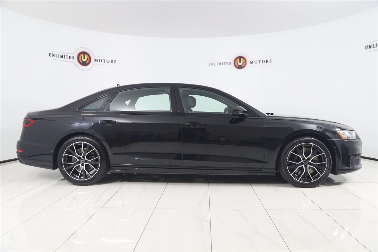 Navigation, Back Up Camera, Bluetooth, Panoramic Roof, Heated Seats, Touch Screen, Cooled Heats, Blind Spot, Apple Play, A8 4.0 LWB quattro L, 4D Sedan, 4.0L V8 Turbocharged DOHC 32V LEV3-ULEV125 453hp, 8-Speed Automatic with Tiptronic, quattro, Black Metallic, Black Leather, Acoustic & Break Resistant Dual-Pane Side Windows, Adaptive Windshield Wiping System, Aluminum Optic Buttons, Audi Active Lane Assist, Audi Adaptive Cruise Assist, Audi Head-Up Display, Audi Phone Box, Audi Pre Sense Rear, Audi Side Assist, Black Optic Exterior Package, Chrome Exterior Package, Cold Weather Package, Contour/Ambient LED Interior Lighting Package, Driver Assistance Package, Dynamic All-Wheel-Steering, Executive Package, Extended Leather Package, HD Matrix-Design LED Headlights, Headlight Washers, Heated 4-Spoke Multifunction Steering Wheel, Heated Front Surfaces, Heated Rear Outboard Seats, Intersection Assist, Ionizer & Fragrance Premium Air Quality, Light Alcantara Headliner, Lighting Package, Luxury Package, Navigation System, Navigation system: MMI Navigation plus, OLED Taillights w/Animation, Predictive Active Suspension, Sport Exterior Styling, Sport Plus Package, Top View Camera System, Traffic Sign Recognition, Valcona Leather Seat Upholstery, Ventilated Comfort Front Seats, Wheels: 20" Audi Sport 5-V-Spoke-Star-Design. Clean CARFAX.