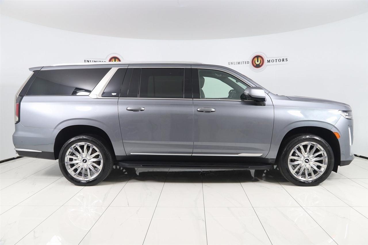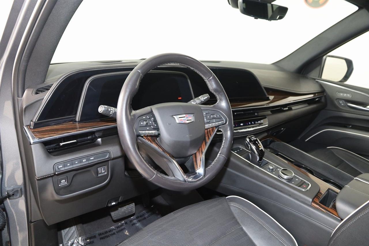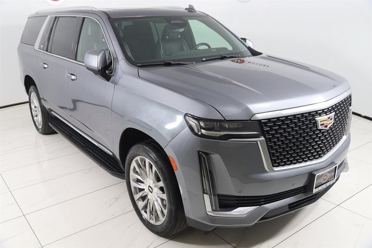 Navigation, Back Up Camera, Bluetooth, Running Boards, Panoramic Roof, Heated Seats, Touch Screen, Heated Steering Wheel, Blind Spot, Cooled Heats, Apple Play, Escalade ESV Premium, 4D Sport Utility, 6.2L V8, 10-Speed Automatic with Overdrive, 4WD, Satin Steel Metallic, Parchment With Jet Black Accents Leather, Adaptive Cruise Control, AKG Studio 19-Speaker Audio System, Automatic Seat Belt Tightening, Automatic Stop/Start, Door Lock & Latch Shields, Enhanced Automatic Emergency Braking, Enhanced Automatic Parking Assist, Glass Breakage Sensor, Heated & Ventilated Driver & Front Passenger Seats, Lane Change Alert w/Side Blind Zone Alert, Mechanical Limited-Slip Differential, Navigation System, Power Panoramic Tilt-Sliding Sunroof, Preferred Equipment Group 1SB, Rear Camera Mirror, Rear Camera Mirror Washer, Rear Cross Traffic Alert, Reconfigurable Full-Color Head-Up Display, Reverse Automatic Braking, Running Board Assist Steps, Start/Stop System Disable Button, Theft-Deterrent Alarm System, Vehicle Inclination Sensor, Vehicle Interior Movement Sensor.