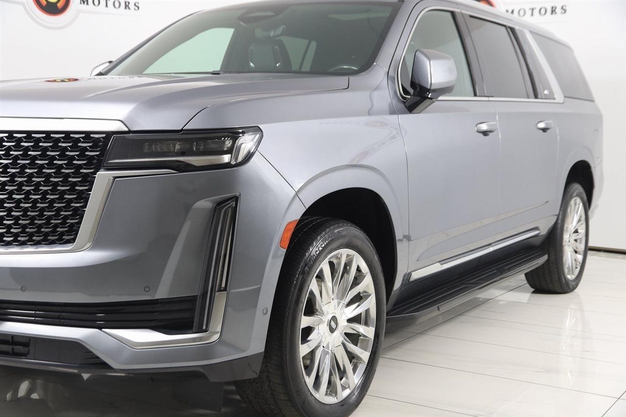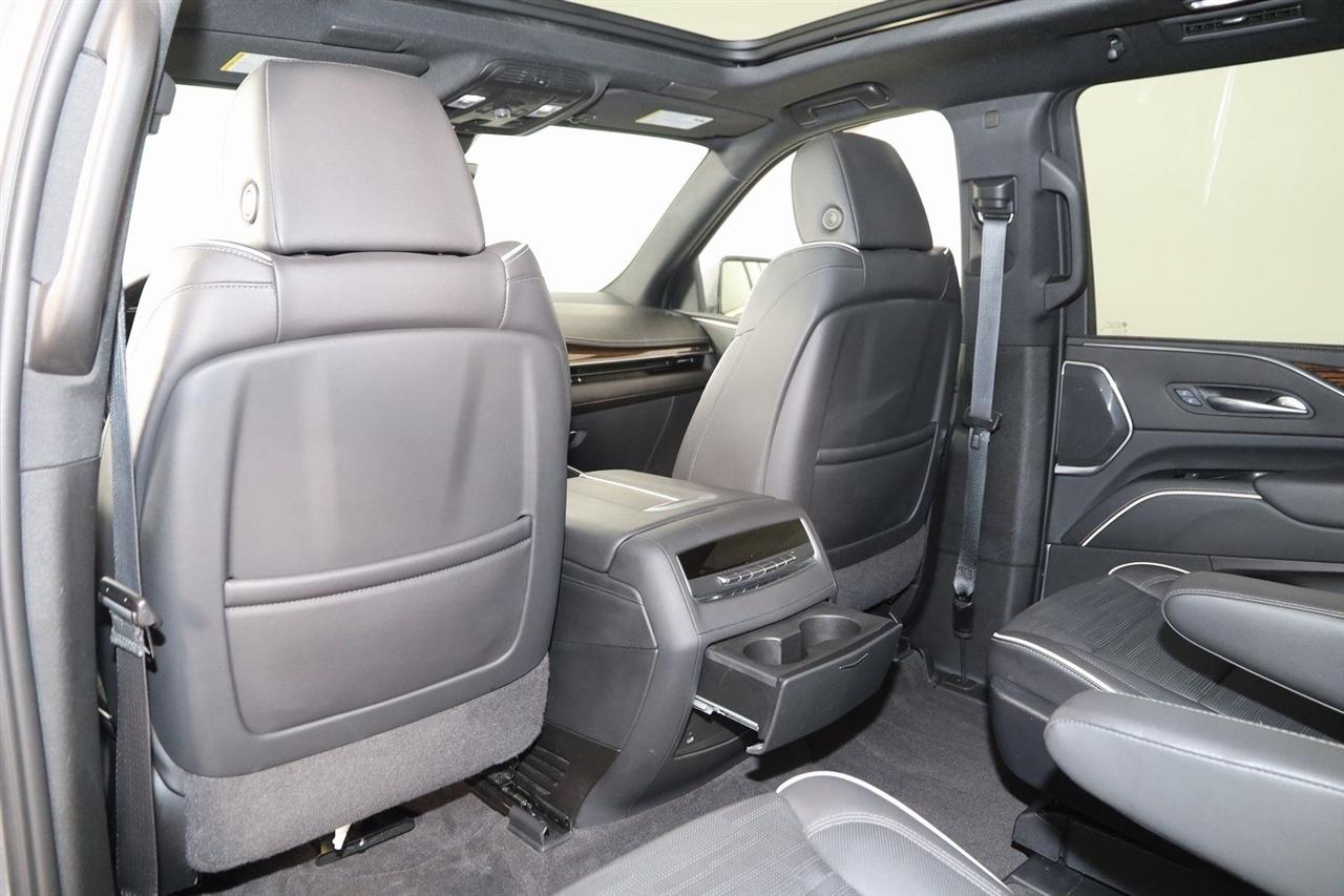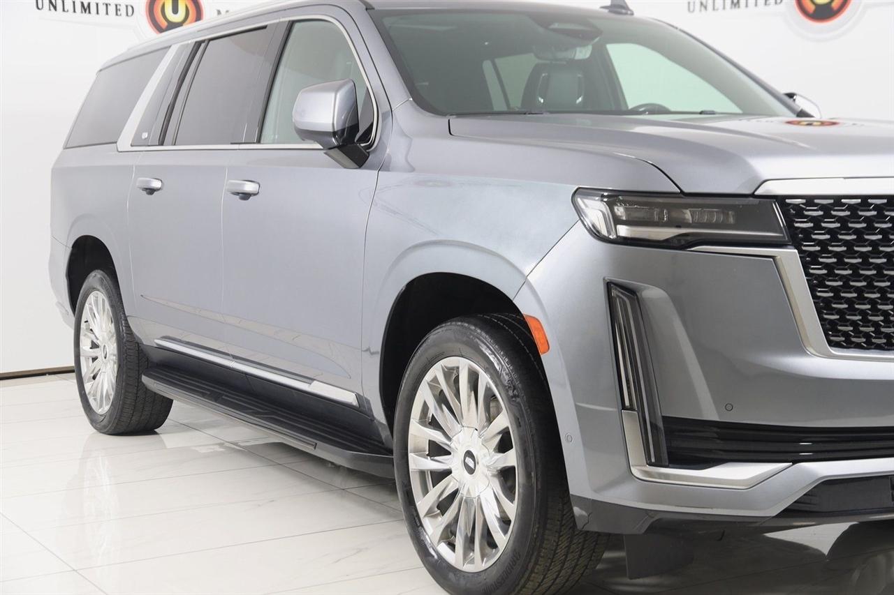 Navigation, Back Up Camera, Bluetooth, Running Boards, Panoramic Roof, Heated Seats, Touch Screen, Heated Steering Wheel, Blind Spot, Cooled Heats, Apple Play, Escalade ESV Premium, 4D Sport Utility, 6.2L V8, 10-Speed Automatic with Overdrive, 4WD, Satin Steel Metallic, Parchment With Jet Black Accents Leather, Adaptive Cruise Control, AKG Studio 19-Speaker Audio System, Automatic Seat Belt Tightening, Automatic Stop/Start, Door Lock & Latch Shields, Enhanced Automatic Emergency Braking, Enhanced Automatic Parking Assist, Glass Breakage Sensor, Heated & Ventilated Driver & Front Passenger Seats, Lane Change Alert w/Side Blind Zone Alert, Mechanical Limited-Slip Differential, Navigation System, Power Panoramic Tilt-Sliding Sunroof, Preferred Equipment Group 1SB, Rear Camera Mirror, Rear Camera Mirror Washer, Rear Cross Traffic Alert, Reconfigurable Full-Color Head-Up Display, Reverse Automatic Braking, Running Board Assist Steps, Start/Stop System Disable Button, Theft-Deterrent Alarm System, Vehicle Inclination Sensor, Vehicle Interior Movement Sensor.