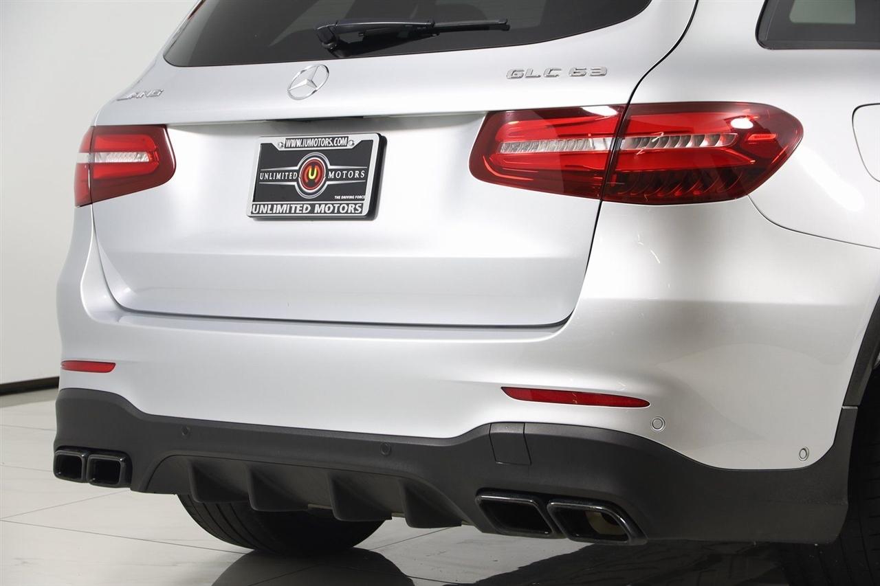 Navigation, Back Up Camera, Bluetooth, Panoramic Roof, Heated Seats, Touch Screen, Blind Spot, Vented Seats, GLC 63 AMG® 4MATIC®, 4D Sport Utility, 4.0L V8, 9-Speed Automatic, 4MATIC®, Iridium Silver Metallic, Active Blind Spot Assist, Active Lane Keeping Assist, Active-LED Headlamps w/Active Curve Illumination, Adaptive Highbeam Assist, AMG® Night Package, Badging on Dashboard, BAS PLUS w/Cross-Traffic Assist, Black Roof Rails, COMAND® Single CD/DVD, DISTRONIC PLUS® w/PRESAFE Brake, DISTRONIC PLUS® w/Steering Assist, Driver Assistance Package, Driver Assistance Package (23P), DVD Coding, Exterior Lighting Package, HANDS-FREE ACCESS, HANDS-FREE Comfort Package, Multimedia Package, Navigation Map Updates For 3 Years, Navigation System, Night Package, Parking Assistance Package, Parking Package, PARKTRONIC w/Active Parking Assist, PRESAFE® Brake w/Pedestrian Recognition, PRESAFE® PLUS, PRESAFE® PLUS Rear-End Collision Protection, Radio: COMAND® System w/Navigation, Speed Limit Assist, Surround View Camera System, Touchpad.