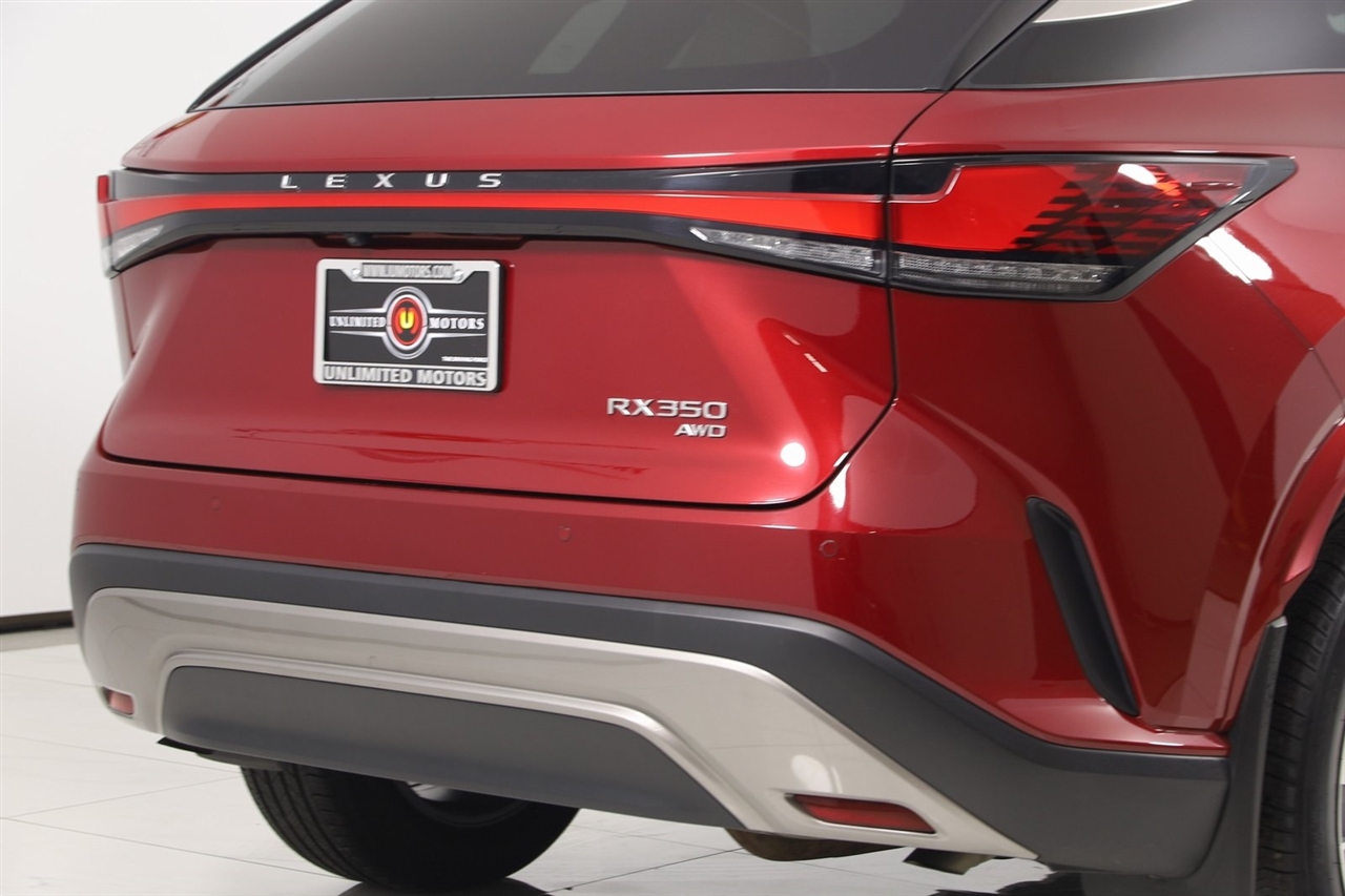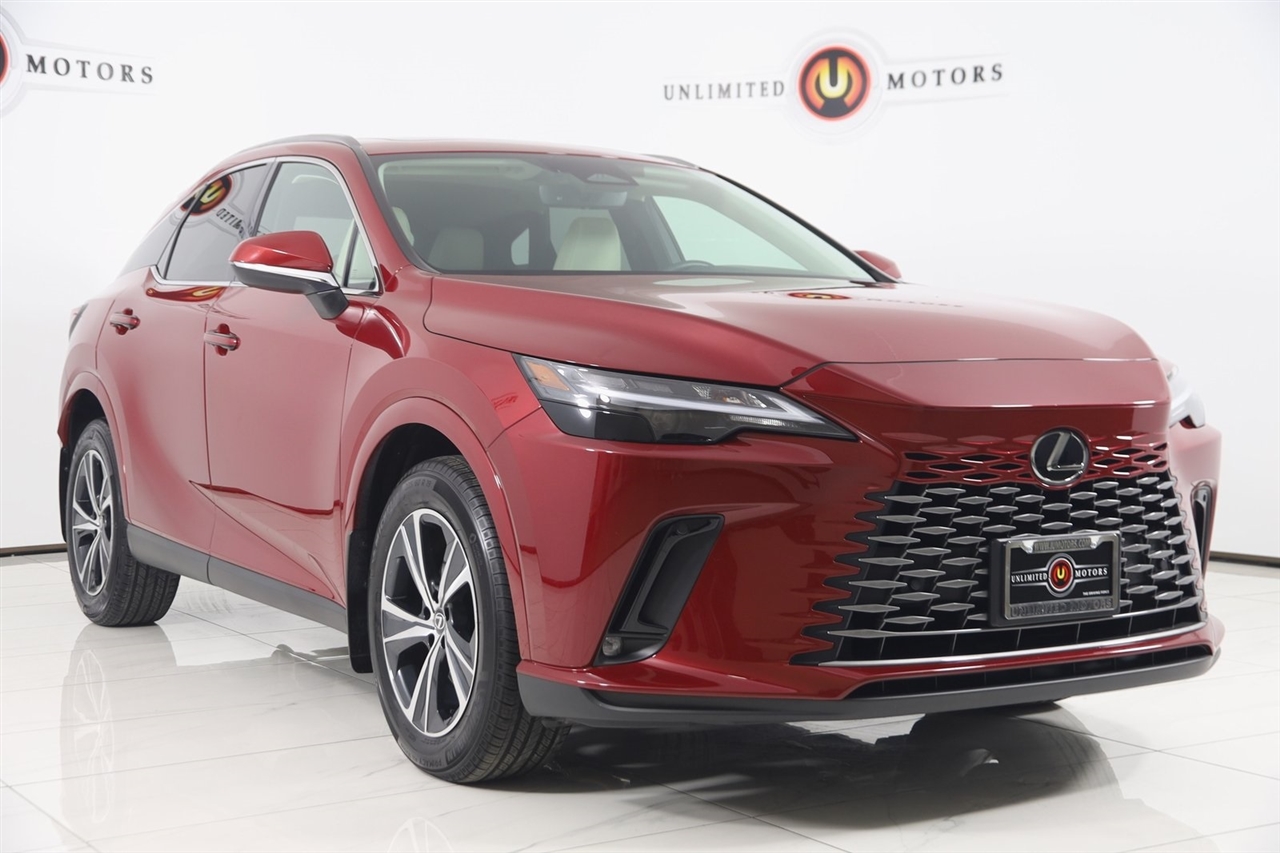 Navigation, Back Up Camera, Bluetooth, Sun/Moon Roof, Heated Seats, Touch Screen, Cooled Heats, Blind Spot, Heated Steering Wheel, 4D Sport Utility, 2.4L I4 PDI Turbocharged DOHC 16V LEV3-SULEV30 275hp, 8-Speed Automatic, AWD, Matador Red Mica, Navigation System. CARFAX One-Owner. Clean CARFAX. Priced below KBB Fair Purchase Price! Odometer is 3605 miles below market average! 21/28 City/Highway MPG 2023 Matador Red Mica Lexus 4D Sport Utility RX AWD 8-Speed Automatic 2.4L I4 PDI Turbocharged DOHC 16V LEV3-SULEV30 275hp Visit our website www.iumotors.com to view 100s of newer vehicles, more pictures and info, or to apply for financing. Rates are incredibly low for approved credit. We offer extended warranties, protection packages, and insurance. We assure you the best experience at any of our 4 locations and unbeatable prices and quality. At Unlimited Motors we believe in "MARKET VALUE PRICING’’. We use real-time Internet price comparisons to constantly adjust prices to provide ALL BUYERS The BEST PRICE possible. We do not mark them up, to mark them down! Our entire team is committed to helping you buy a car the way we would want to buy a car! We utilize state-of-the-art technology to constantly monitor pricing trends to offer our shoppers the best competitive pricing, value, and experience. We sell and service all makes and models of Pre-owned / Used Vehicles Used Cars, Used Trucks, Used Sport Utility, Lamborghini, Ferrari, Bentley, Rolls Royce, McLaren, Maserati, Ford, Chevrolet/Chevy, Honda, Toyota, Porsche, Land Rover, Jaguar, INFINITI, Audi, Nissan, Mazda, Hyundai, Chrysler, Jeep, Dodge, Ram, SRT, Mitsubishi, Lexus, Kia, Volkswagen, Mini, BMW, Mercedes, Fiat, Volvo, GMC, Cadillac, Lincoln as well as other brands. Proudly serving these areas of Indianapolis, Fishers, Carmel, Noblesville, Greenwood, Avon, Plainfield, Zionsville, & Brownsburg, Indiana, Midwest. We also serve the entire nation with our seamless and easy online purchasing process, and offer shipping nationwide. Advertised prices DO NOT include Sales Tax, Dealer Fees, Title Processing Charges, and Dealer Pre-installed Products.