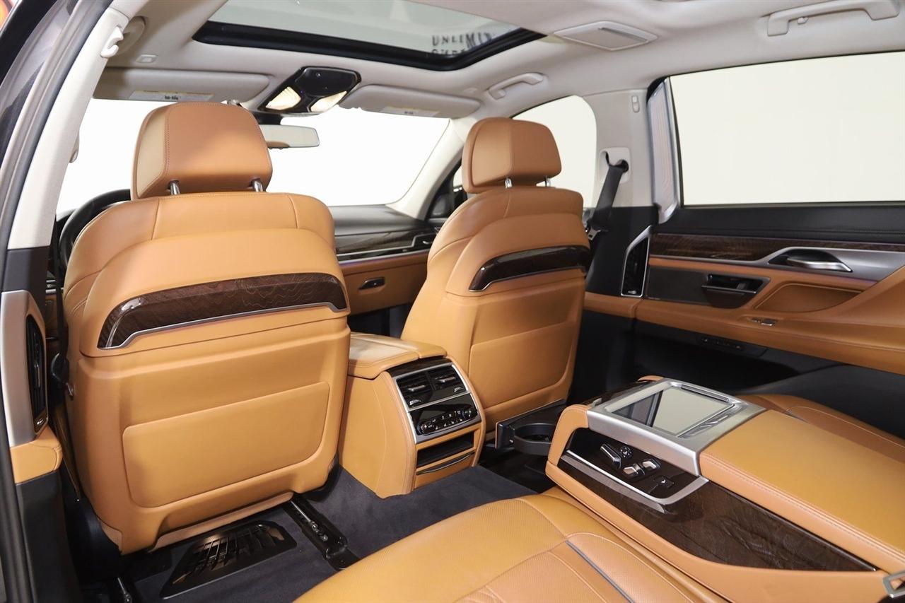Navigation, Back Up Camera, Bluetooth, Panoramic Roof, Heated Seats, Touch Screen, Heated Steering Wheel, Blind Spot, Cooled Heats, Apple Play, 750i xDrive, 4D Sedan, 4.4L V8 32V Twin Turbocharged, 8-Speed Automatic, AWD, Black Sapphire Metallic, Cognac Leather, 7" Touch Command Tablet, Active Driving Assistant Delete, Active Driving Assistant Pro, Ceramic Controls, Driving Assistance Professional Package, Executive Package, Extended Traffic Jam Assistant, Front Massaging Seats, Front Ventilated Seats, Heated Steering Wheel w/Fr & Rr Seats & Armrests, Instrument Panel w/Nappa Leather Finish, Luxury Rear Seating Package, Navigation System, Panoramic Moonroof Delete, Panoramic Sky Lounge LED Roof, Power Rear Sunshade & Rear Side Window Shades, Rear Comfort Seats, Rear Massaging Seats, Rear Ventilated Seats.