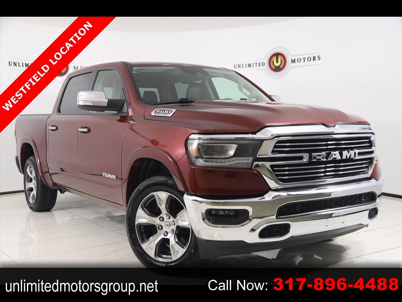 2022 Delmonico Red Pearlcoat Ram 4D Crew Cab 1500 Laramie 4WD 8-Speed Automatic HEMI 5.7L V8 Multi Displacement VVT