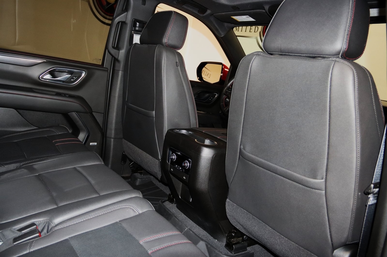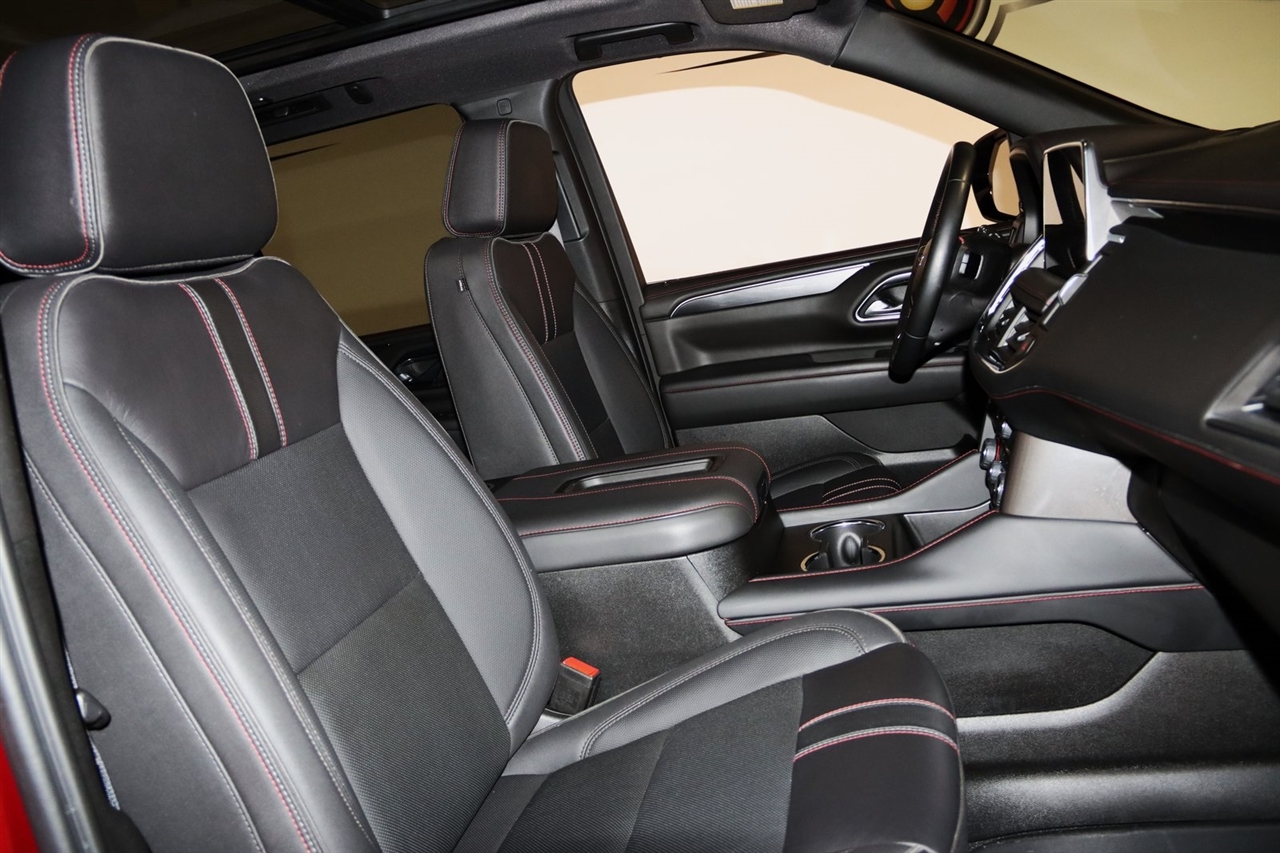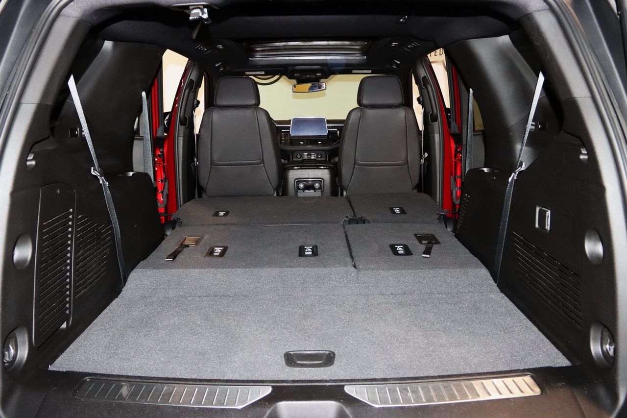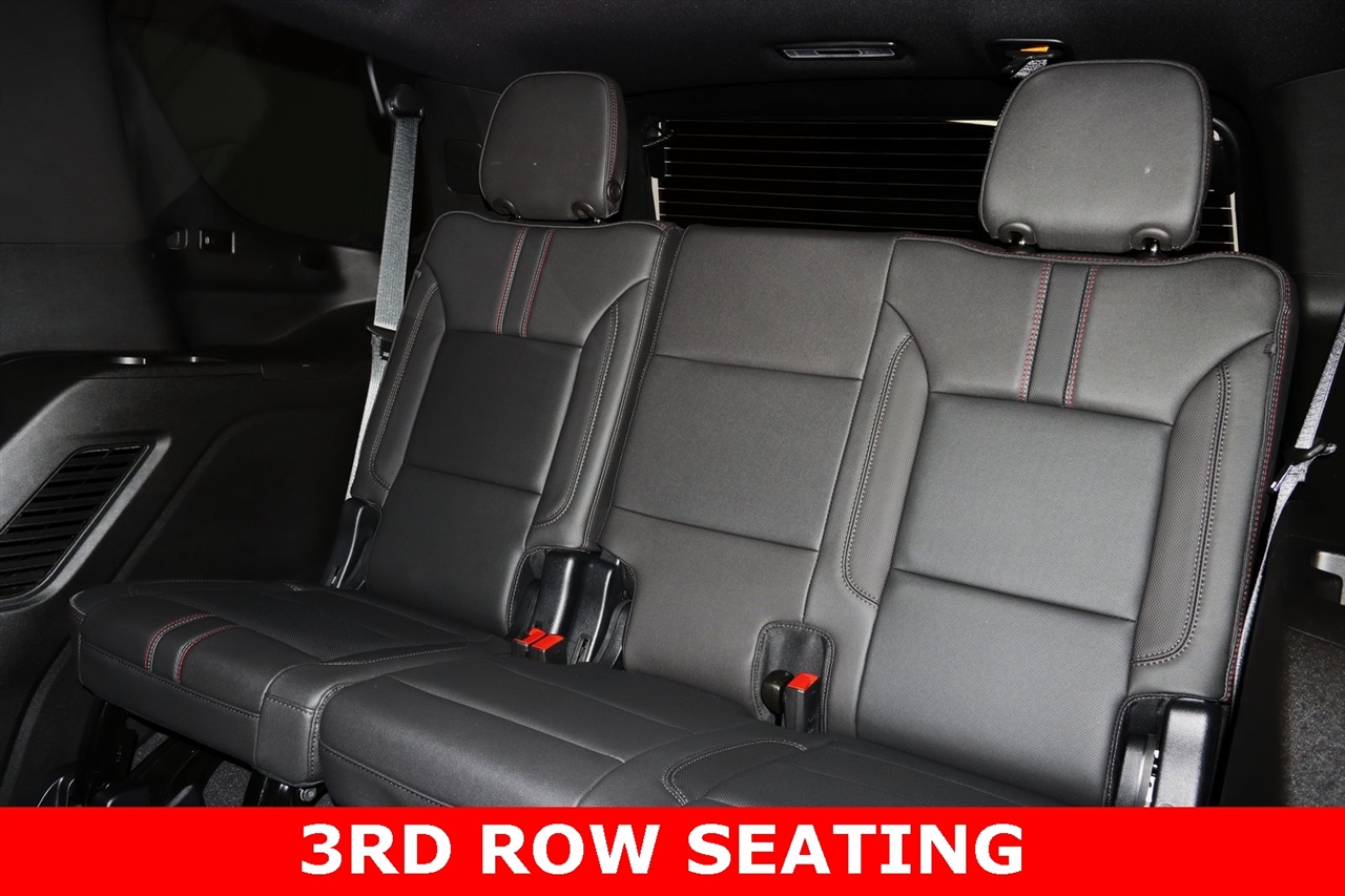 Navigation, Bluetooth, Back Up Camera, Panoramic Roof, 3rd Row, Heated Seats, Touch Screen, 10-Way Power Driver & Passenger Seat Adjusters, 1st & 2nd Row Color-Keyed Carpeted Floor Mats, 1st, 2nd & 3rd Rows All-Weather Floor Liners (LPO), 3.23 Rear Axle Ratio, 3rd row seats: split-bench, 4-Wheel Disc Brakes, 9 Speakers, ABS brakes, Air Conditioning, Alloy wheels, AM/FM radio: SiriusXM with 360L, Apple CarPlay/Android Auto, Auto High-beam Headlights, Auto-Dimming Inside Rear-View Mirror, Auto-dimming Rear-View mirror, Automatic temperature control, Bose 9-Speaker Stereo Audio System Feature, Brake assist, Bright Front & Rear Door Sill Plates, Bumpers: body-color, Color-Keyed Carpeting Floor Covering, Compass, Delay-off headlights, Driver & Front Outboard Passenger Airbags, Driver door bin, Driver vanity mirror, Dual front impact airbags, Dual front side impact airbags, Dual-Pane Power Panoramic Sunroof, Electronic Stability Control, Emergency communication system: OnStar and Chevrolet connected services capable, Enhanced Driver Information Center, Floor Console w/Storage Area, Four wheel independent suspension, Front anti-roll bar, Front Bucket Seats, Front Center Armrest, Front dual zone A/C, Front High-Back Reclining Bucket Seats, Front reading lights, Fully automatic headlights, Garage door transmitter, Hands-Free Rear Power Programmable Liftgate, Heated door mirrors, Heated Driver & Front Passenger Seats, Heated front seats, Illuminated entry, Infotainment Display, LED Daytime Running Lamps, Low tire pressure warning, Memory seat, Memory Settings for Driver, Navigation System, Not Equipped w/Wheel Locks (LPO), Occupant sensing airbag, Outside temperature display, Overhead airbag, Overhead console, Panic alarm, Passenger door bin, Passenger vanity mirror, Perforated Leather Seat Trim, Power door mirrors, Power driver seat, Power Liftgate, Power passenger seat, Power steering, Power windows, Preferred Equipment Group 1SP, Premium audio system: Chevrolet Infotainment 3 Premium, Premium Smooth Ride Suspension, Radio: Chevrolet Infotainment 3 Premium System, Rain sensing wipers, Rear air conditioning, Rear anti-roll bar, Rear reading lights, Rear seat center armrest, Rear window defroster, Rear window wiper, Remote keyless entry, Remote Start, Roof rack: rails only, Security system, SiriusXM Radio w/360L, Speed control, Speed-sensing steering, Split folding rear seat, Spoiler, Steering wheel mounted audio controls, Tachometer, Telescoping steering wheel, Tilt steering wheel, Traction control, Trip computer, Universal Home Remote, Variably intermittent wipers, Voltmeter, Wheels: 22" x 9" Bright Machined, Wireless Charging, Wrapped Steering Wheel. CARFAX One-Owner. Clean CARFAX. Odometer is 12461 miles below market average!
