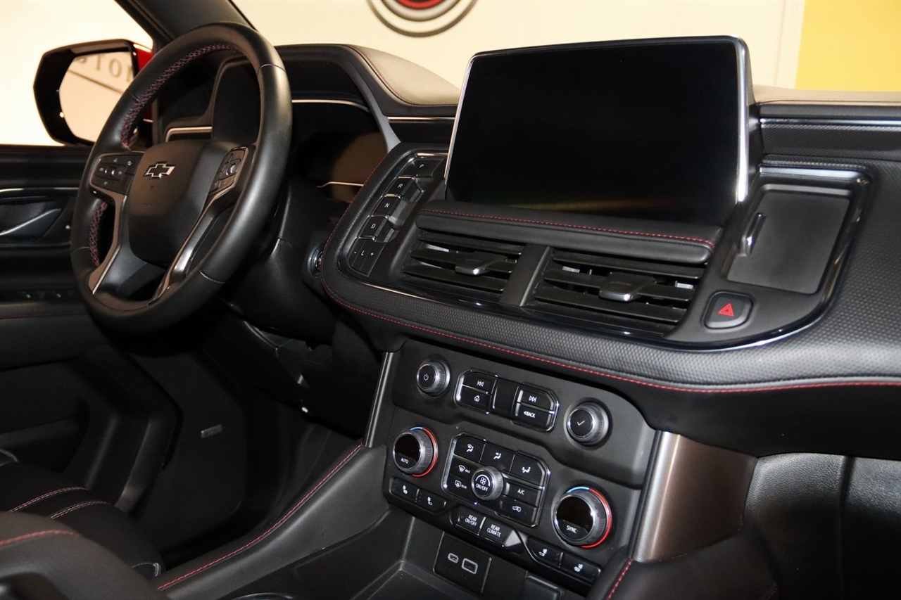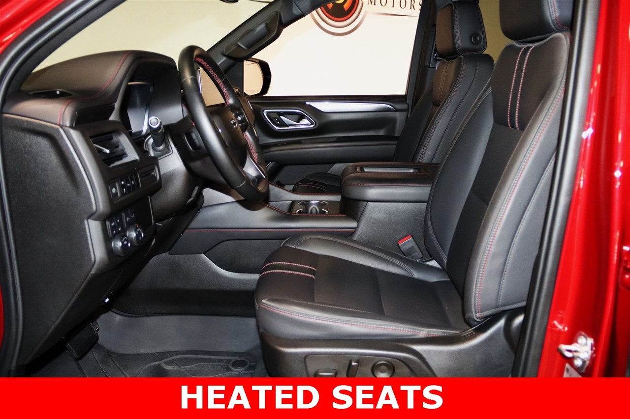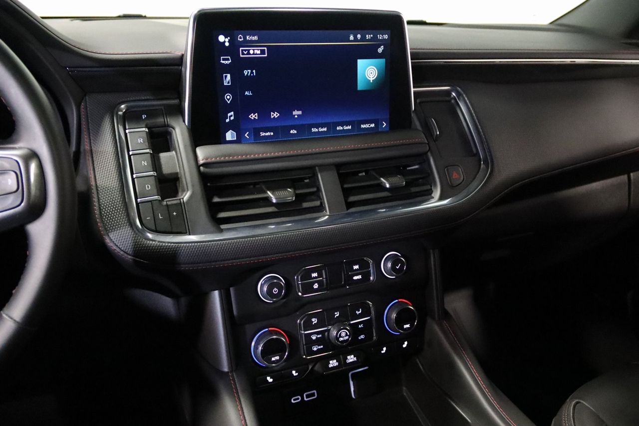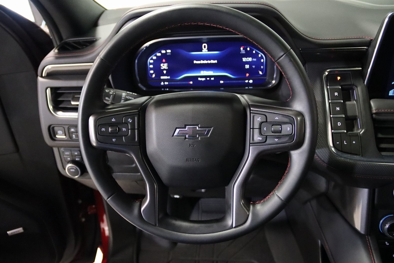 Navigation, Bluetooth, Back Up Camera, Panoramic Roof, 3rd Row, Heated Seats, Touch Screen, 10-Way Power Driver & Passenger Seat Adjusters, 1st & 2nd Row Color-Keyed Carpeted Floor Mats, 1st, 2nd & 3rd Rows All-Weather Floor Liners (LPO), 3.23 Rear Axle Ratio, 3rd row seats: split-bench, 4-Wheel Disc Brakes, 9 Speakers, ABS brakes, Air Conditioning, Alloy wheels, AM/FM radio: SiriusXM with 360L, Apple CarPlay/Android Auto, Auto High-beam Headlights, Auto-Dimming Inside Rear-View Mirror, Auto-dimming Rear-View mirror, Automatic temperature control, Bose 9-Speaker Stereo Audio System Feature, Brake assist, Bright Front & Rear Door Sill Plates, Bumpers: body-color, Color-Keyed Carpeting Floor Covering, Compass, Delay-off headlights, Driver & Front Outboard Passenger Airbags, Driver door bin, Driver vanity mirror, Dual front impact airbags, Dual front side impact airbags, Dual-Pane Power Panoramic Sunroof, Electronic Stability Control, Emergency communication system: OnStar and Chevrolet connected services capable, Enhanced Driver Information Center, Floor Console w/Storage Area, Four wheel independent suspension, Front anti-roll bar, Front Bucket Seats, Front Center Armrest, Front dual zone A/C, Front High-Back Reclining Bucket Seats, Front reading lights, Fully automatic headlights, Garage door transmitter, Hands-Free Rear Power Programmable Liftgate, Heated door mirrors, Heated Driver & Front Passenger Seats, Heated front seats, Illuminated entry, Infotainment Display, LED Daytime Running Lamps, Low tire pressure warning, Memory seat, Memory Settings for Driver, Navigation System, Not Equipped w/Wheel Locks (LPO), Occupant sensing airbag, Outside temperature display, Overhead airbag, Overhead console, Panic alarm, Passenger door bin, Passenger vanity mirror, Perforated Leather Seat Trim, Power door mirrors, Power driver seat, Power Liftgate, Power passenger seat, Power steering, Power windows, Preferred Equipment Group 1SP, Premium audio system: Chevrolet Infotainment 3 Premium, Premium Smooth Ride Suspension, Radio: Chevrolet Infotainment 3 Premium System, Rain sensing wipers, Rear air conditioning, Rear anti-roll bar, Rear reading lights, Rear seat center armrest, Rear window defroster, Rear window wiper, Remote keyless entry, Remote Start, Roof rack: rails only, Security system, SiriusXM Radio w/360L, Speed control, Speed-sensing steering, Split folding rear seat, Spoiler, Steering wheel mounted audio controls, Tachometer, Telescoping steering wheel, Tilt steering wheel, Traction control, Trip computer, Universal Home Remote, Variably intermittent wipers, Voltmeter, Wheels: 22" x 9" Bright Machined, Wireless Charging, Wrapped Steering Wheel. CARFAX One-Owner. Clean CARFAX. Odometer is 12461 miles below market average!
